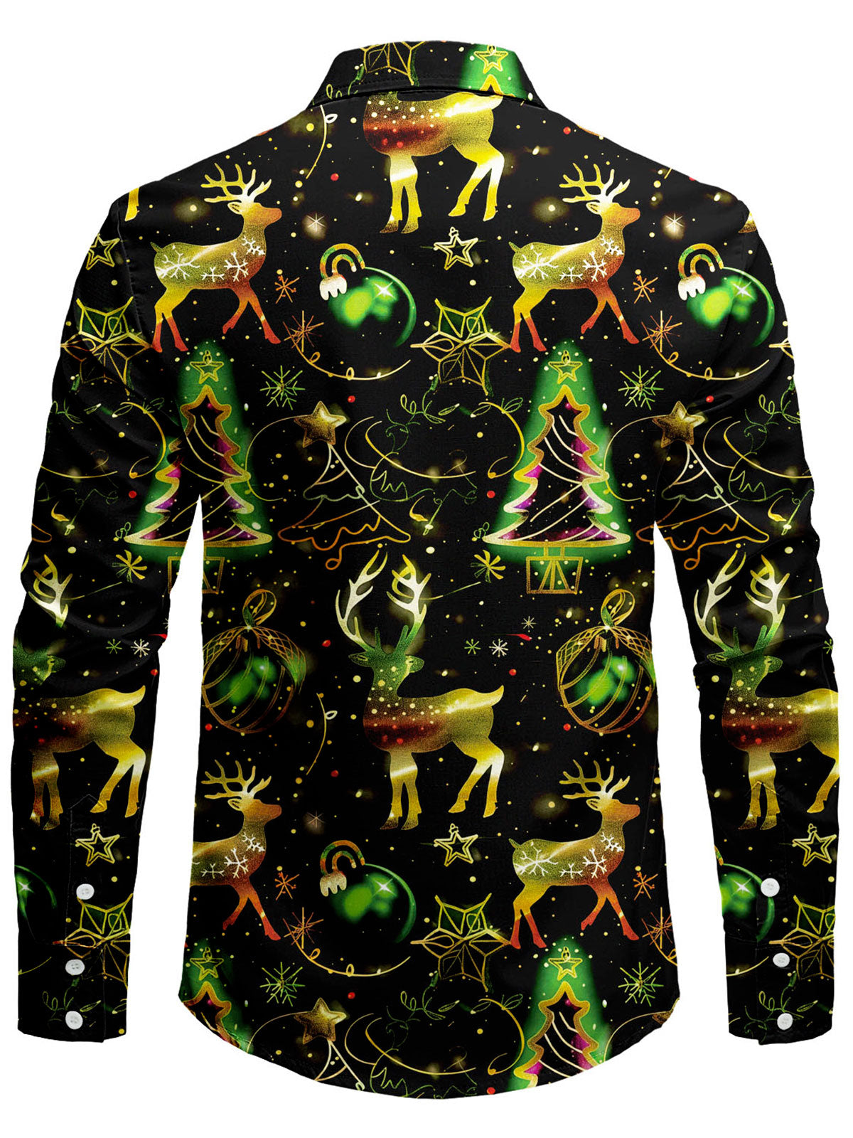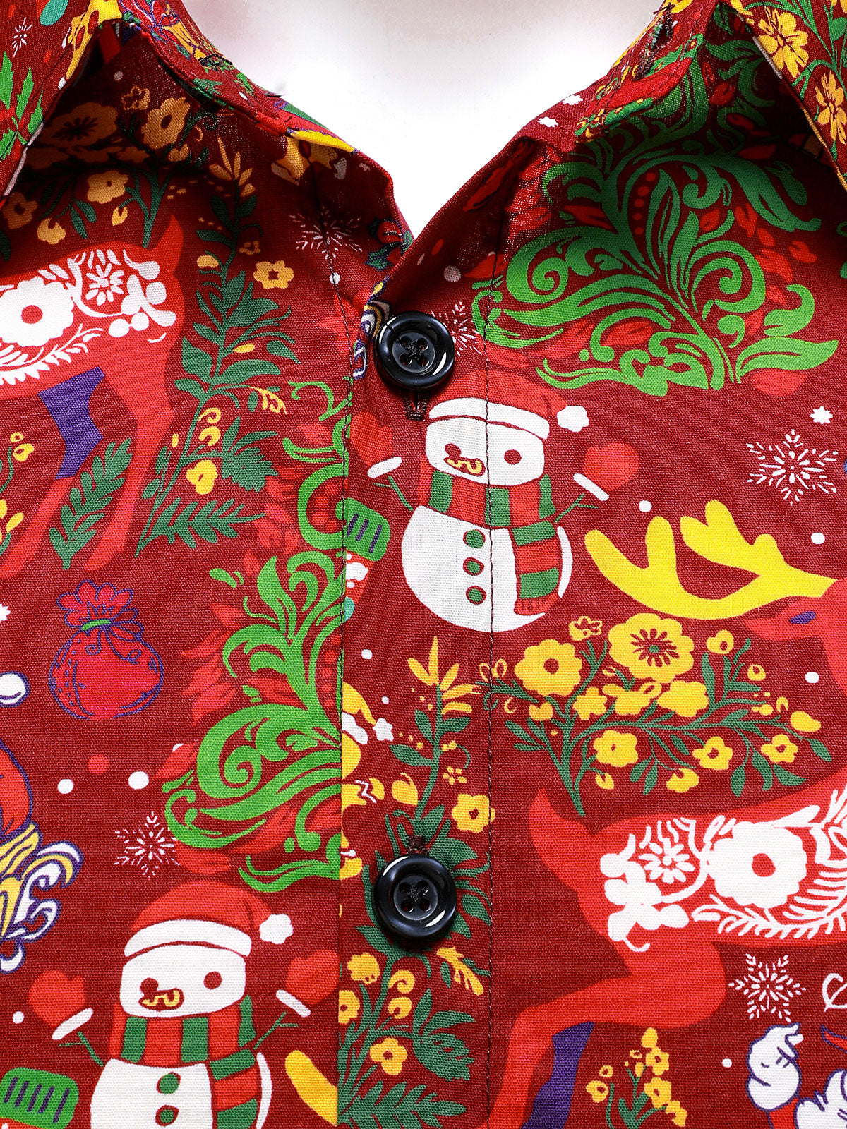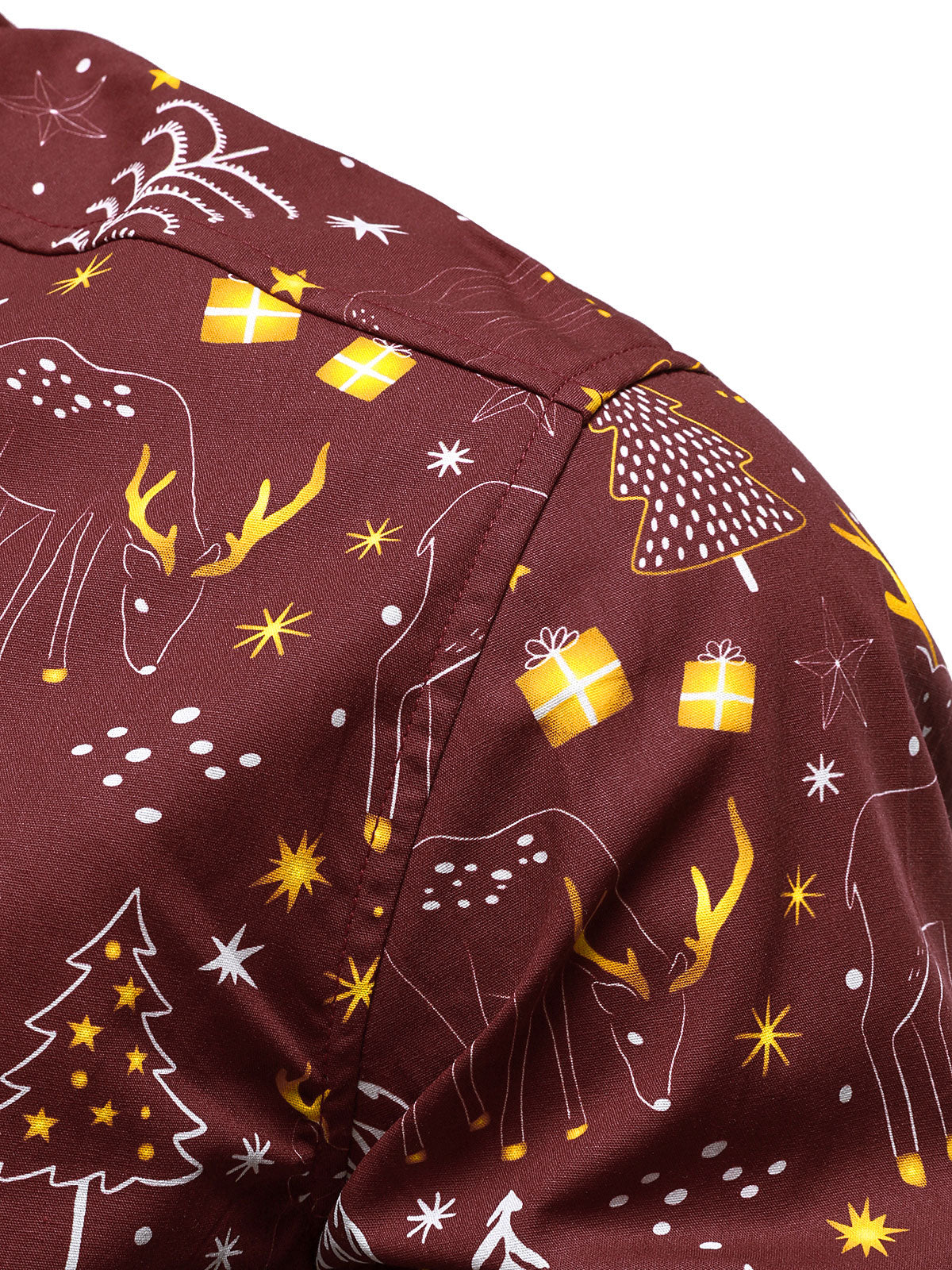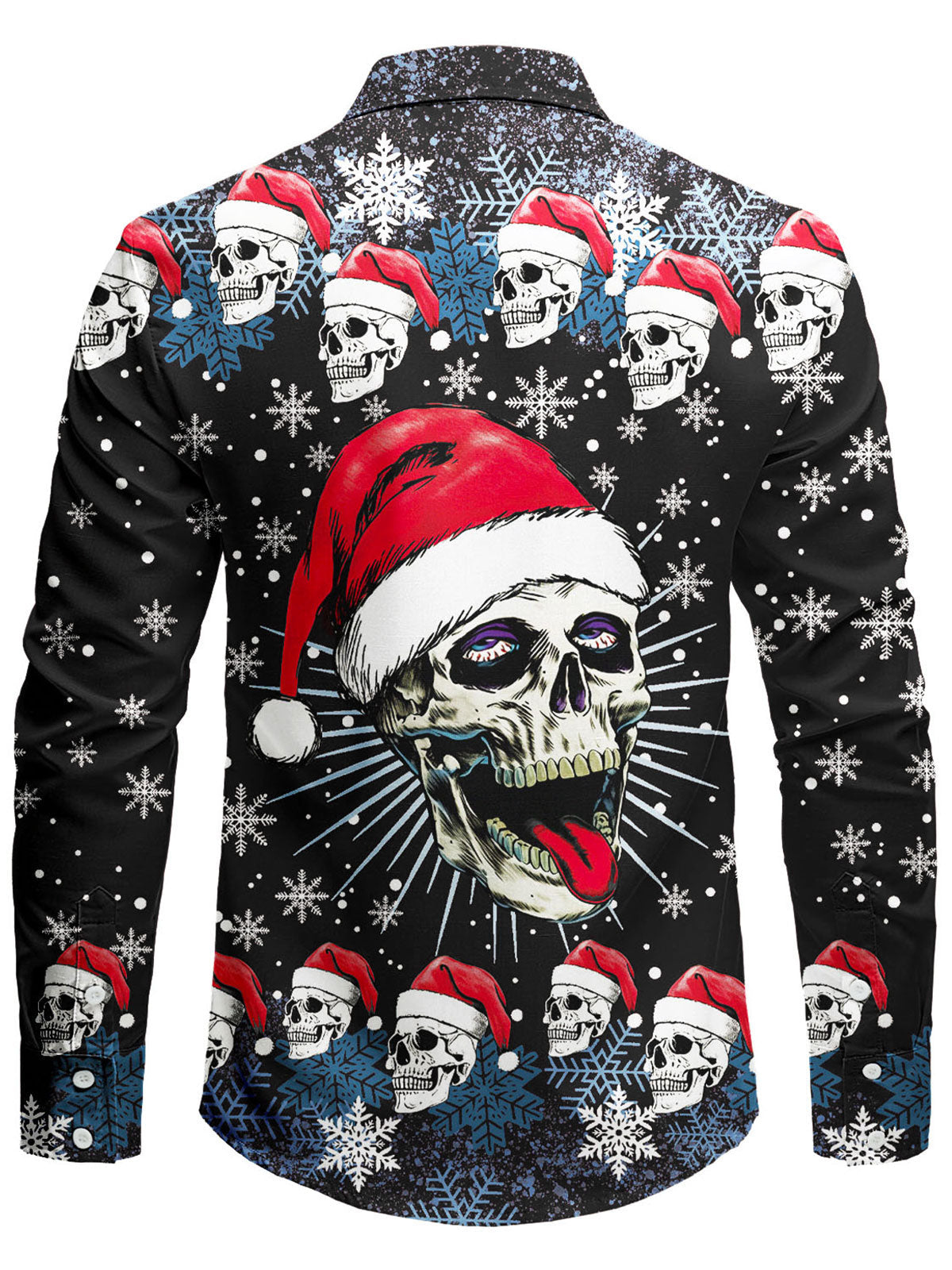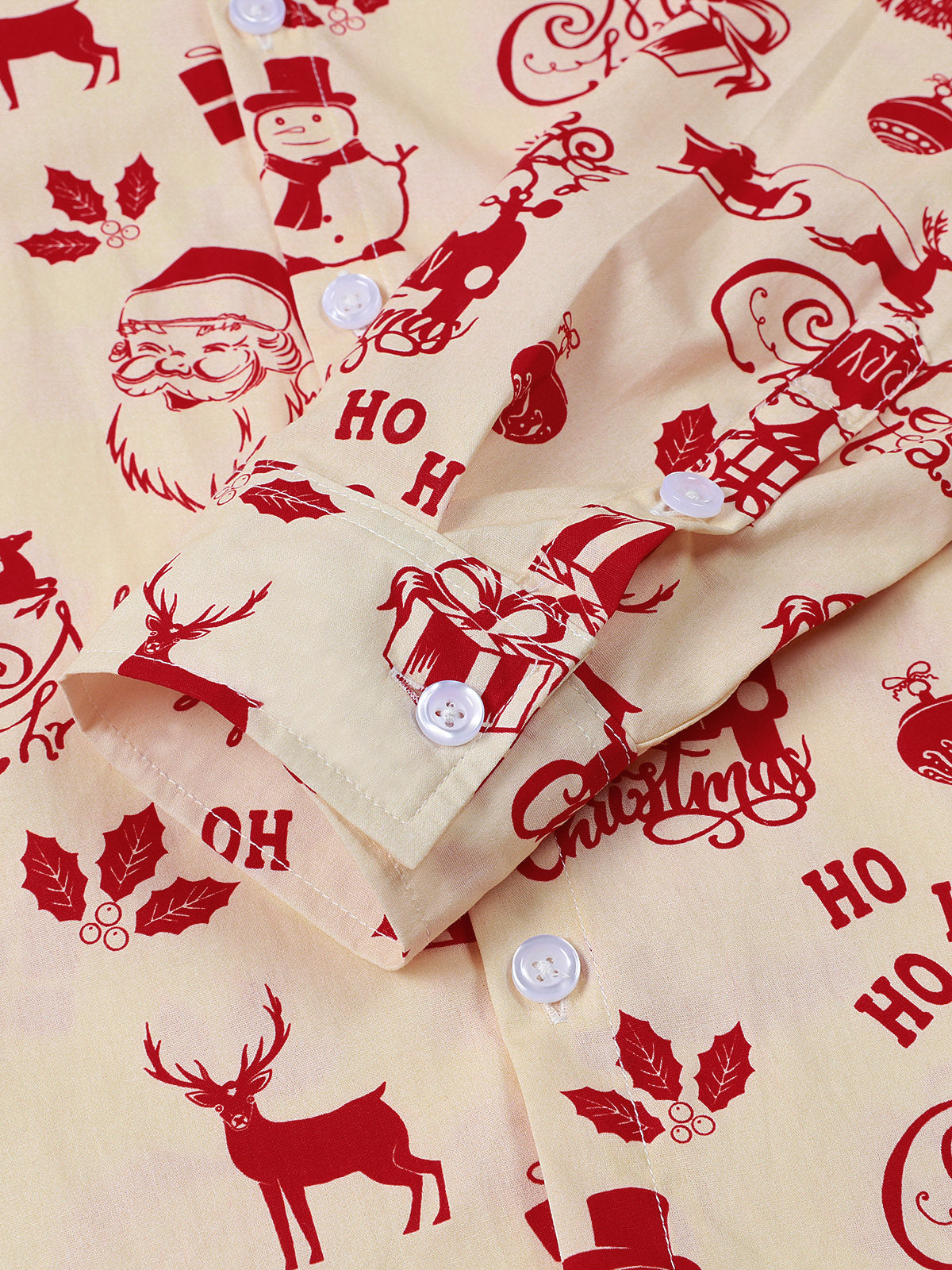 Chemise Homme Noël Drôle Imprimé Thème Tenue Manches Longues