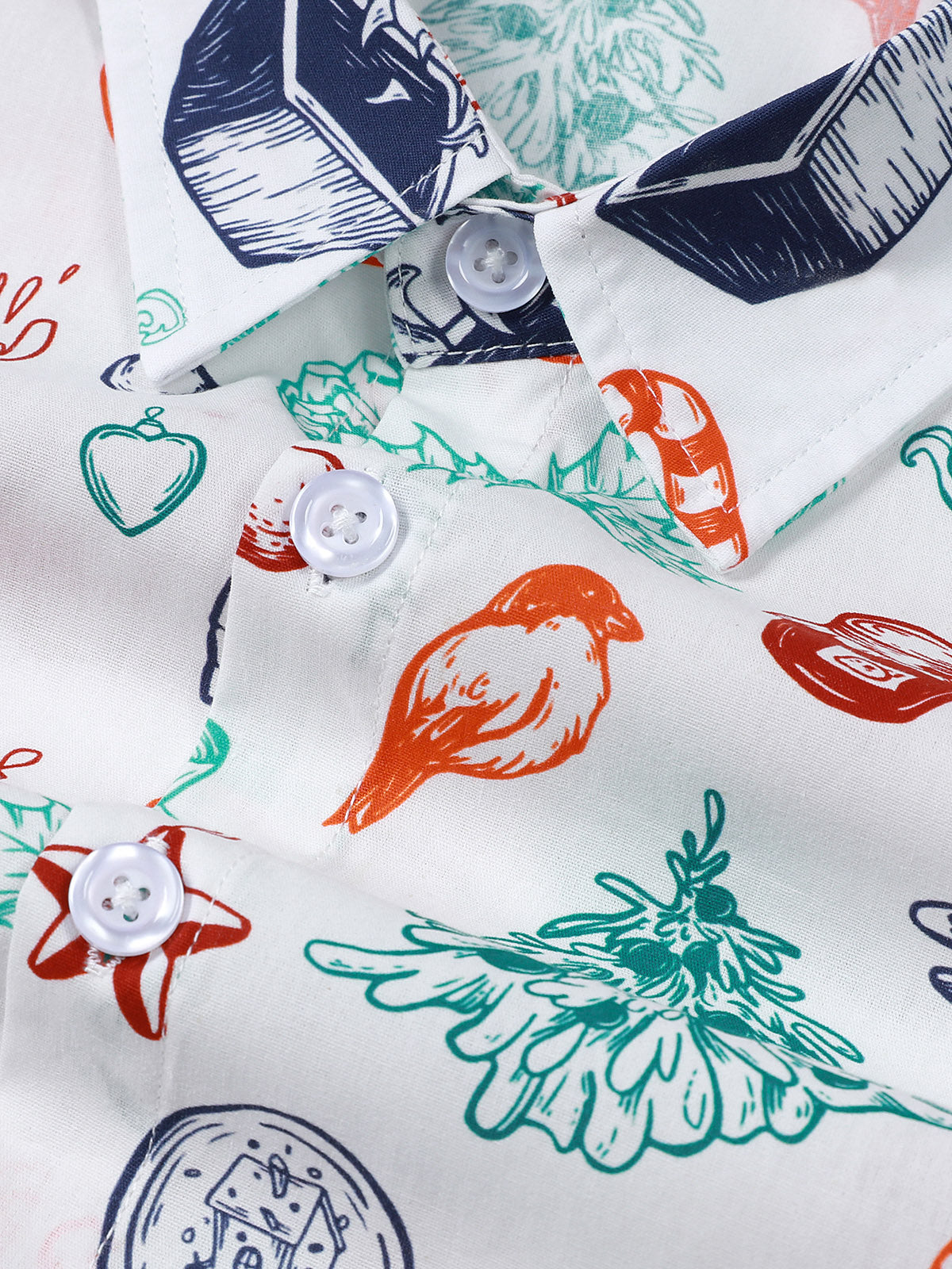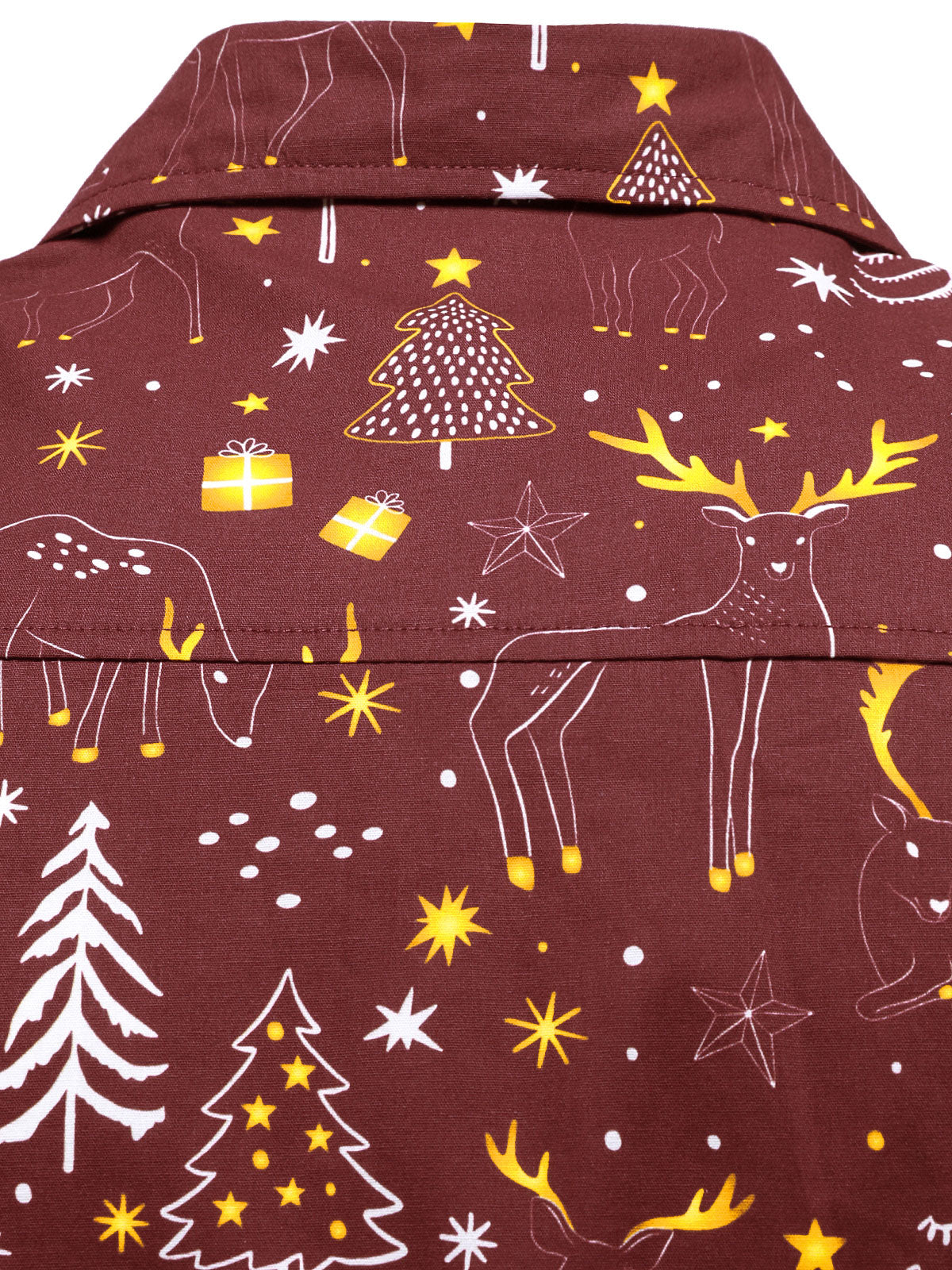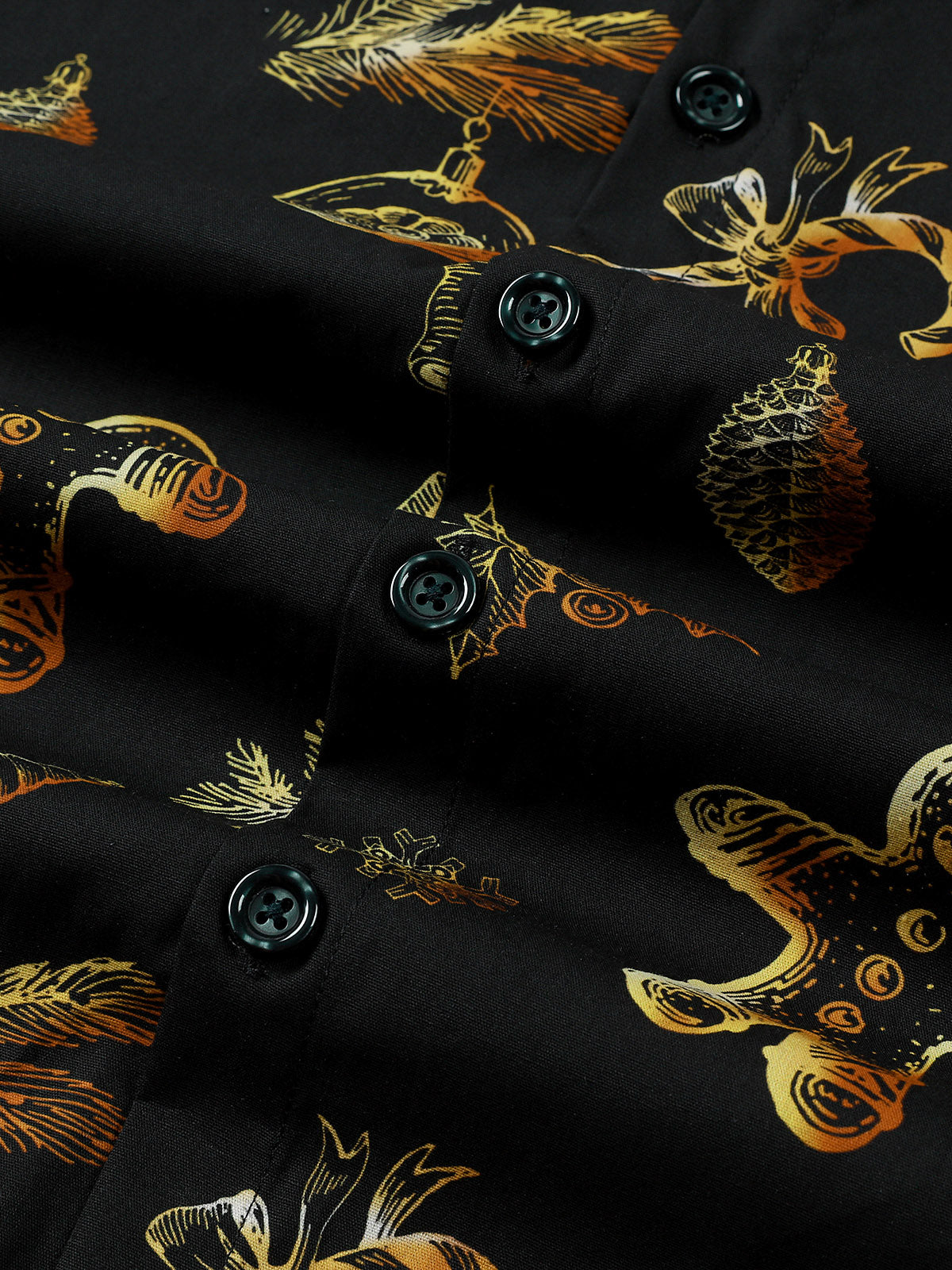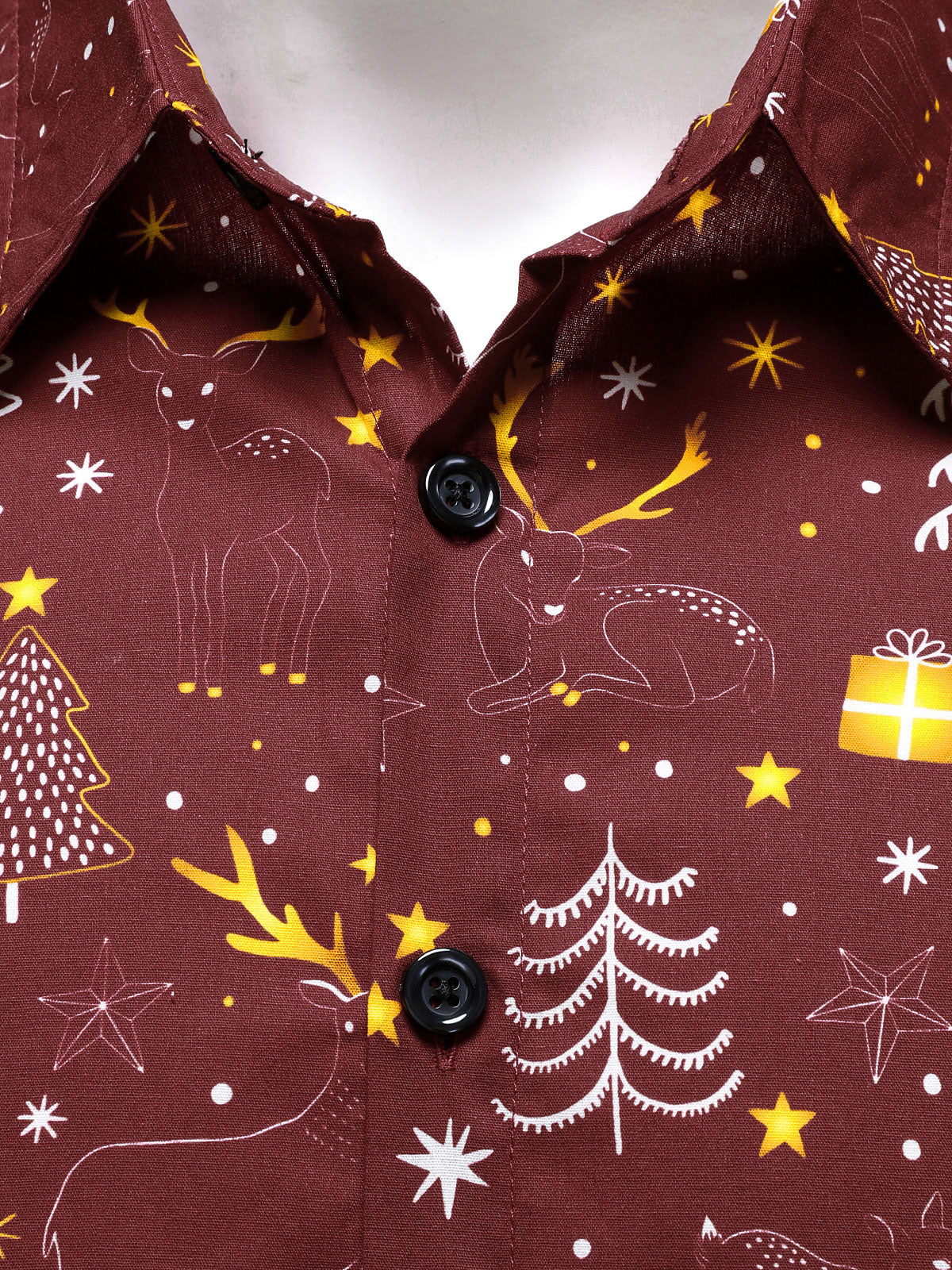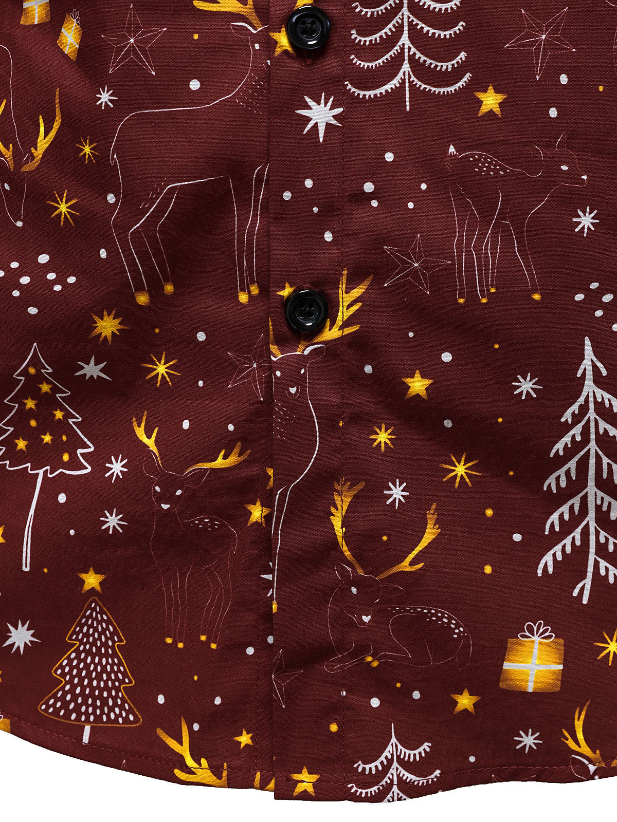 Chemise Homme Noël Drôle Imprimé Thème Tenue Manches Longues
