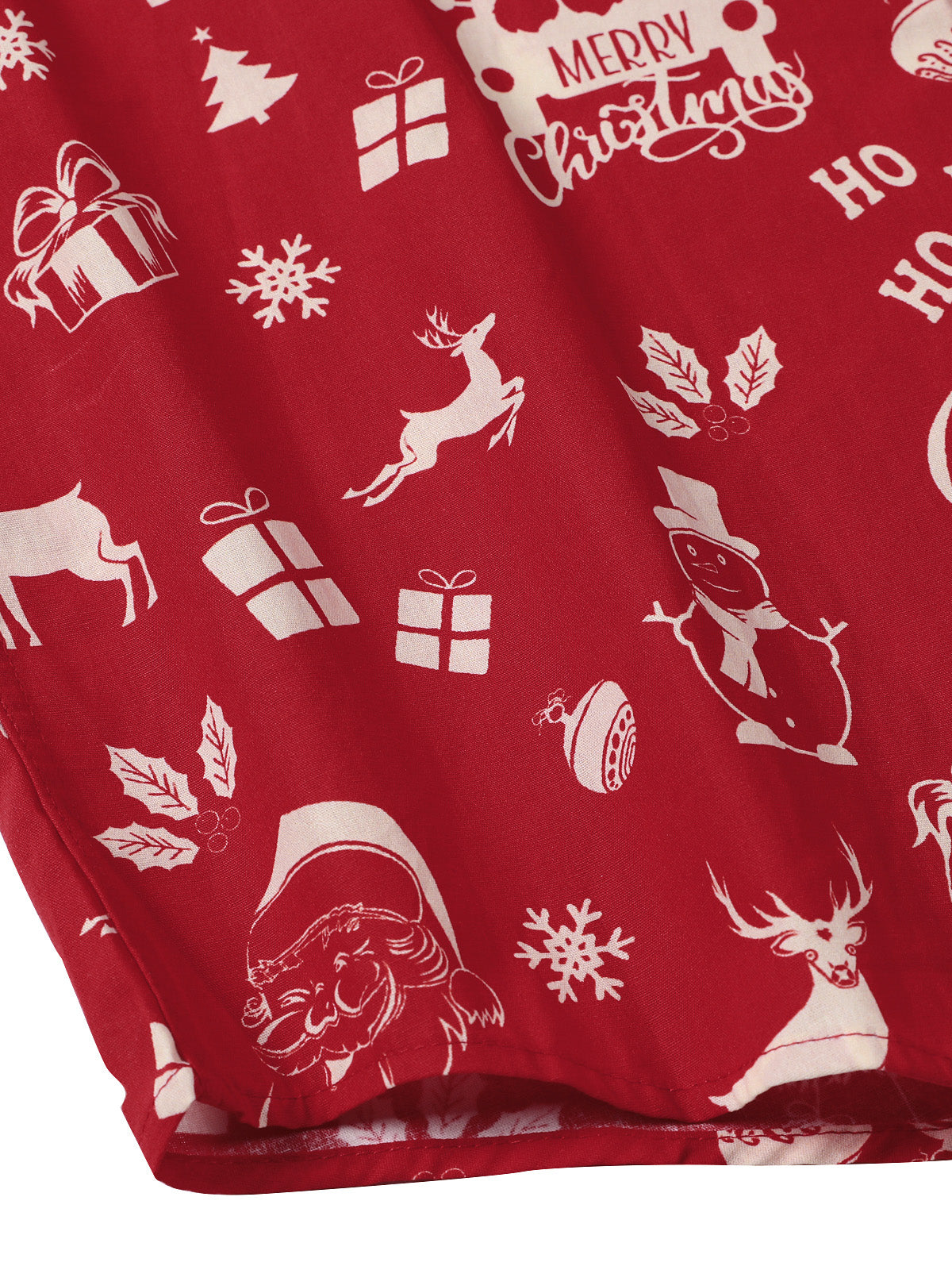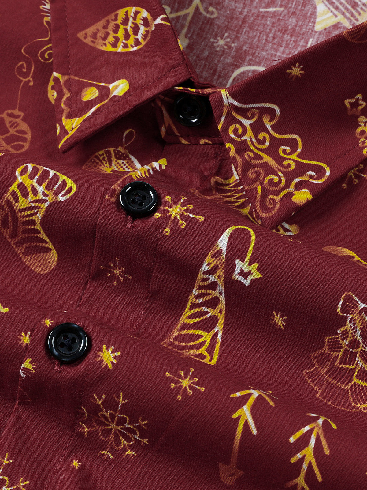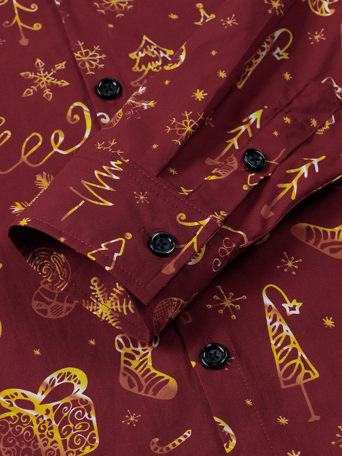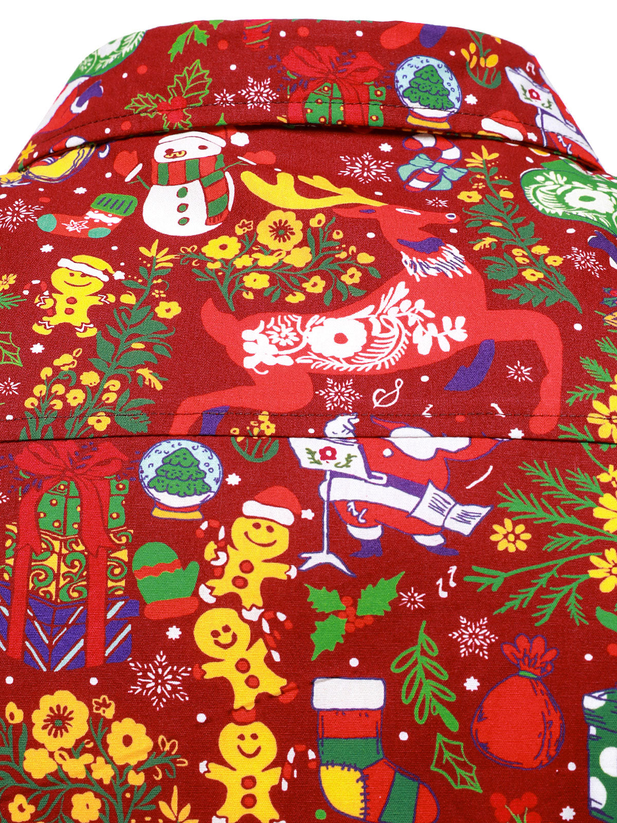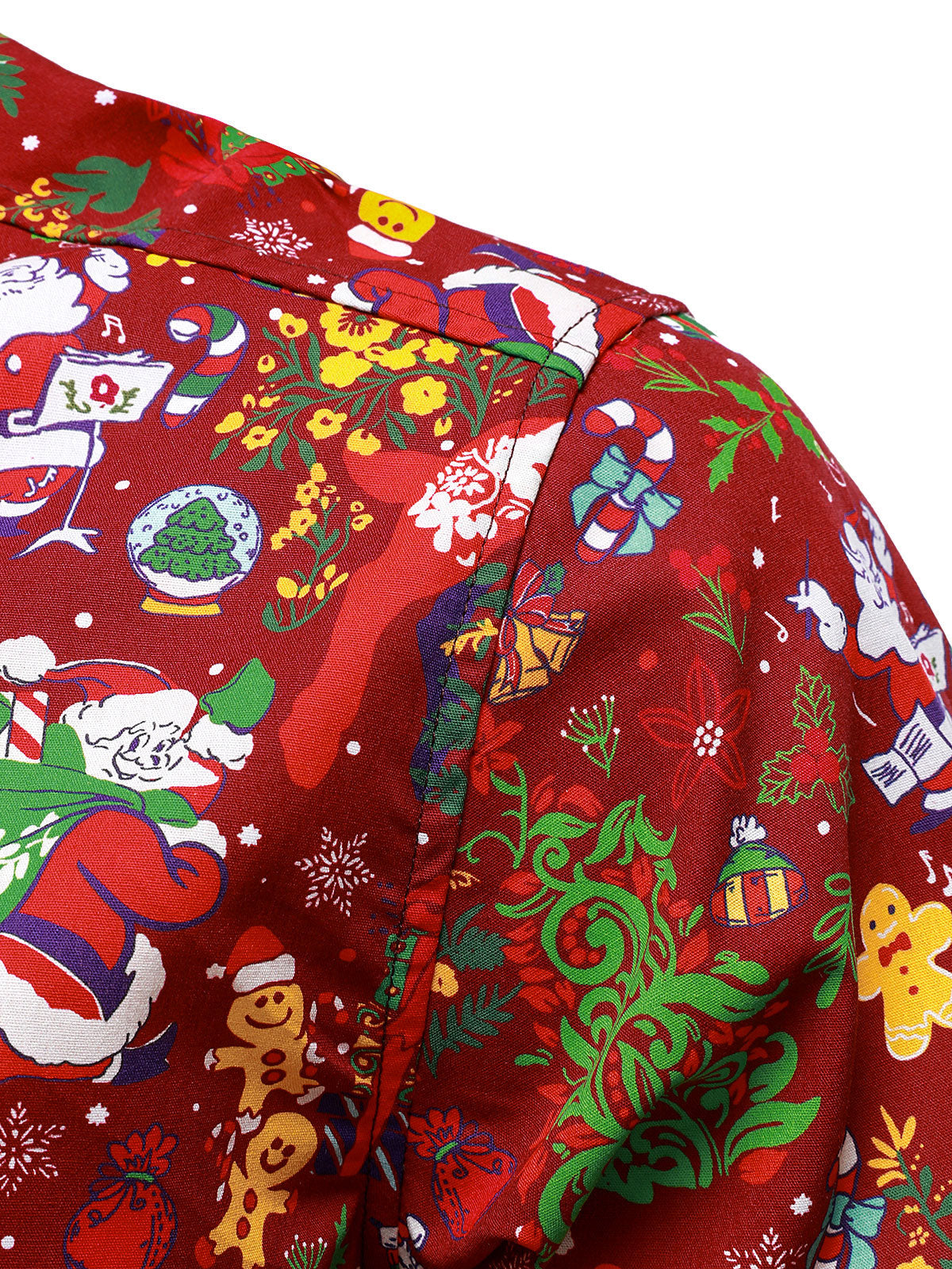 Chemise Habillée à Manches Longues Boutonnée Rouge Coupe Régulière Imprimé Père Noël pour Homme