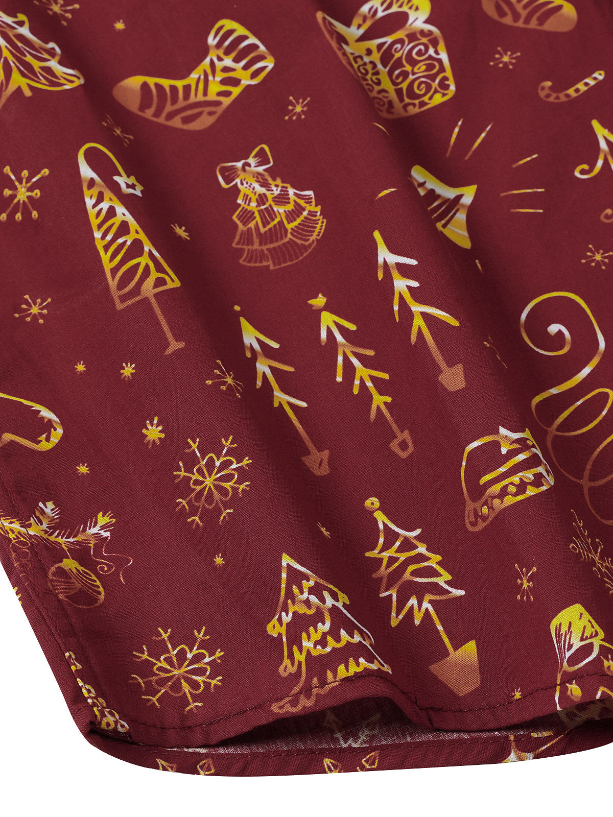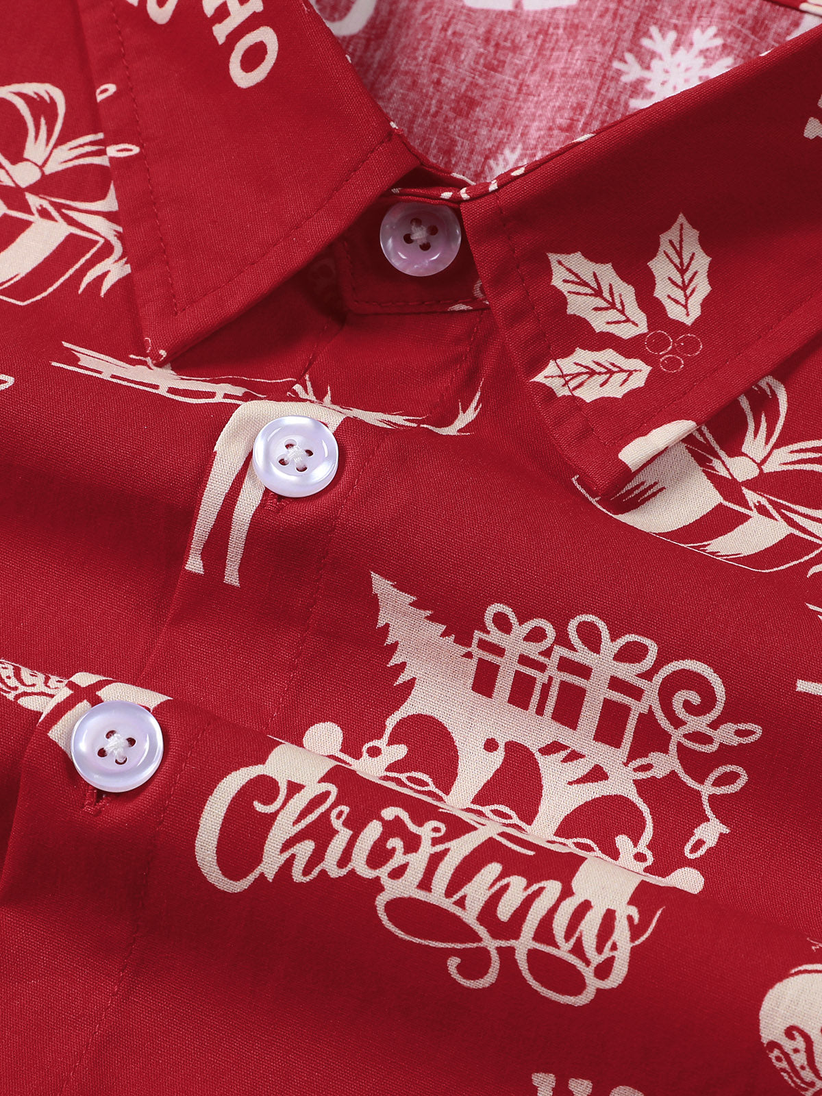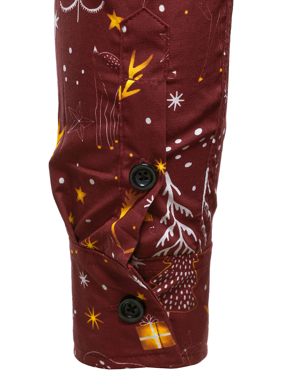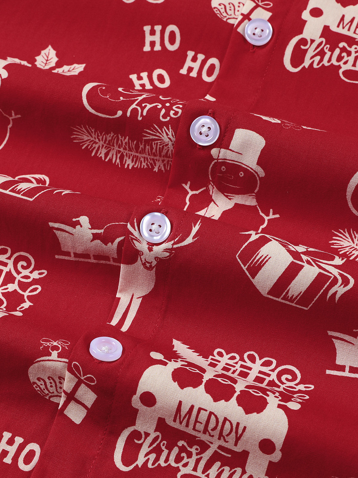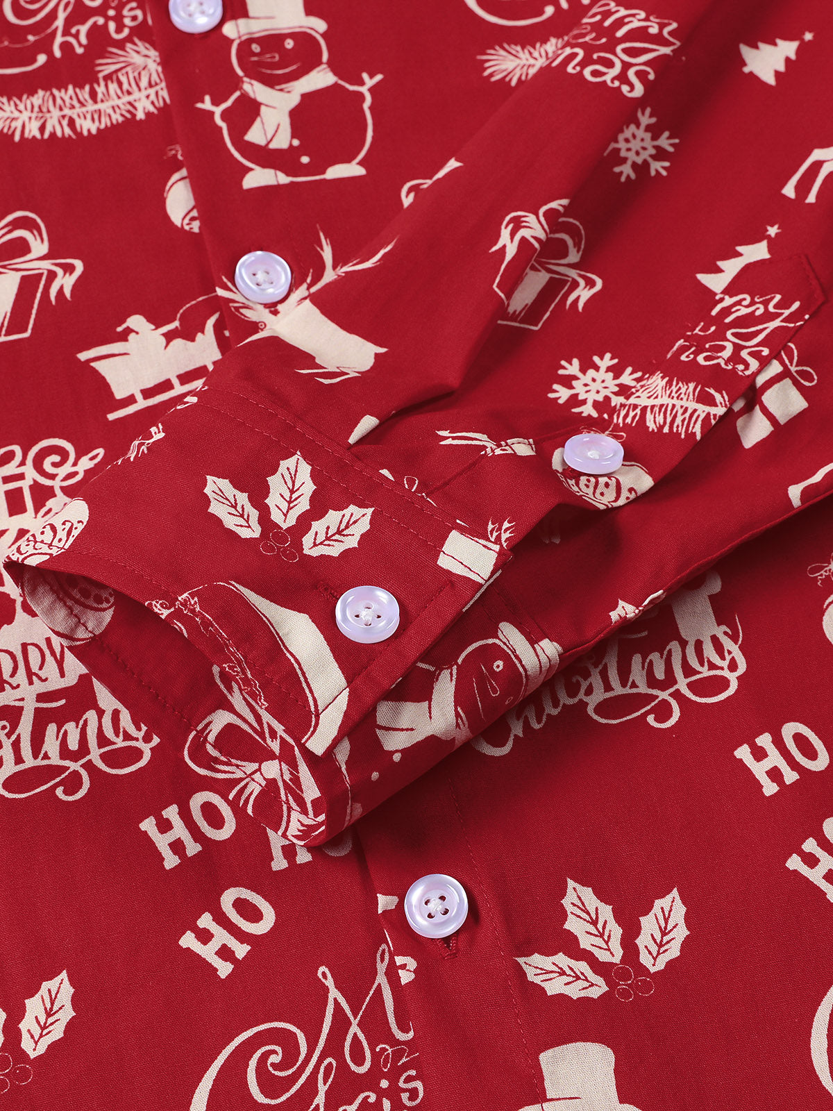 Chemise Habillée à Manches Longues Boutonnée Rouge Coupe Régulière Imprimé Père Noël pour Homme