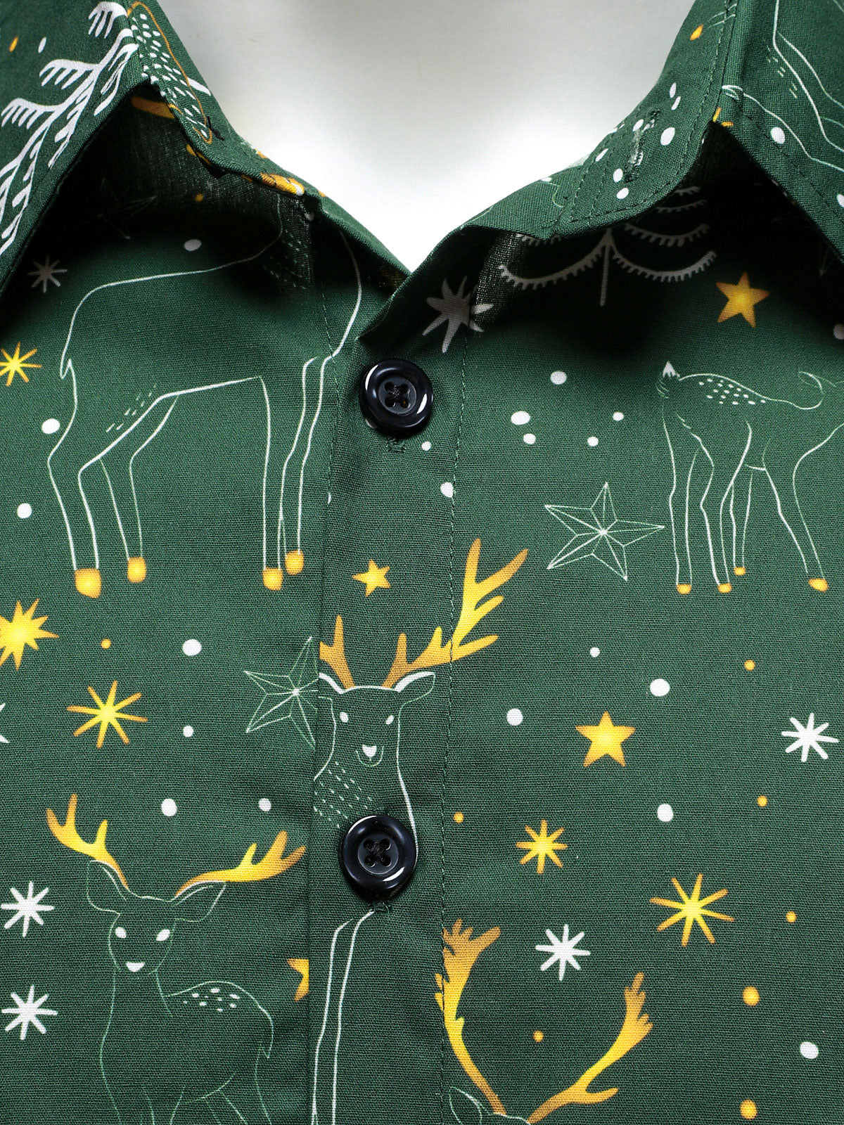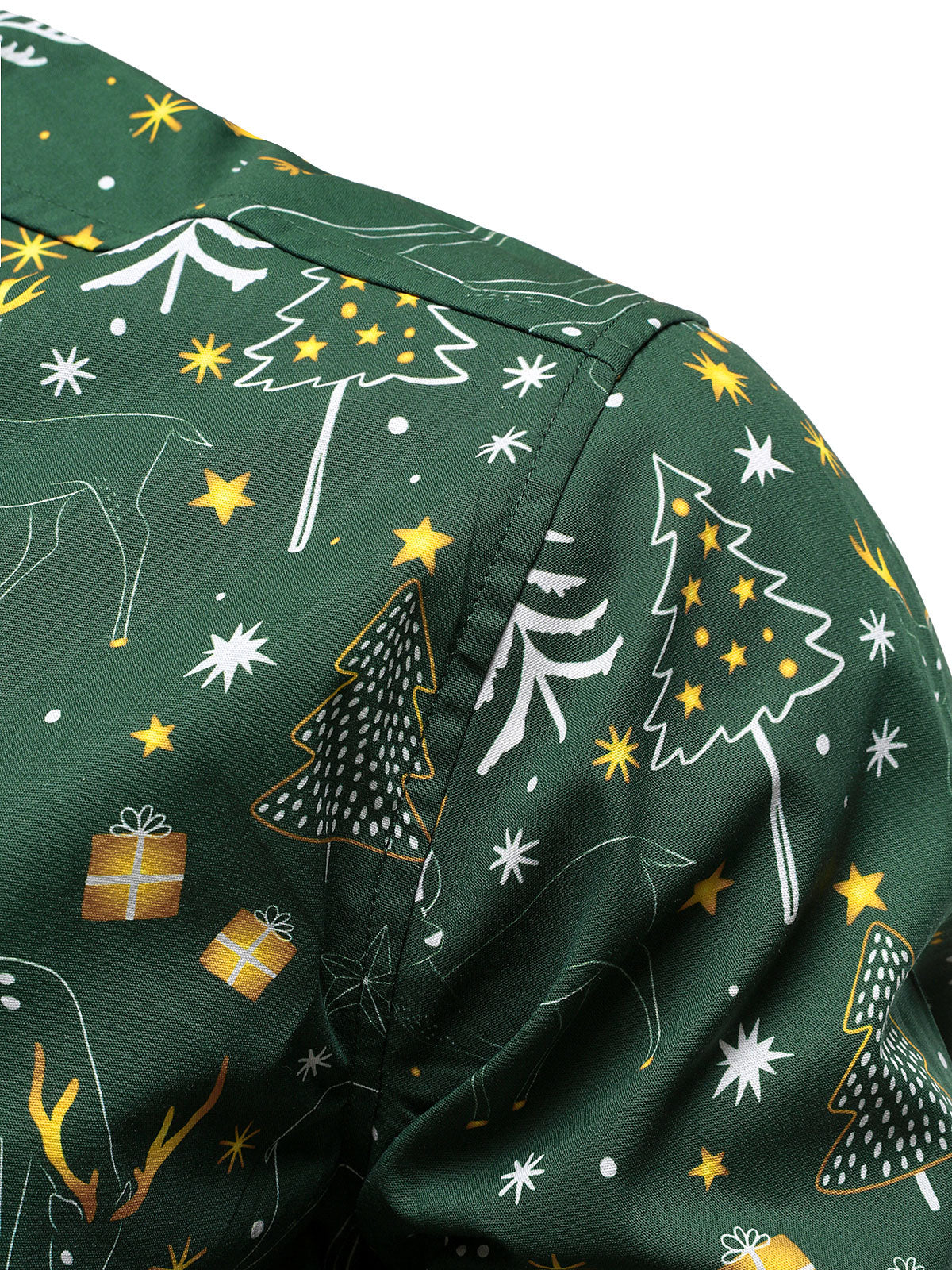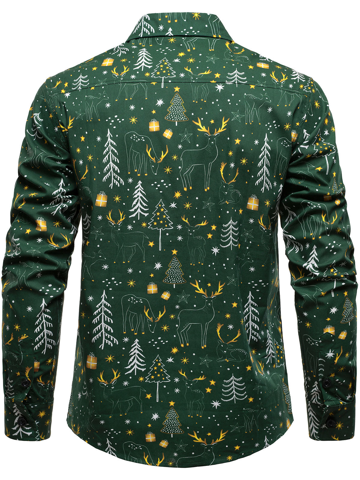 Chemise à manches longues respirante verte à imprimé sapin de Noël et élan pour homme