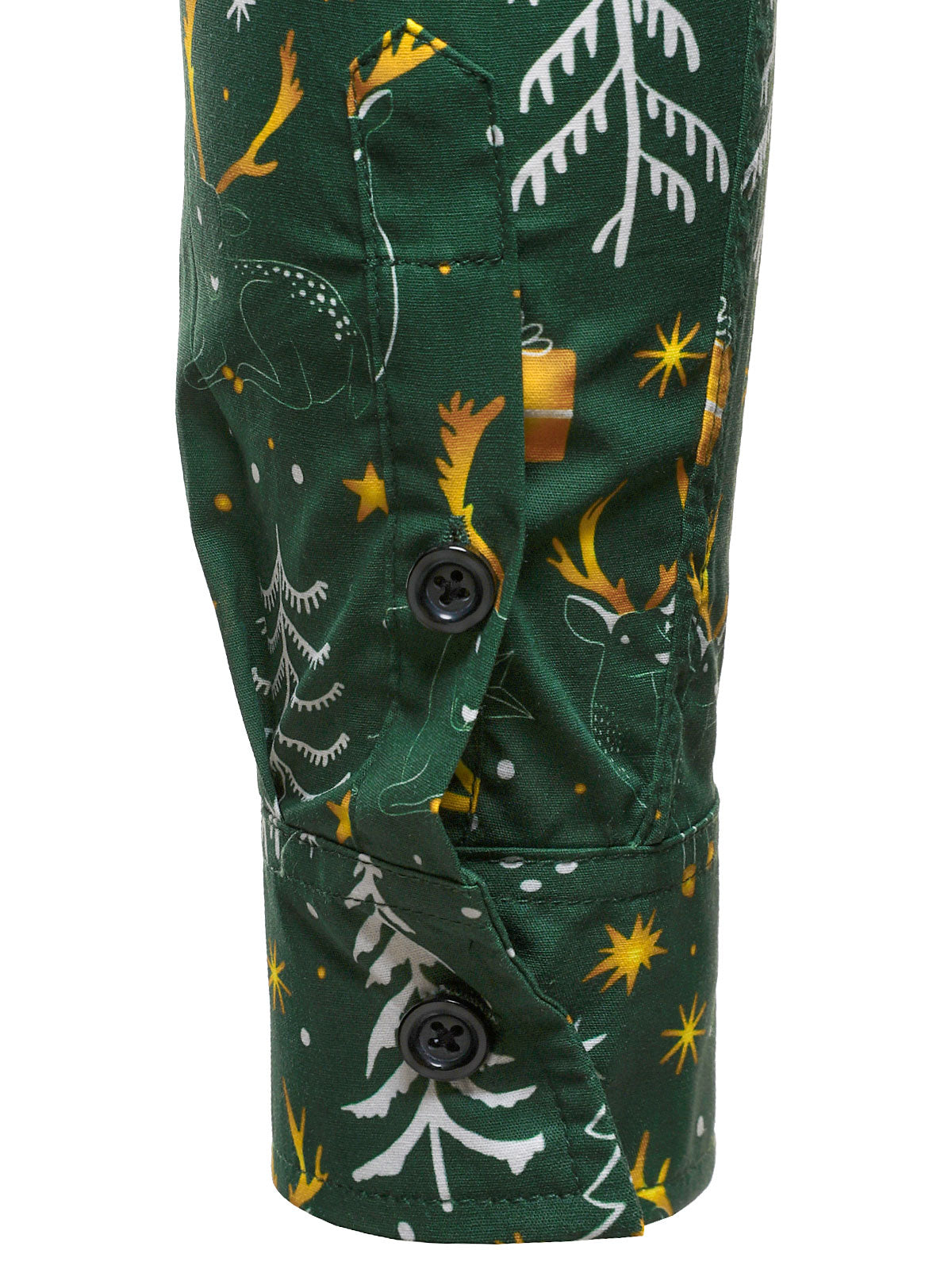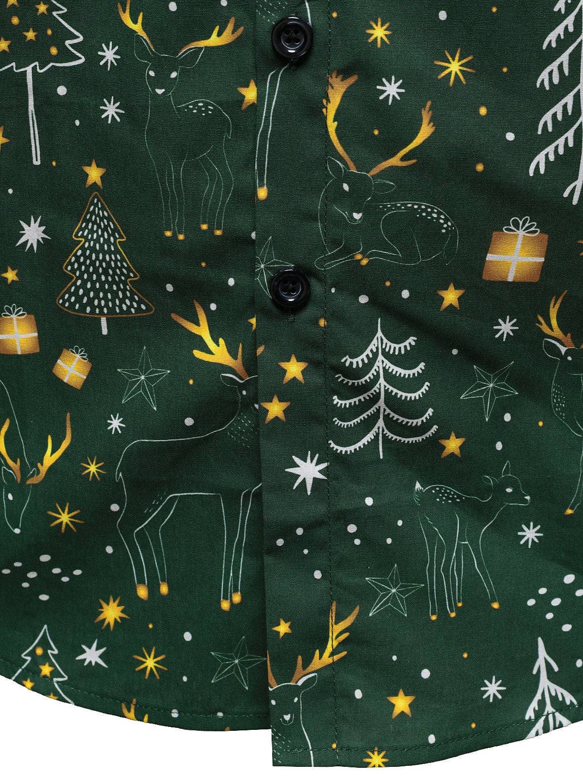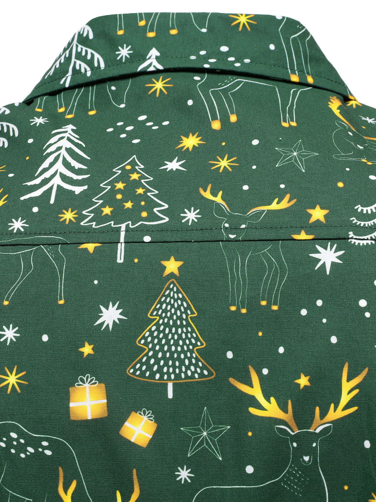 Chemise verte de Noël pour homme à manches longues motif sapin et renne amusant et festif