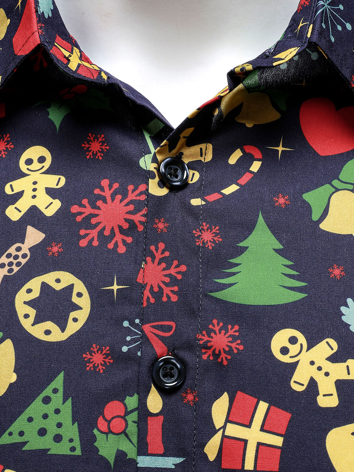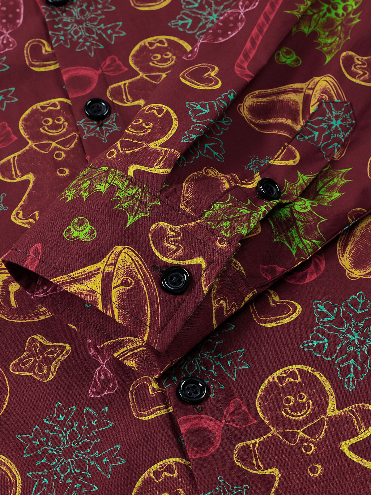 Chemise à manches longues en coton pour homme, motif bonhomme en pain d'épices de Noël