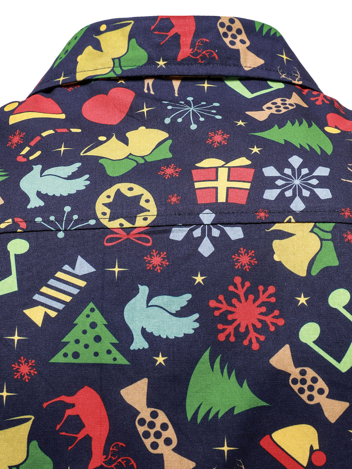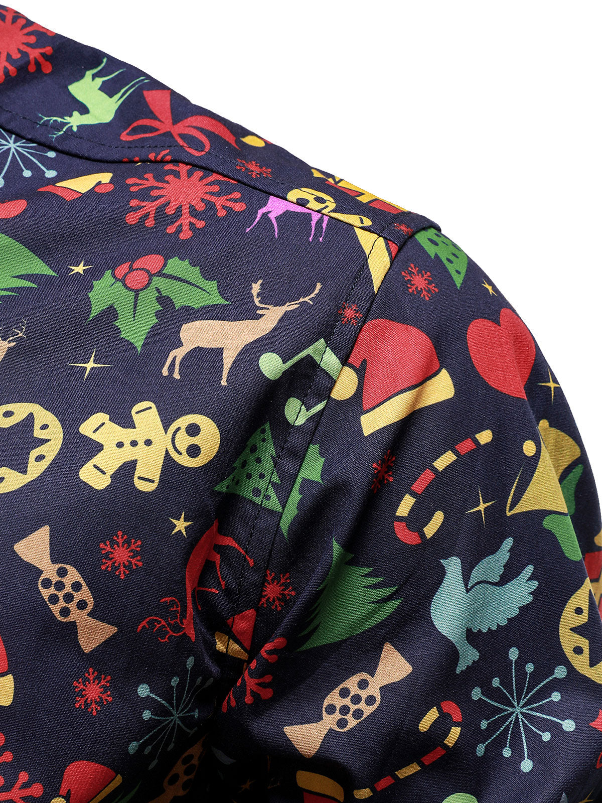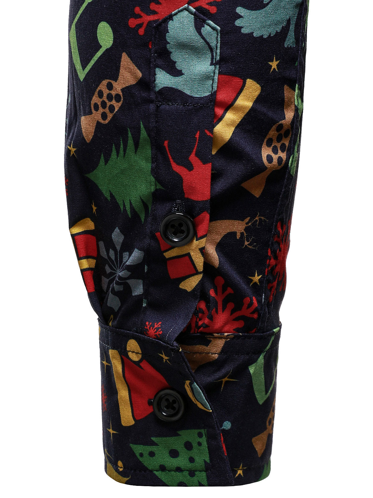 Chemise à manches longues bleu marine pour homme, imprimés festifs sur le thème de Noël