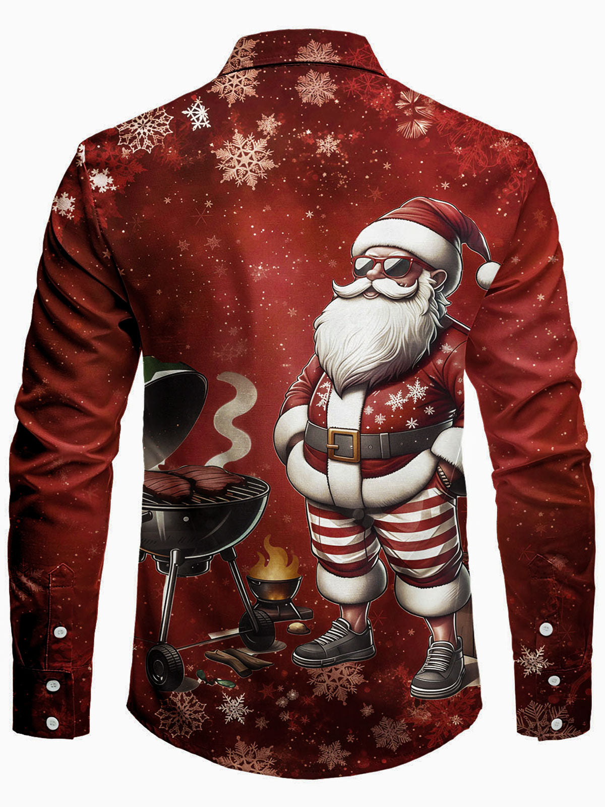 Chemise Homme Noël Drôle Père Noël Barbecue Manches Longues