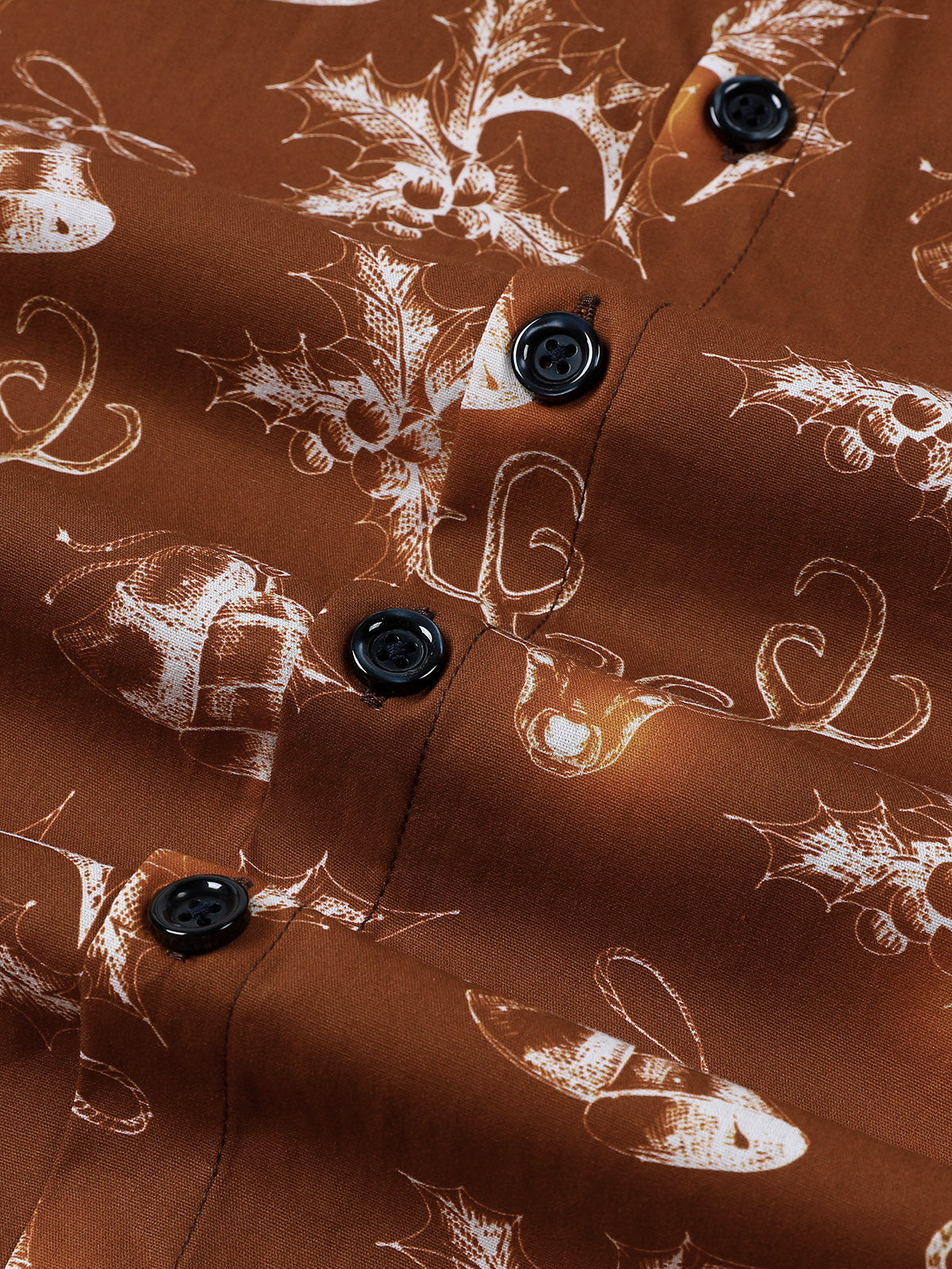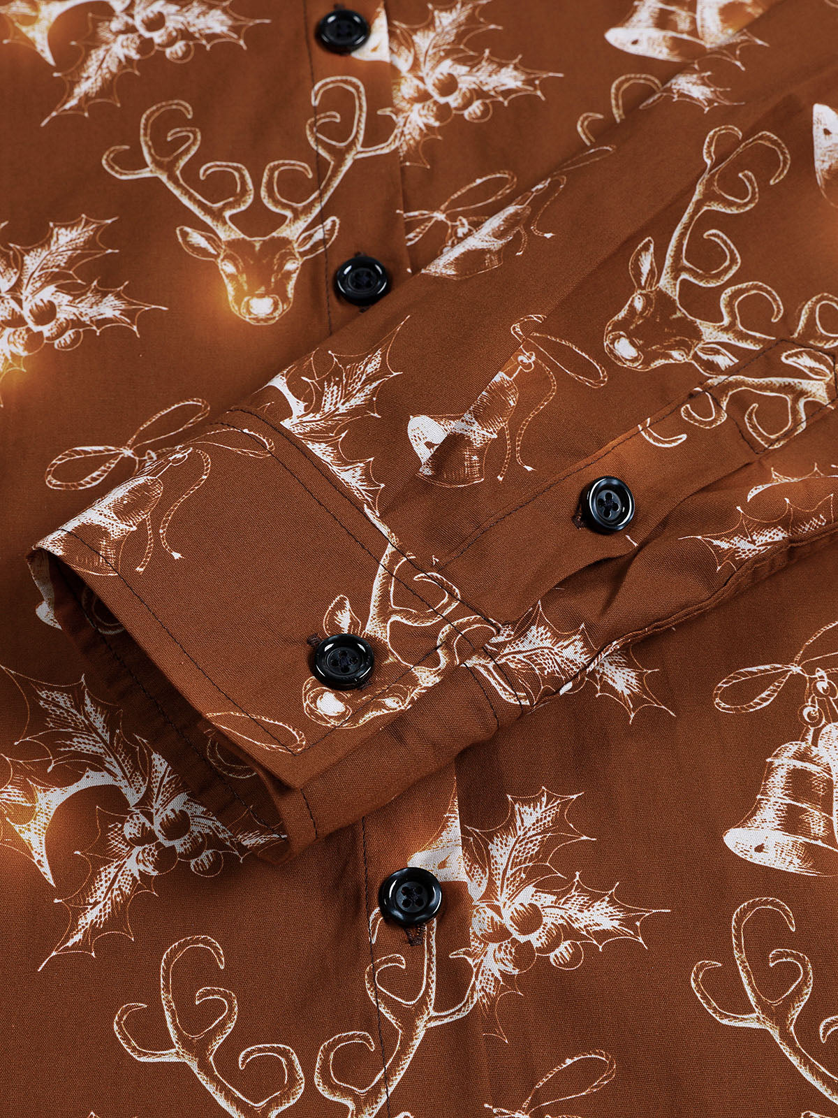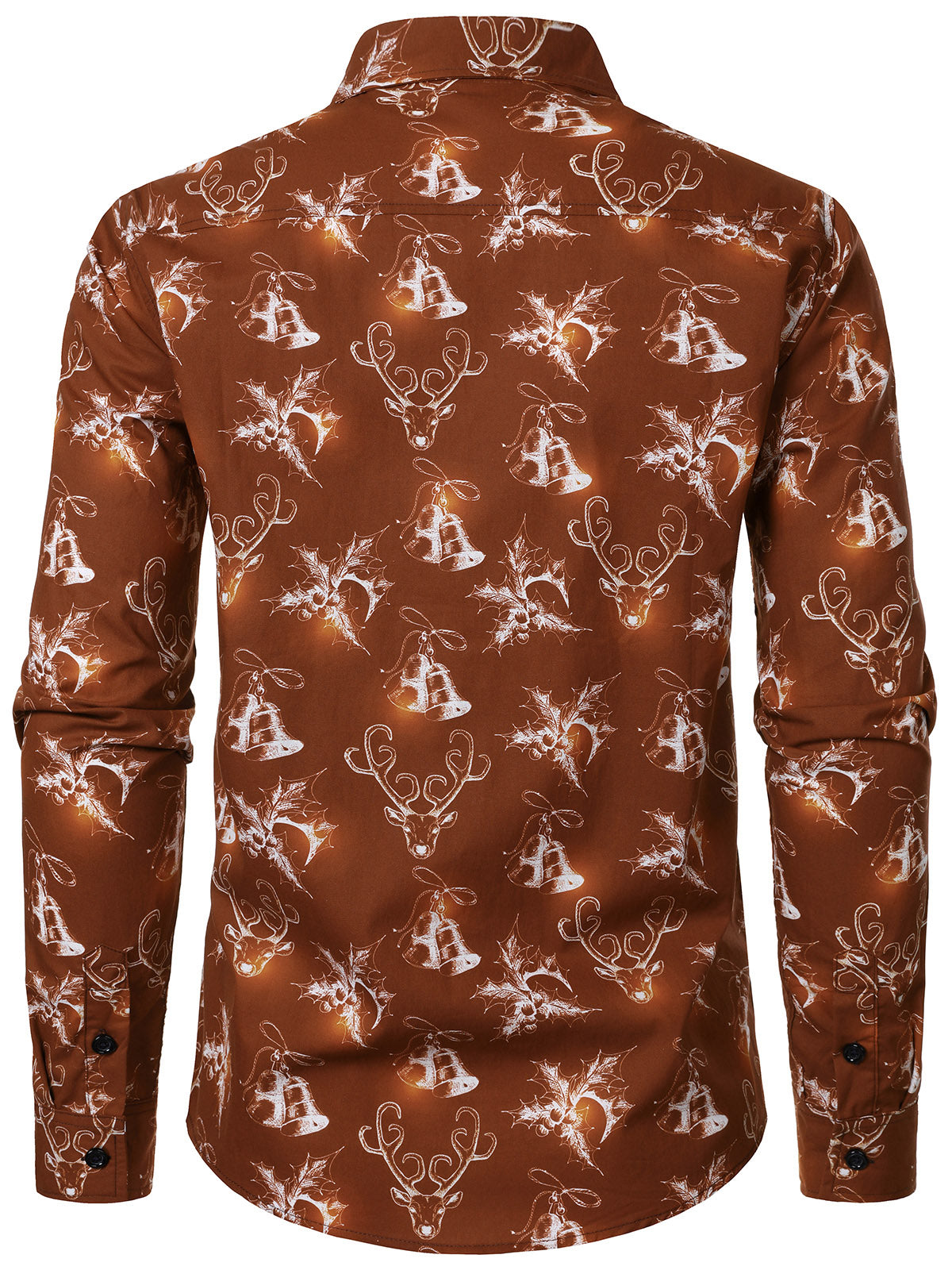 Chemise à manches longues marron à imprimé humoristique de Noël vintage pour homme