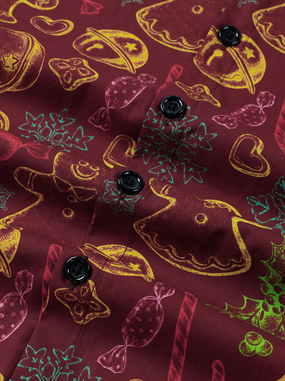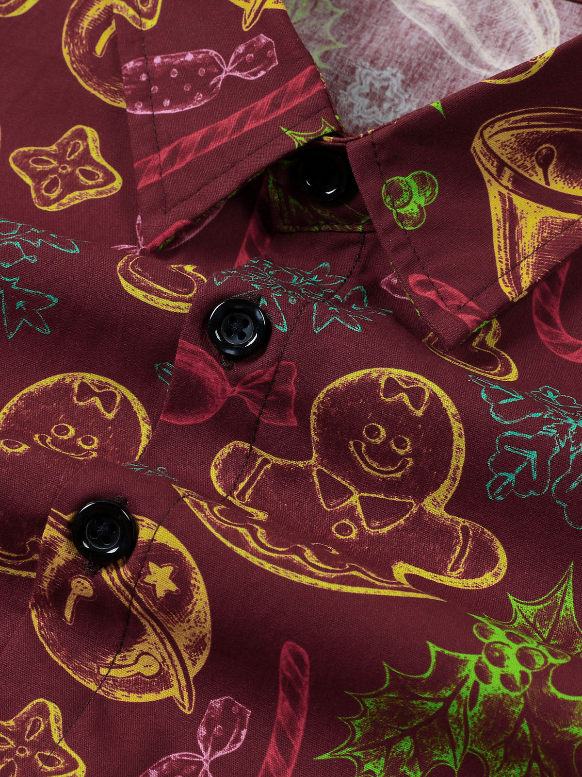 Chemise à manches longues en coton pour homme, motif bonhomme en pain d'épices brillant de Noël