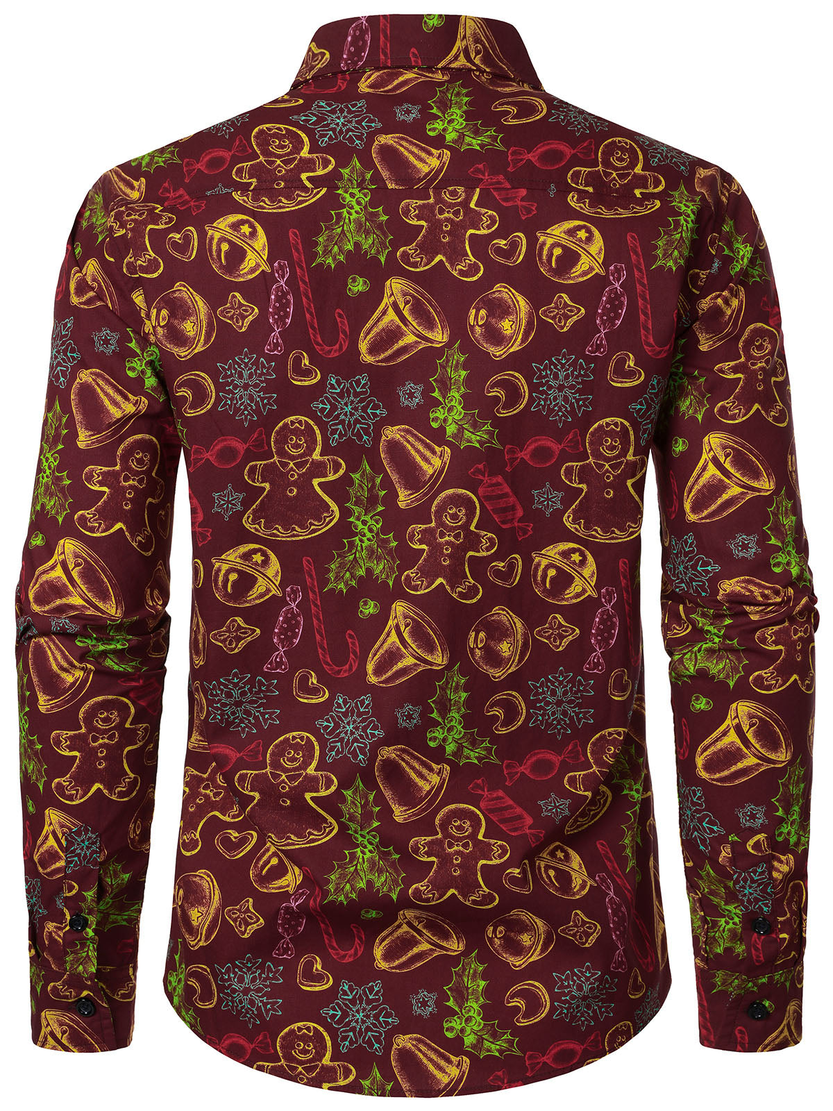 Chemise Homme Noël Imprimé Bonhomme Pain dÉpices Drôle Manches Longues