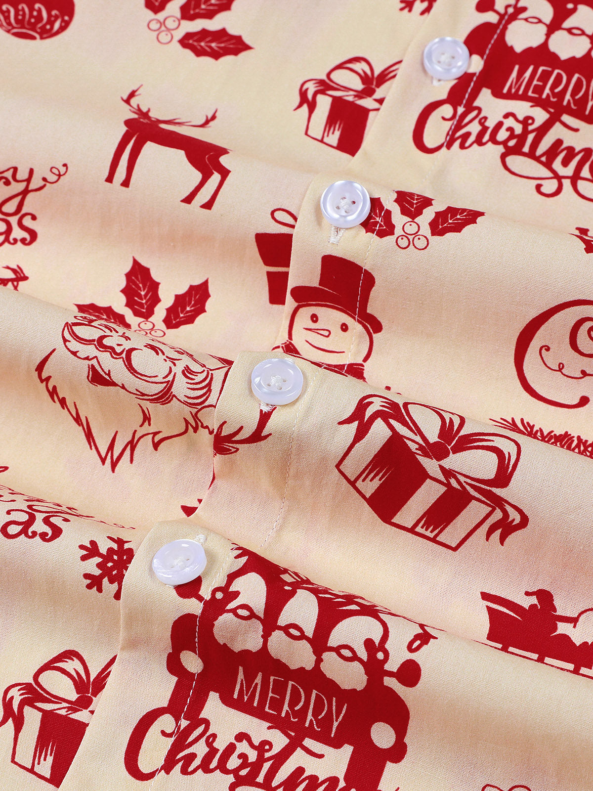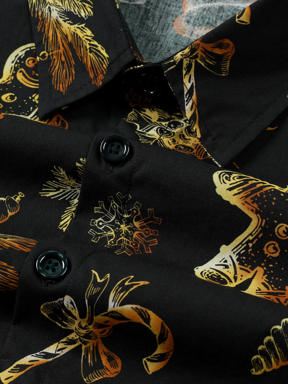 Chemise Homme Noël Drôle Imprimé Vintage Manches Longues