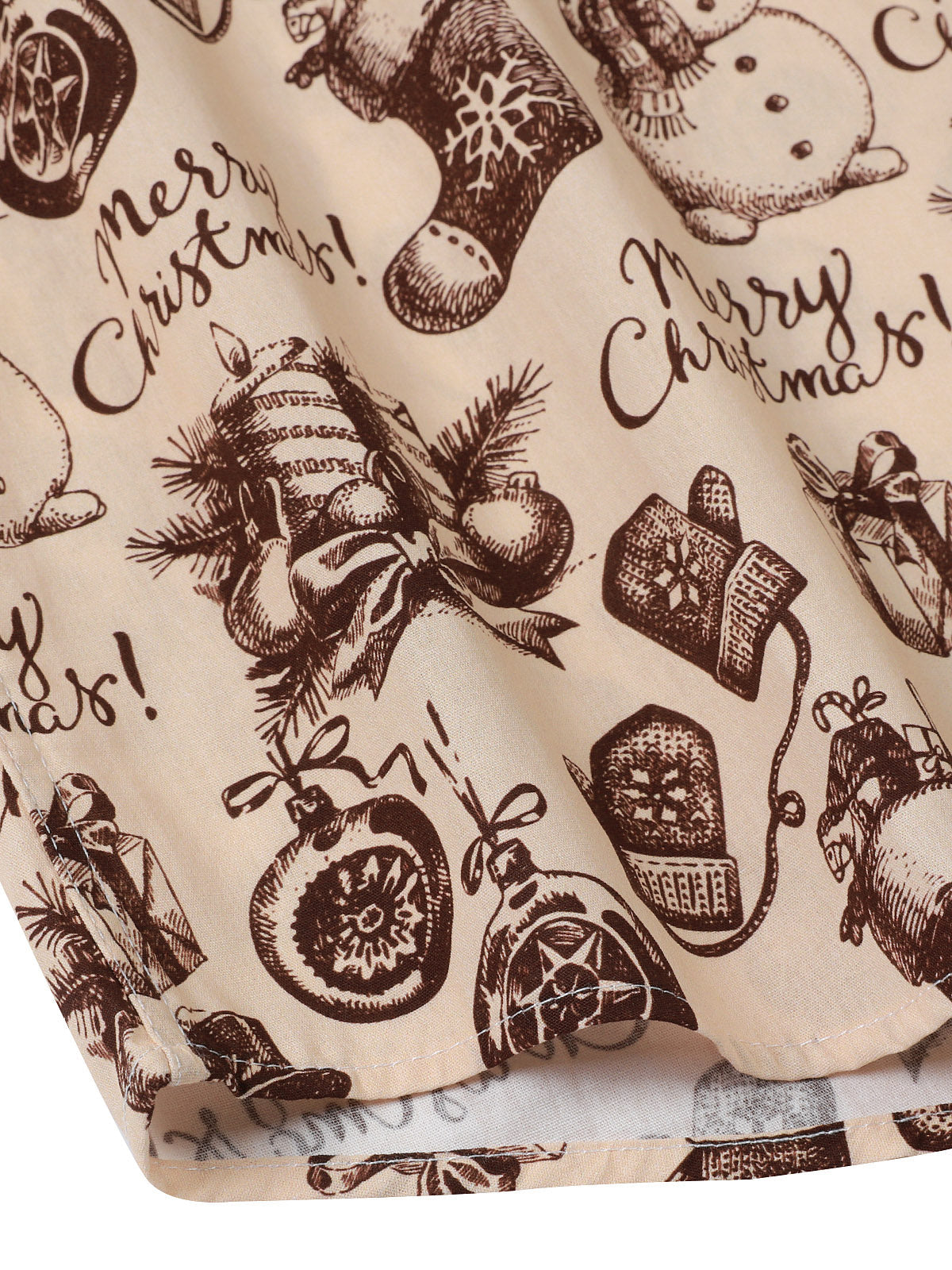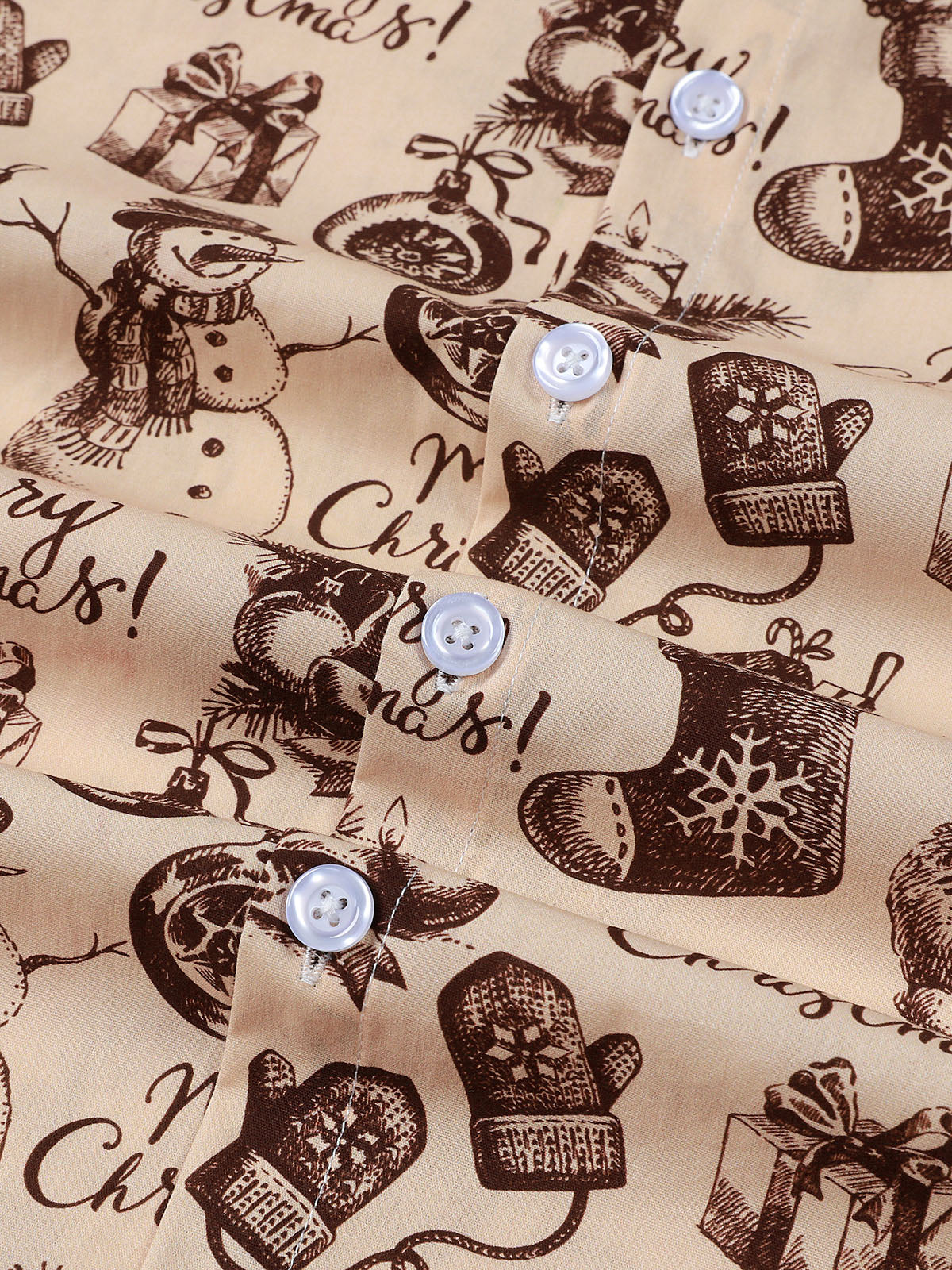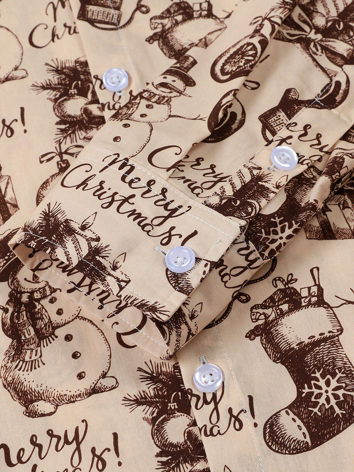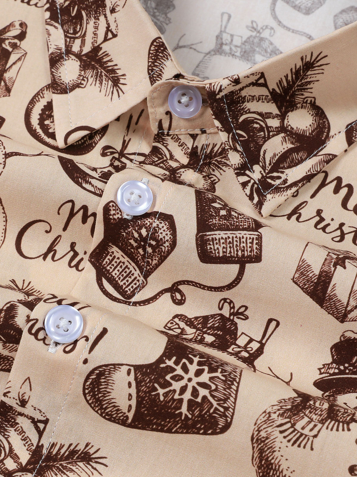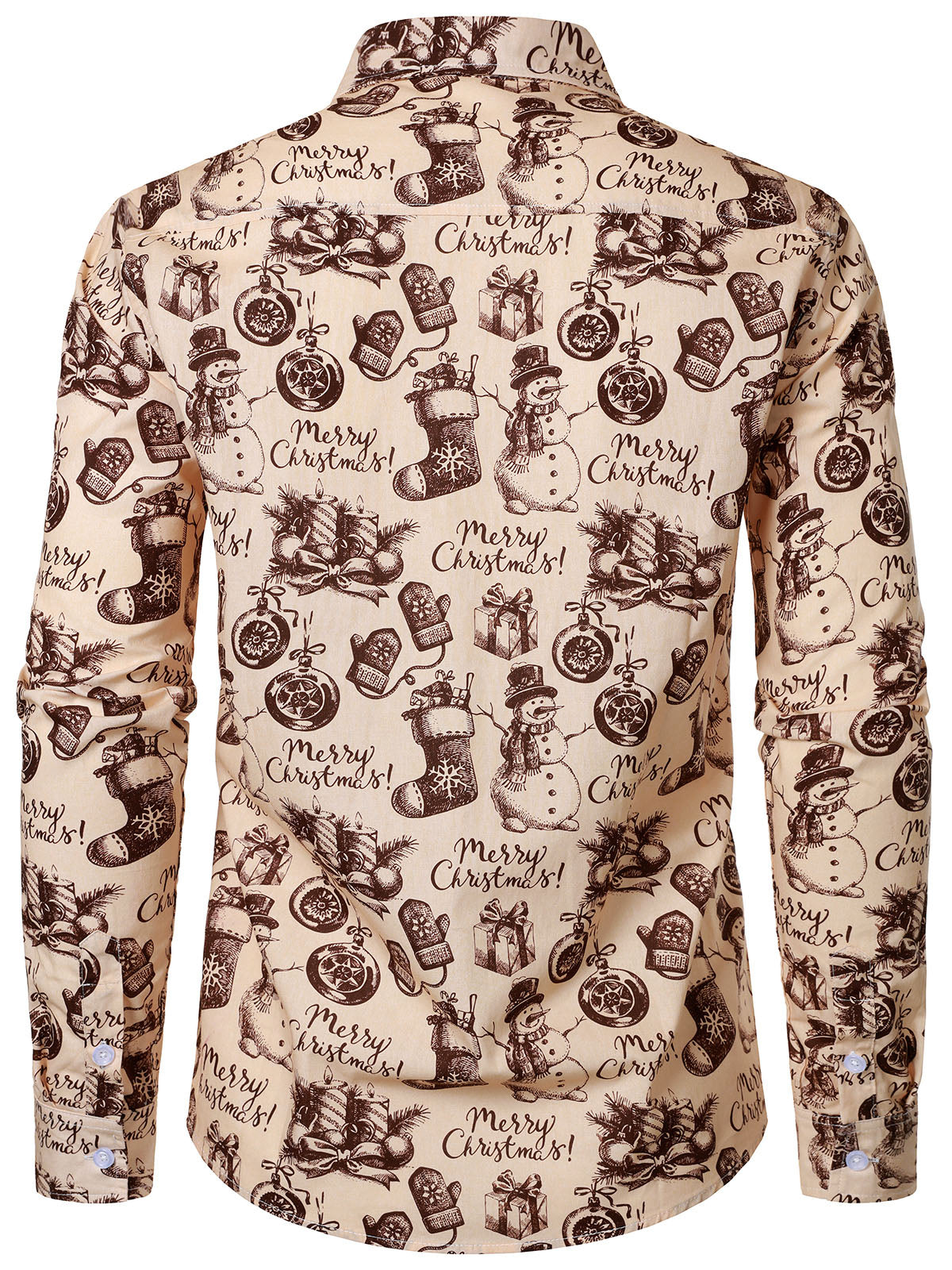 Chemise à manches longues beige vintage en coton pour homme, motif Noël