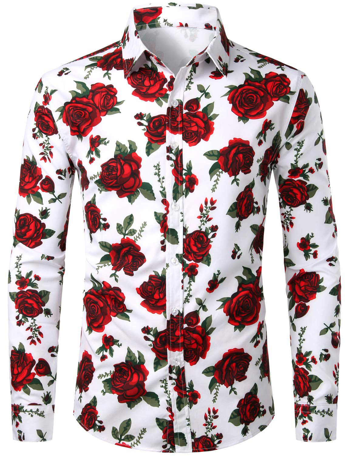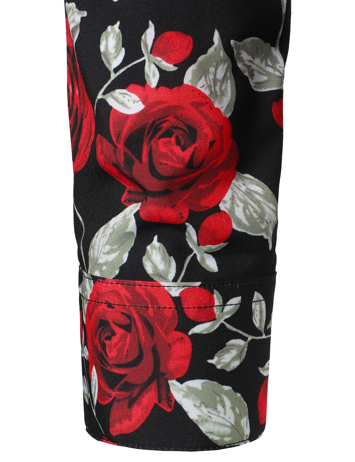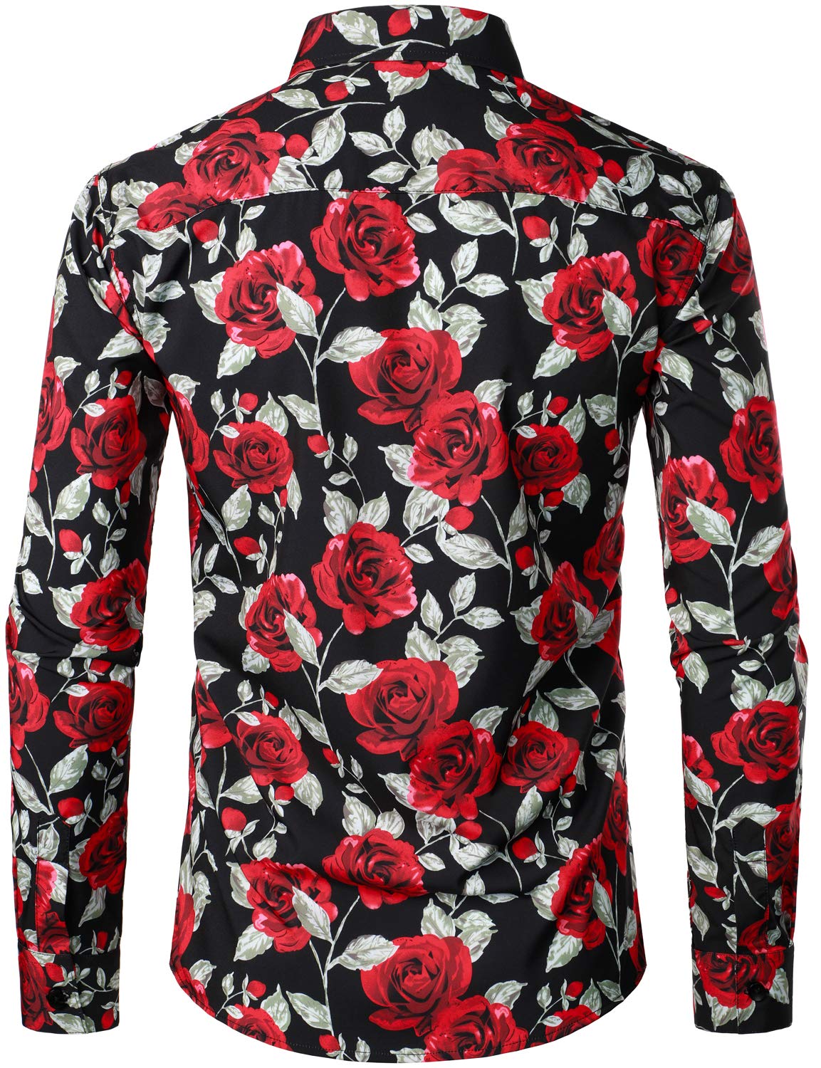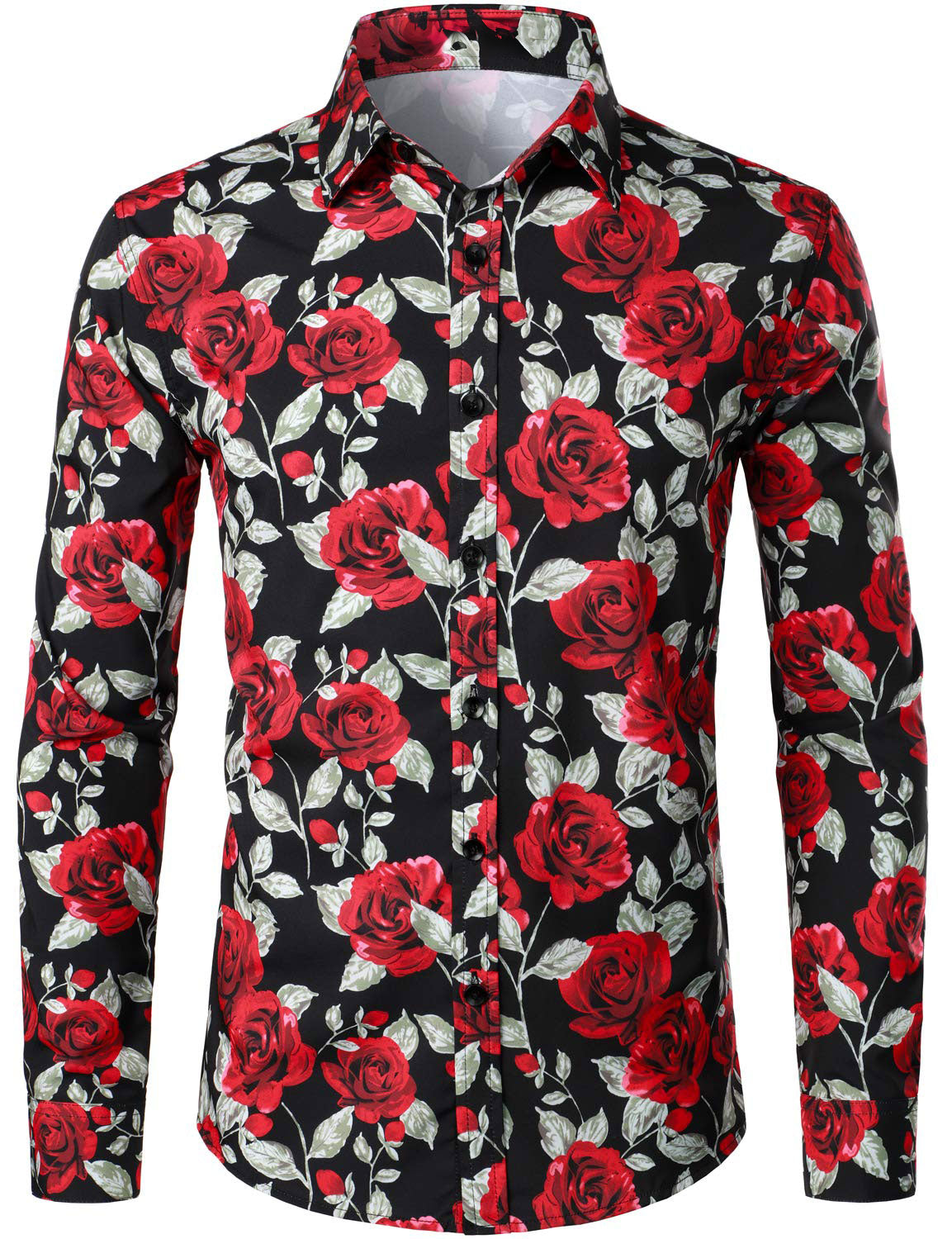 Chemise à manches longues boutonnée décontractée pour hommes avec motif rose rouge