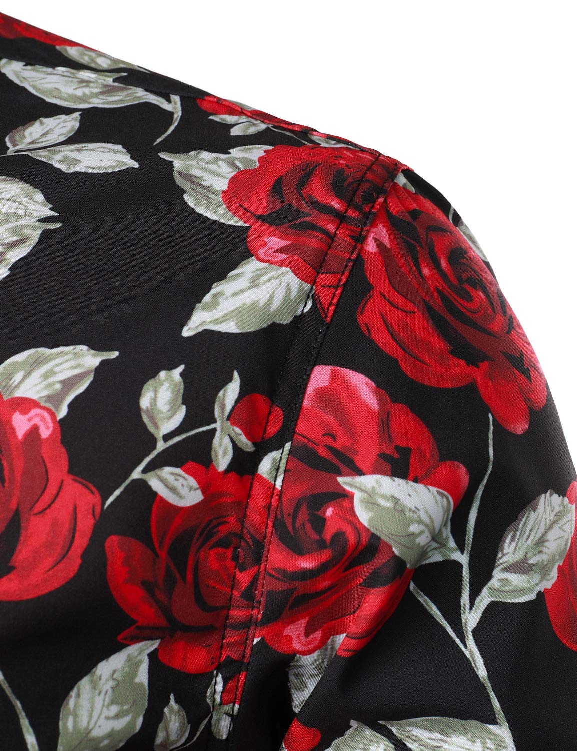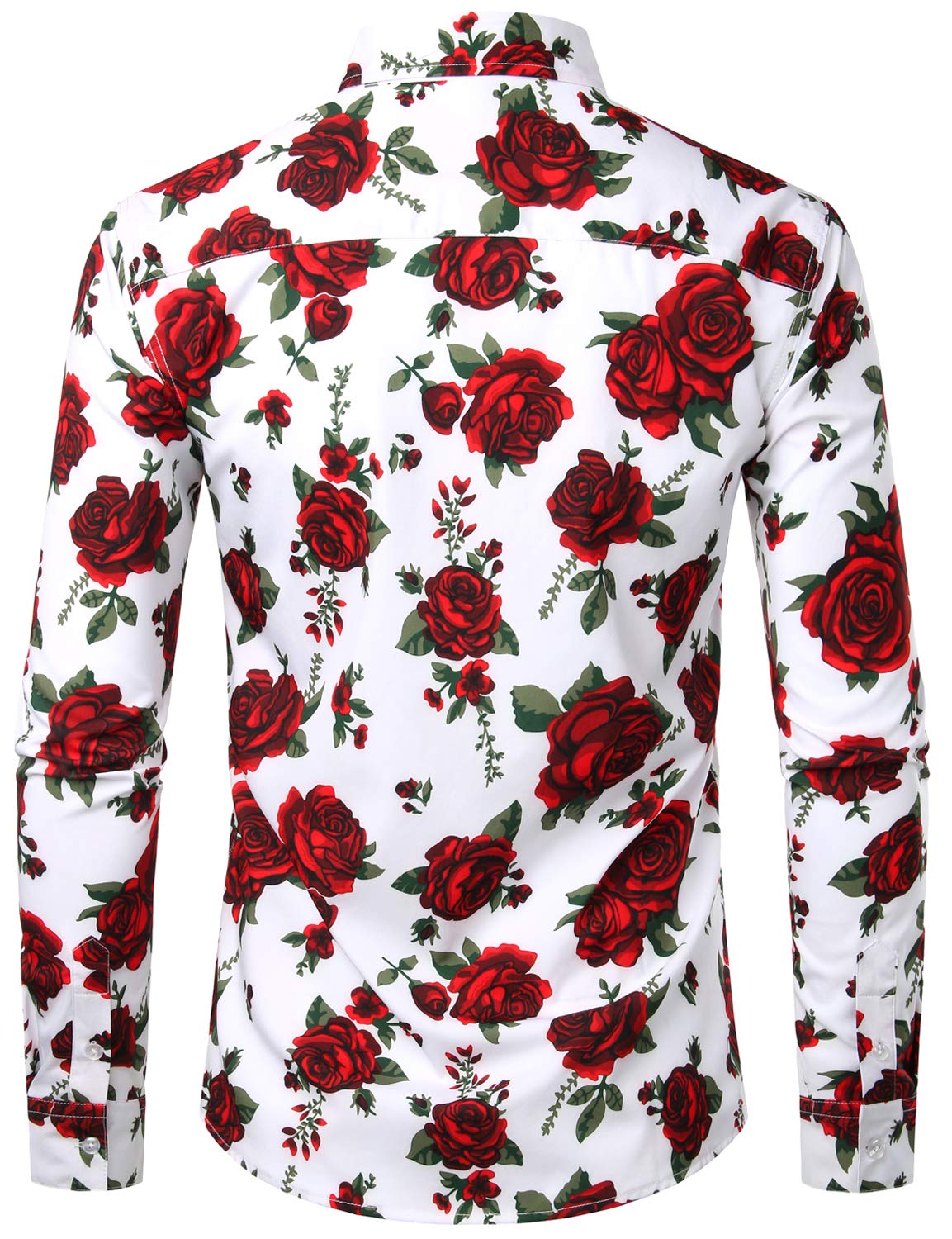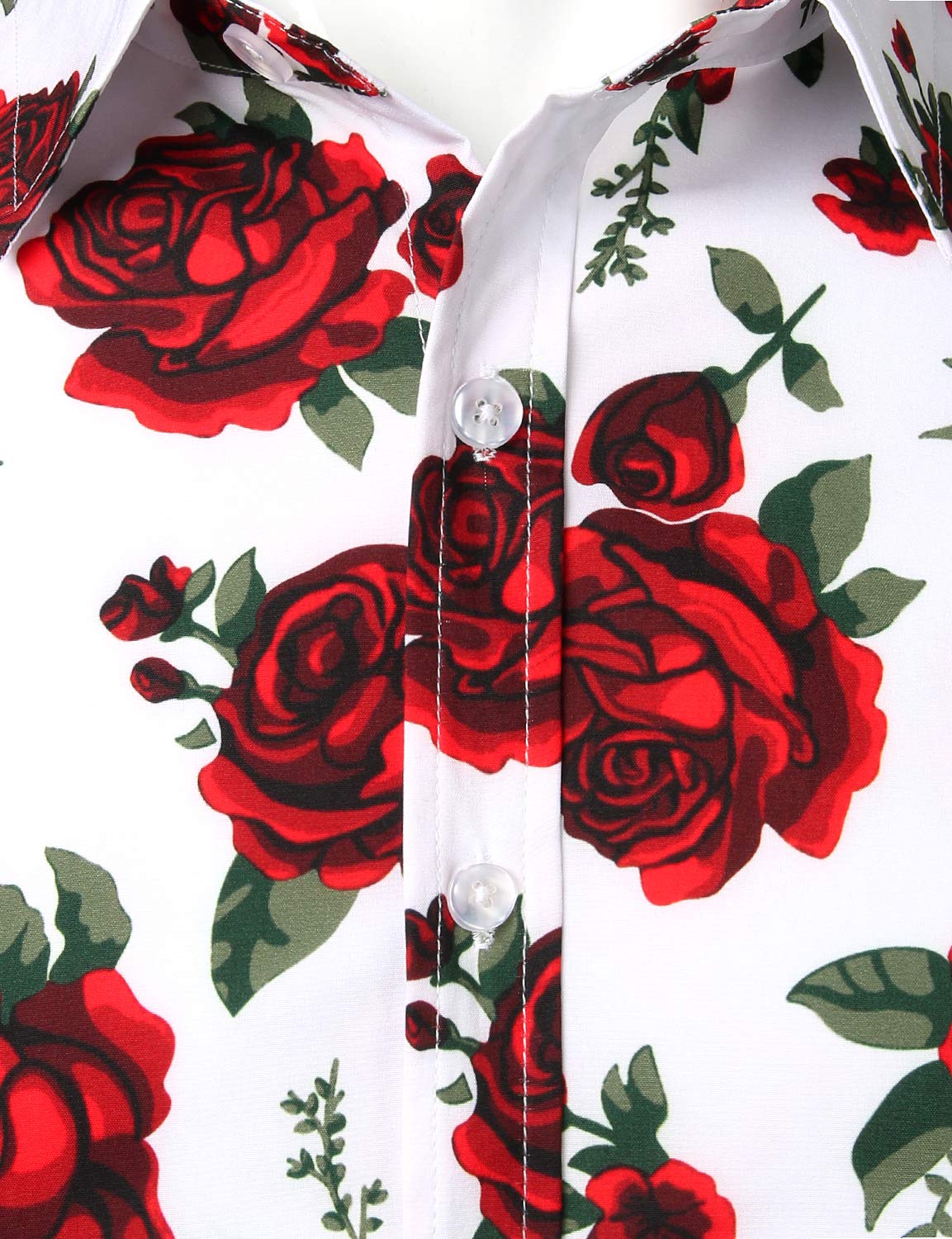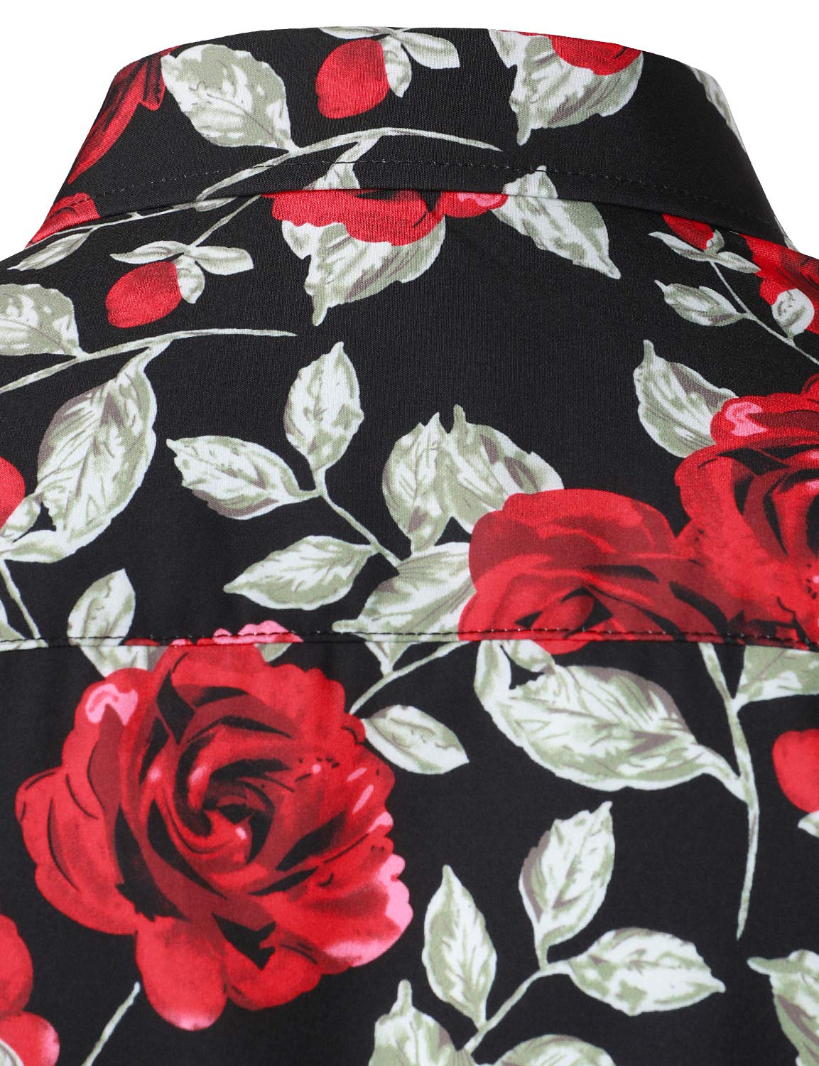 Chemise à manches longues boutonnée décontractée pour hommes avec motif rose rouge