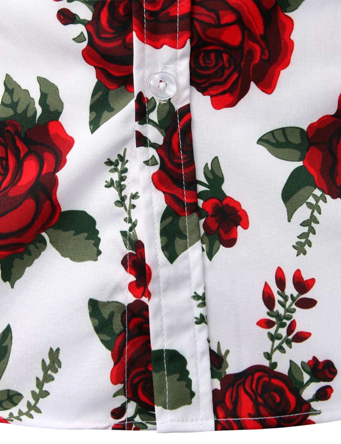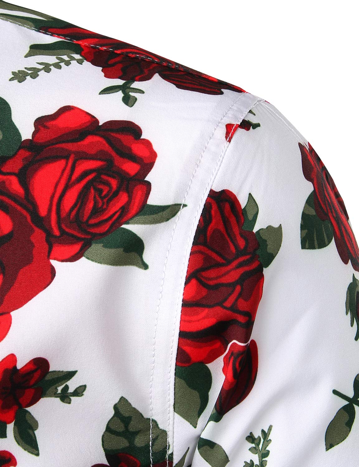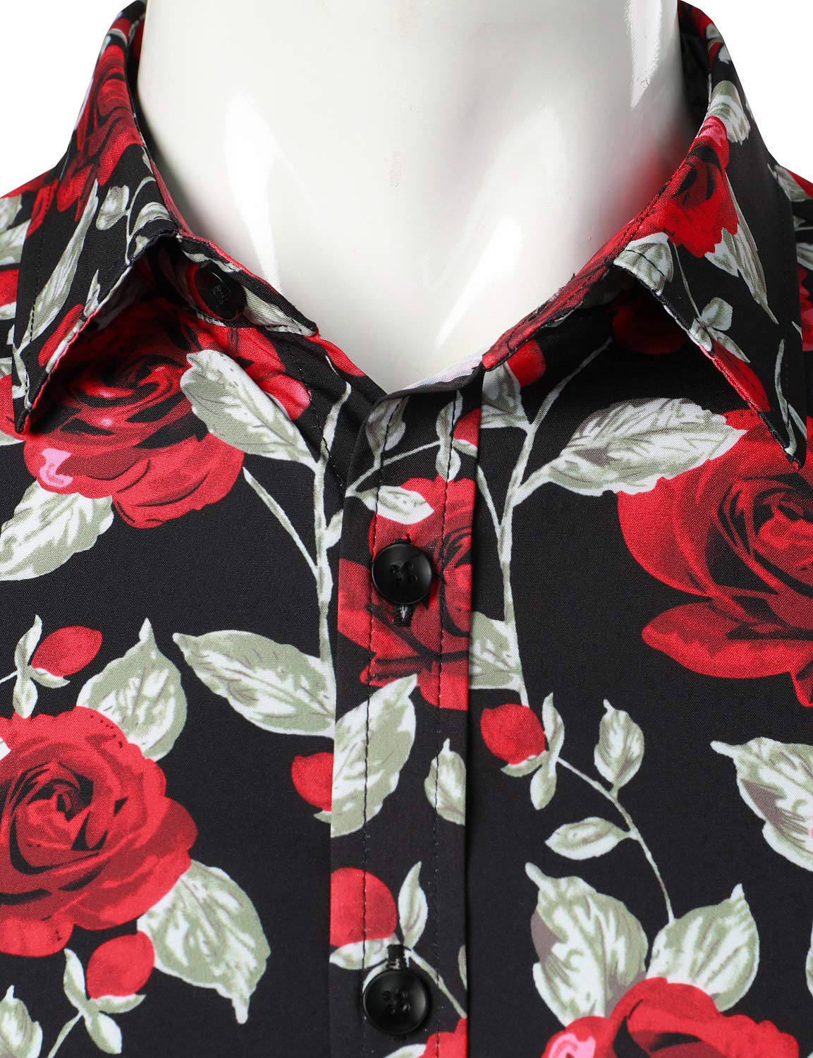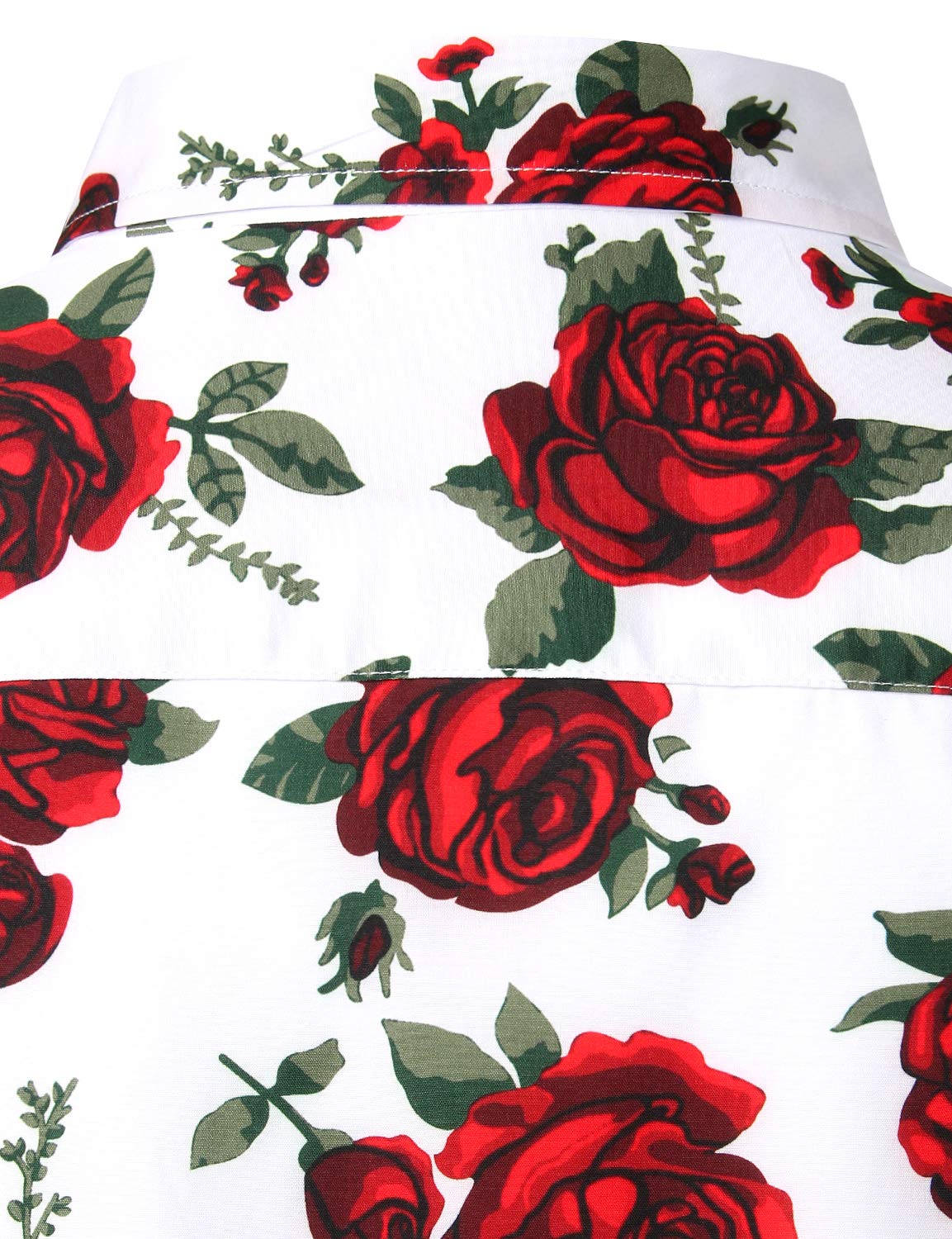 Chemise à manches longues boutonnée décontractée pour hommes avec motif rose rouge