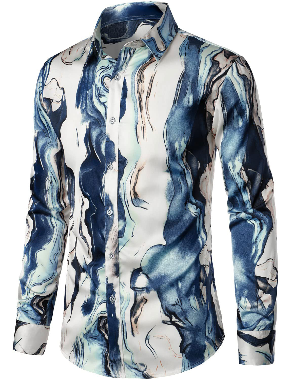 Chemise boutonnée décontractée à manches longues et imprimé abstrait pour hommes