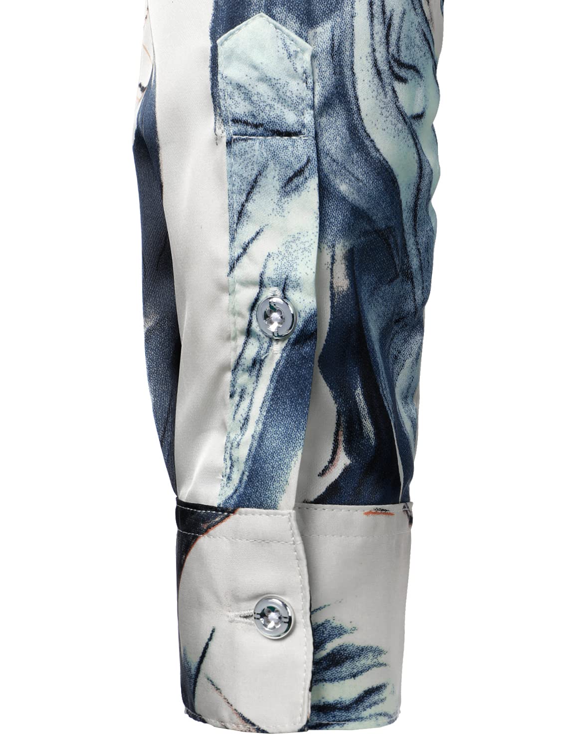 Chemise boutonnée à manches longues et imprimé floral bleu rose pour homme