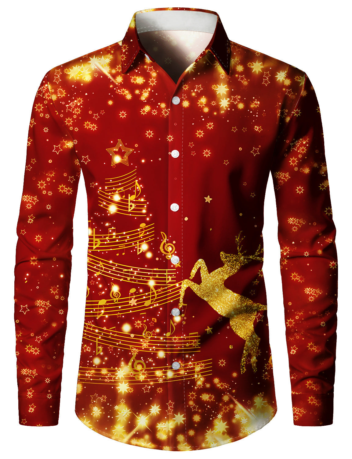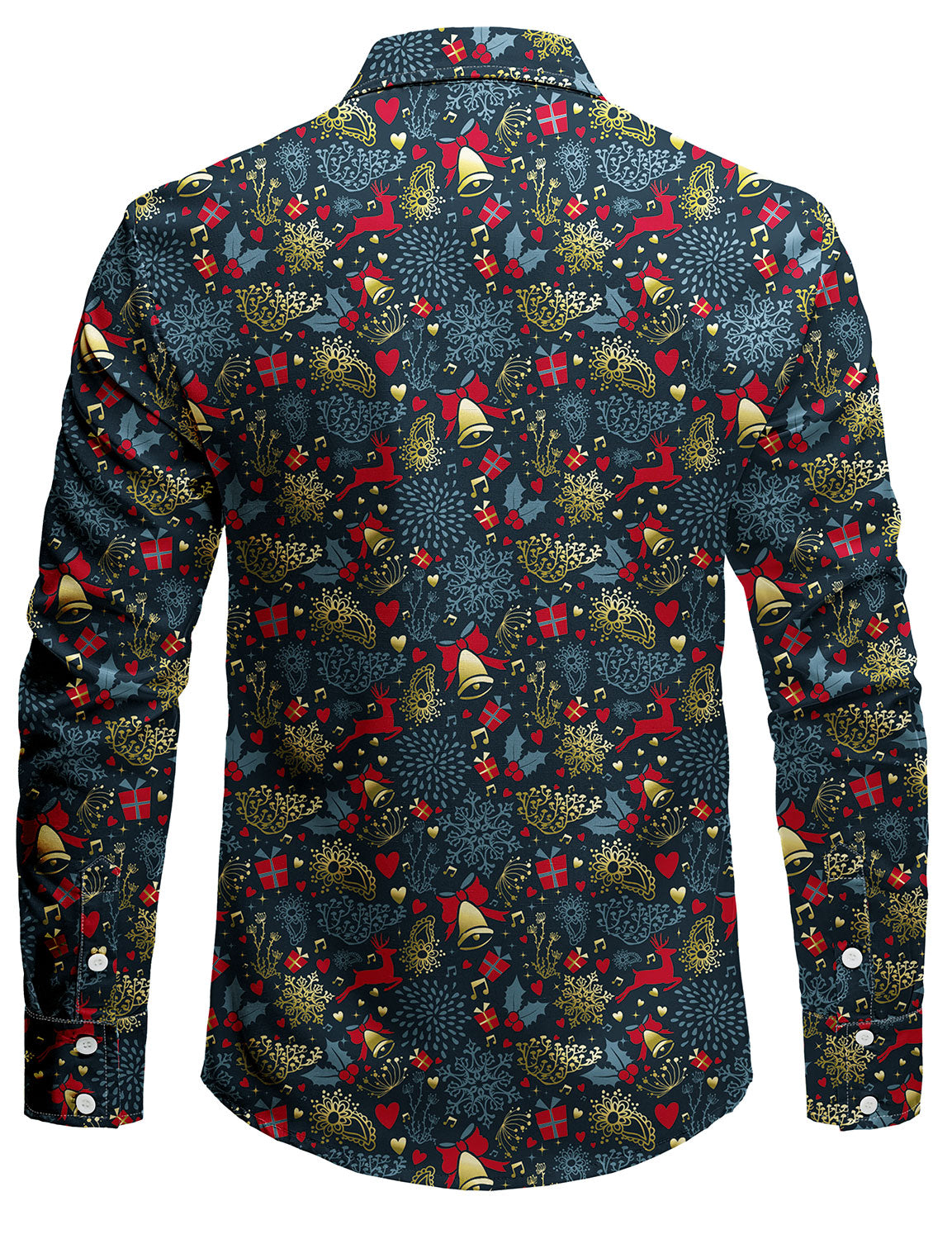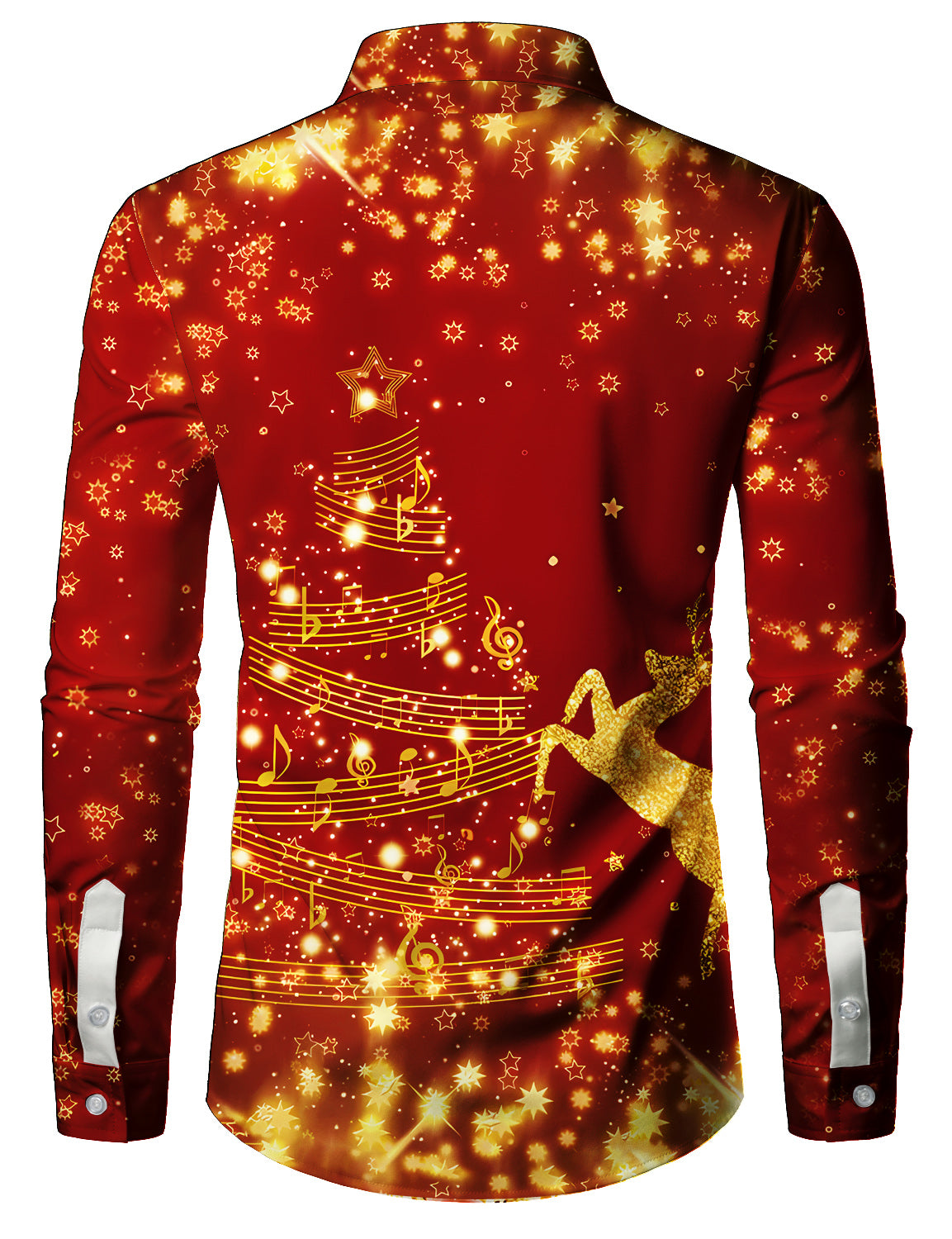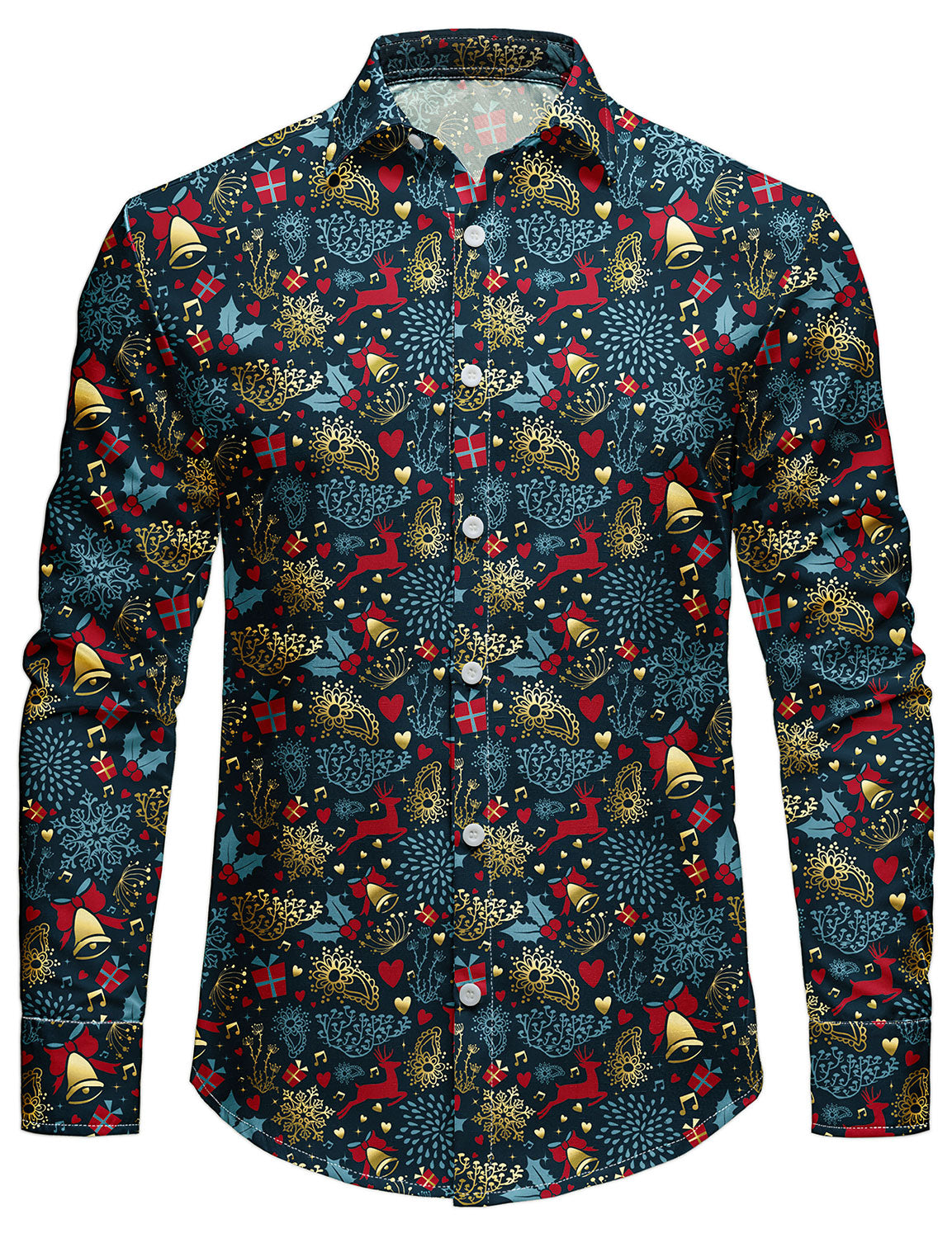 Chemise boutonnée à manches longues et imprimé Noël doré pour homme