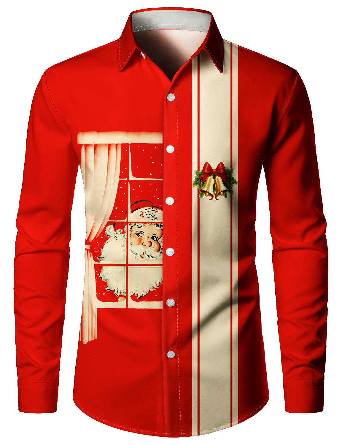 Chemise à manches longues pour homme avec imprimé Père Noël pour Noël et Nouvel An