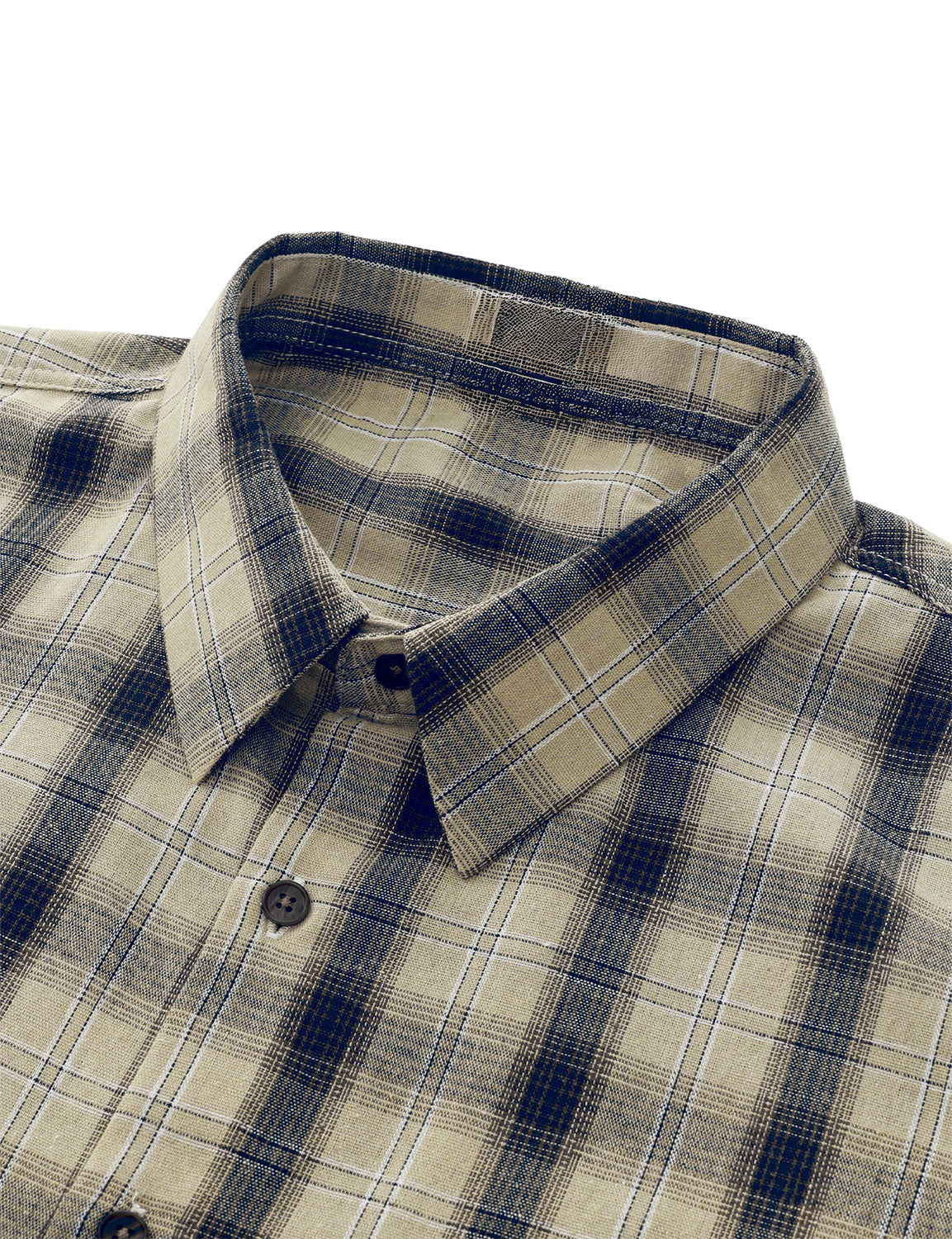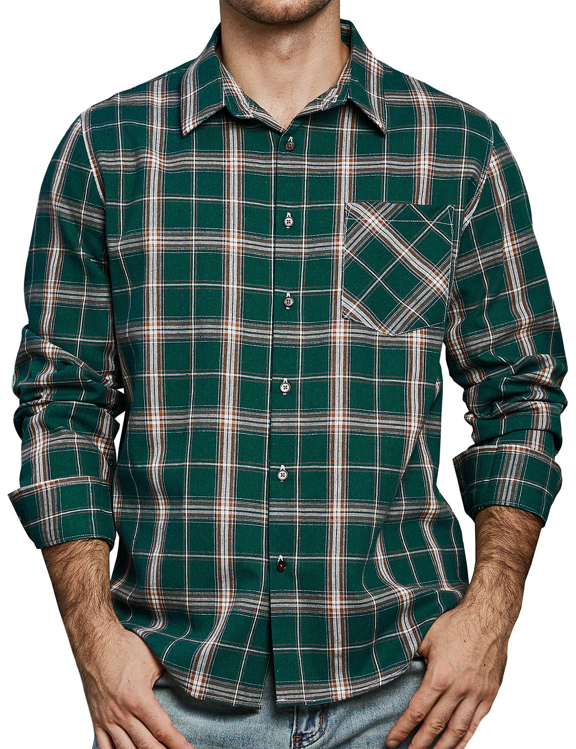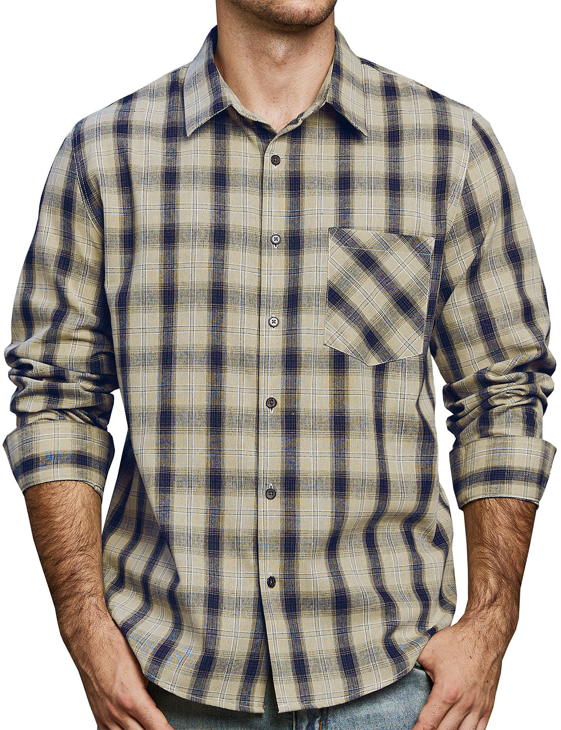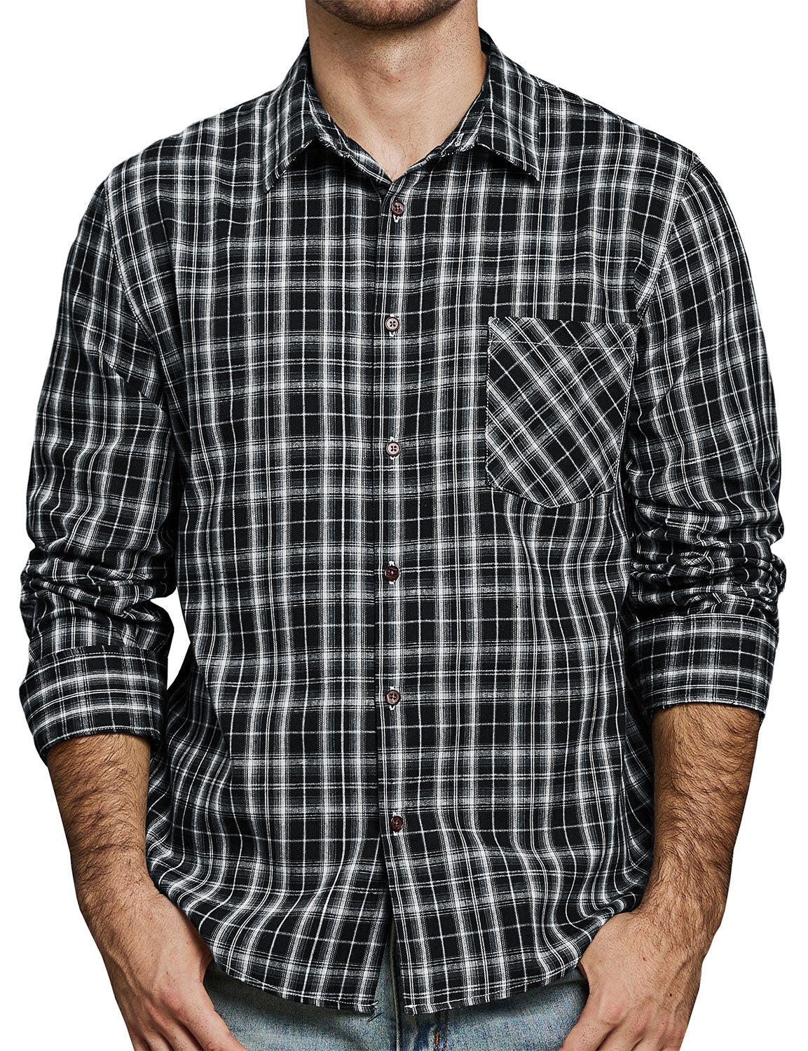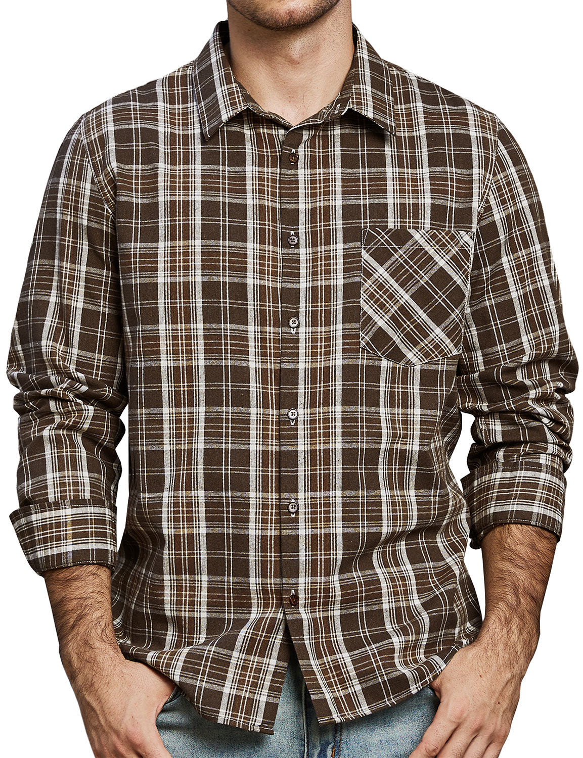 Chemise à manches longues à carreaux décontractée pour hommes avec poche rétro
