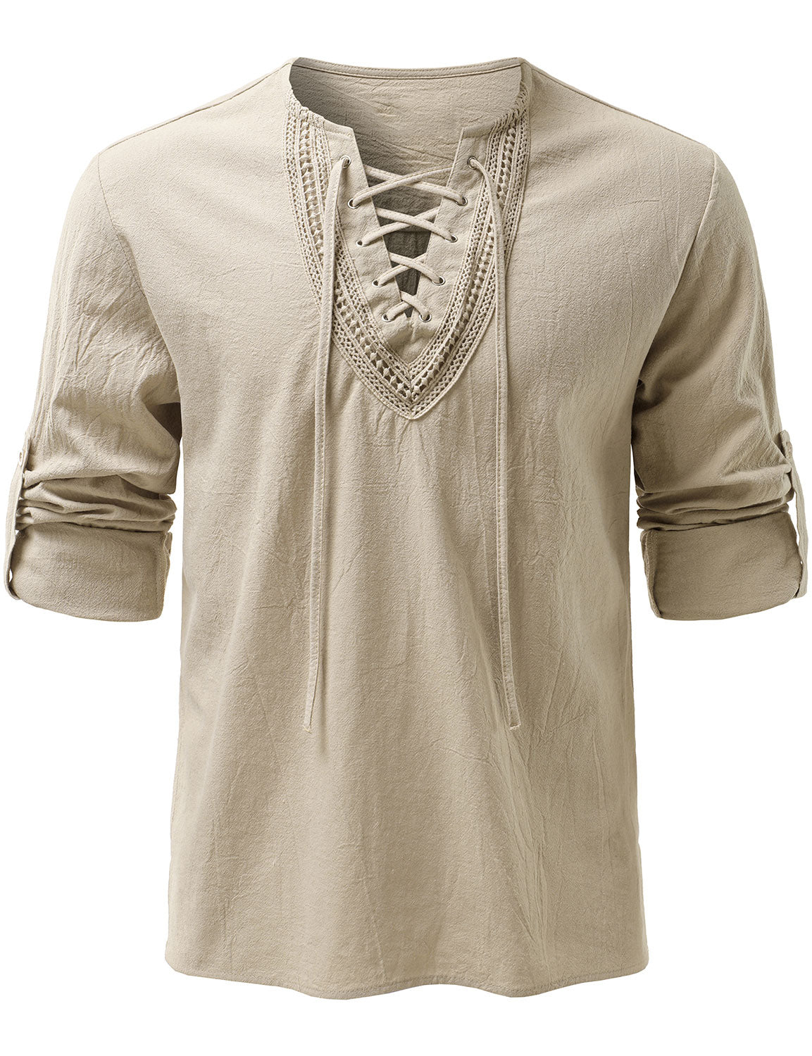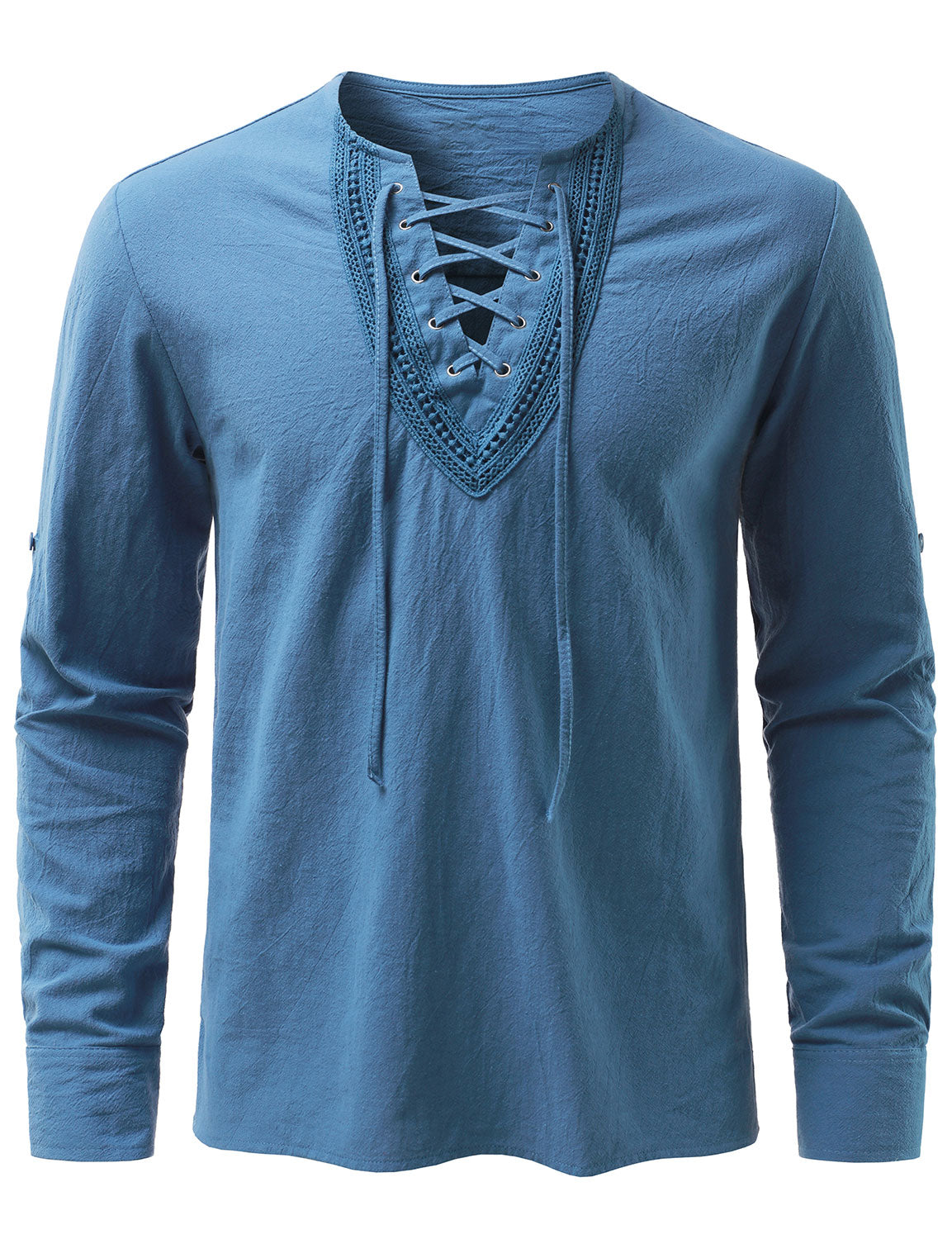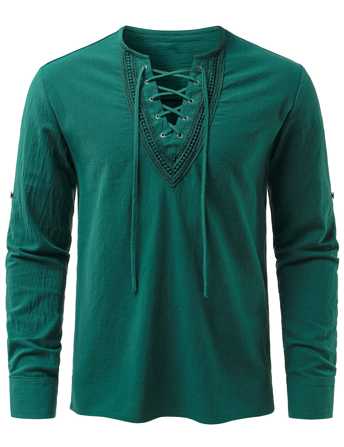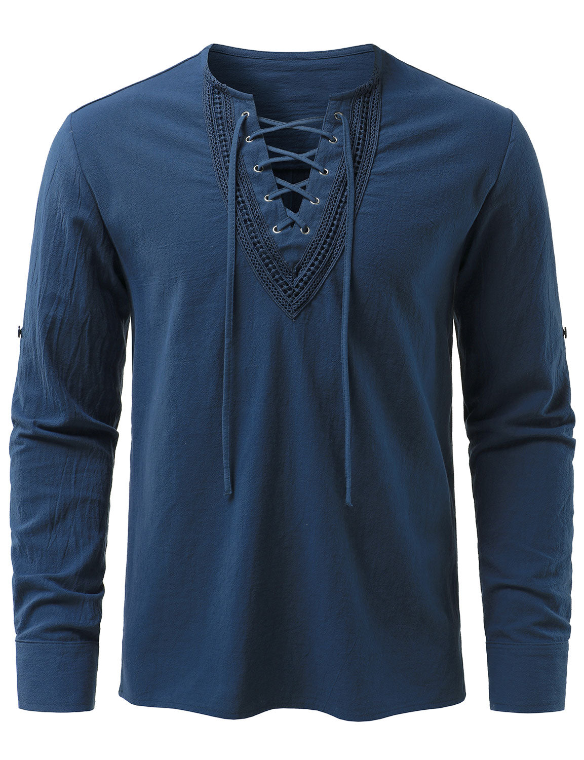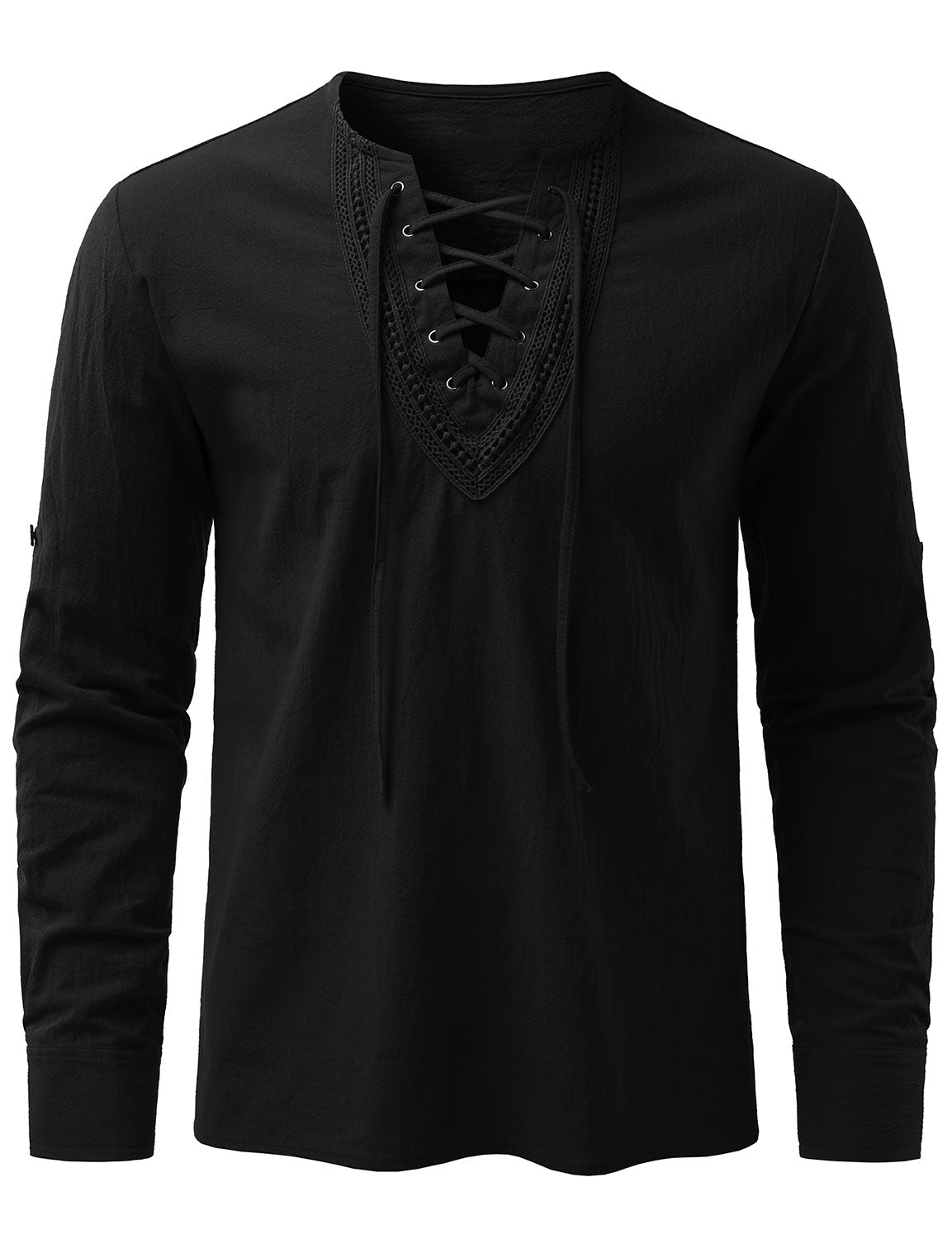 Chemises à lacets à manches longues pour homme, costume d'Halloween, style gothique, steampunk, rétro, pirate, viking