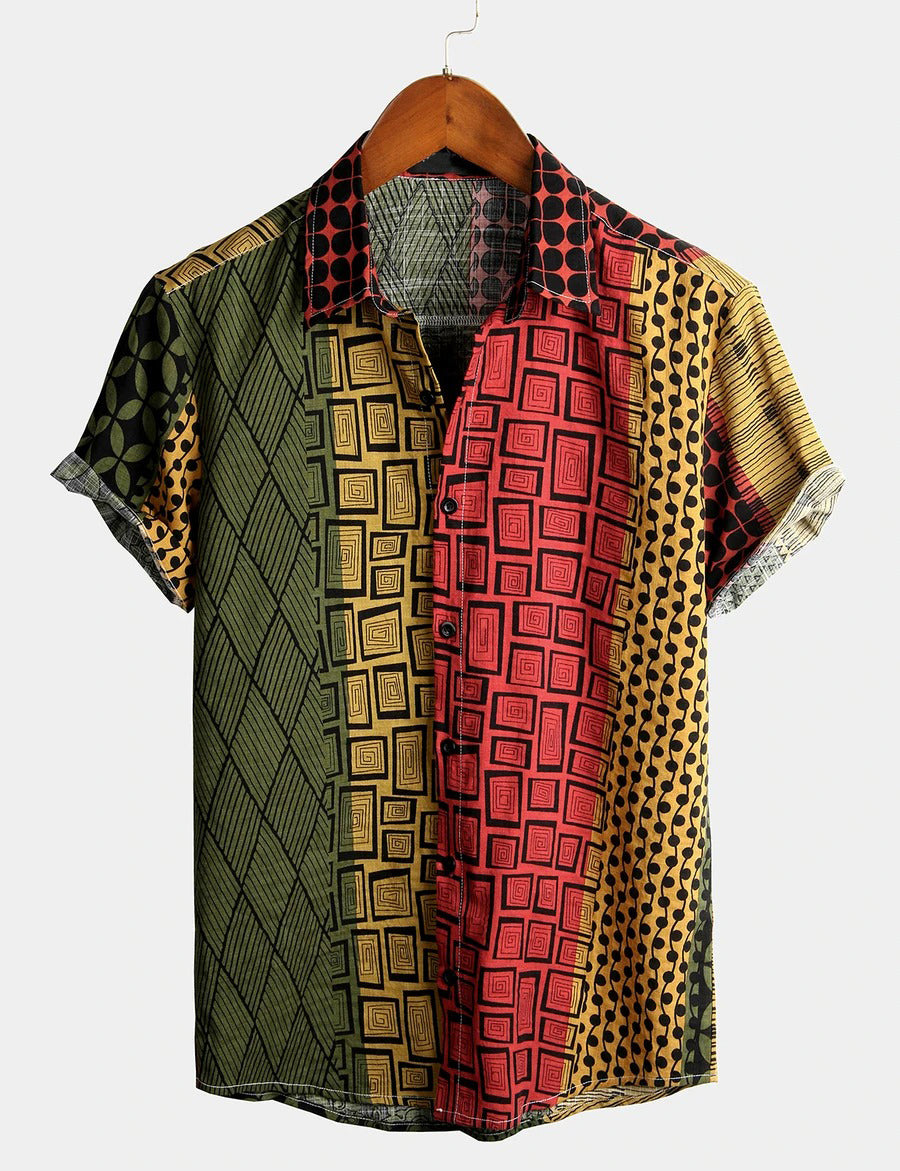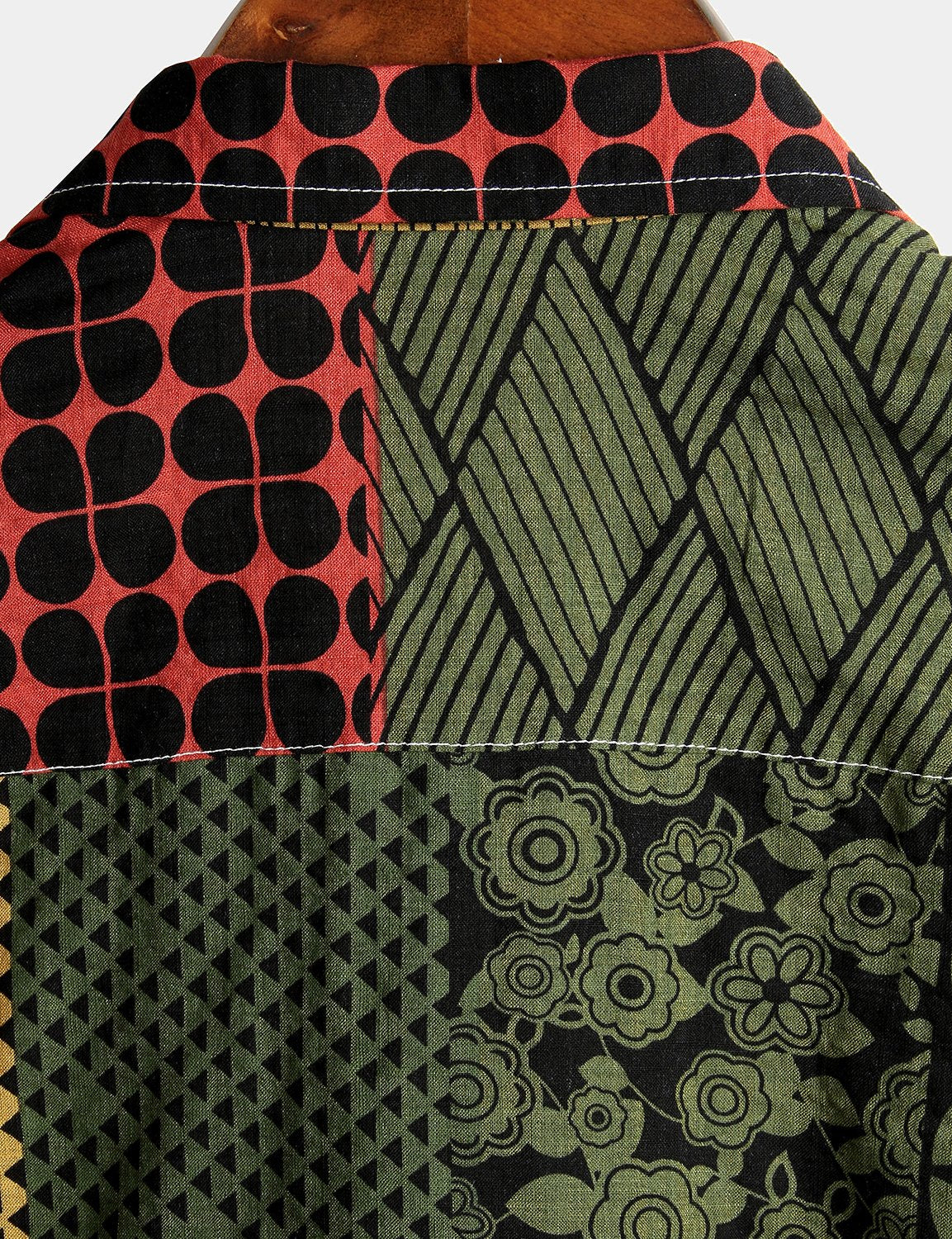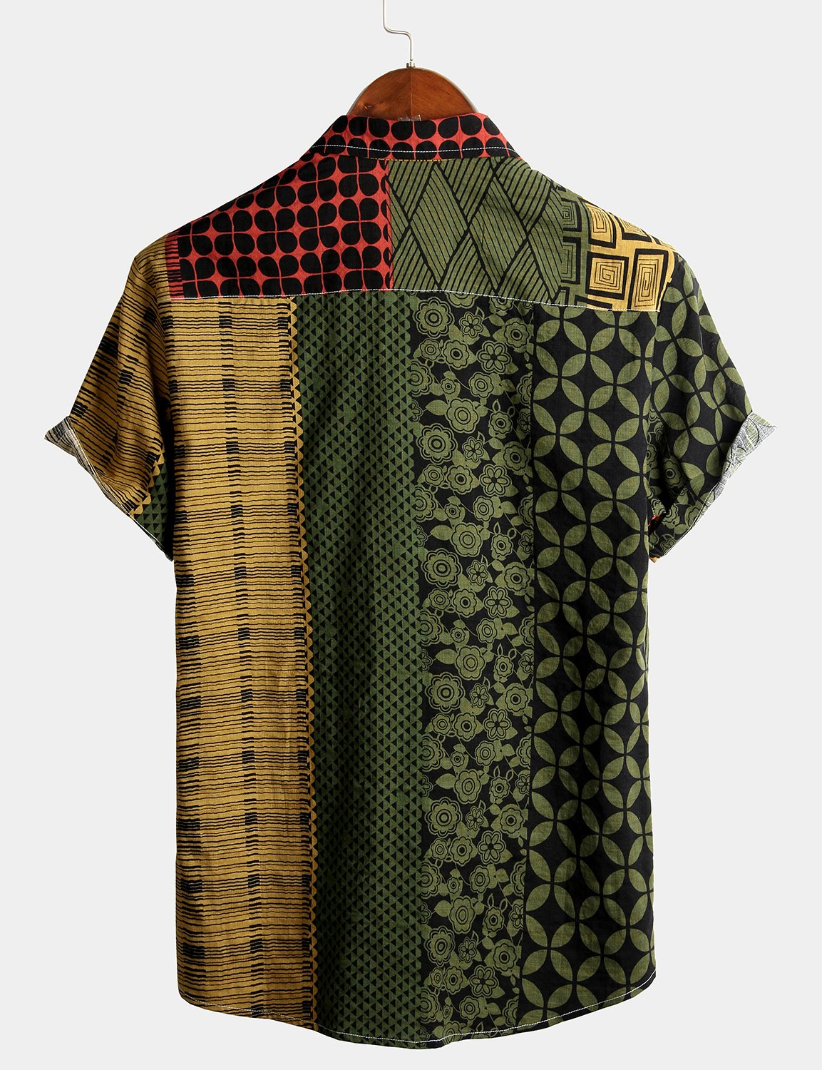 Chemise en coton à manches courtes imprimée patchwork pour homme