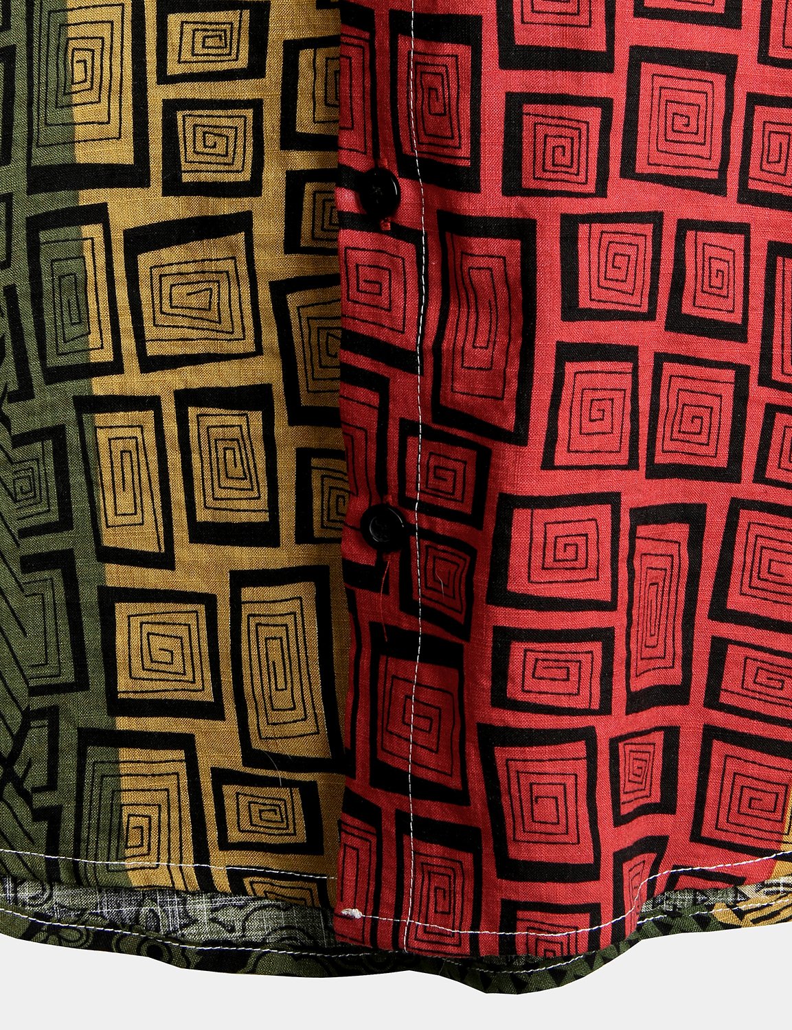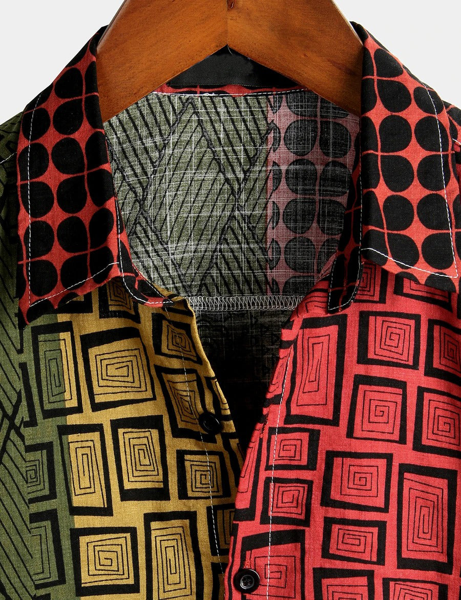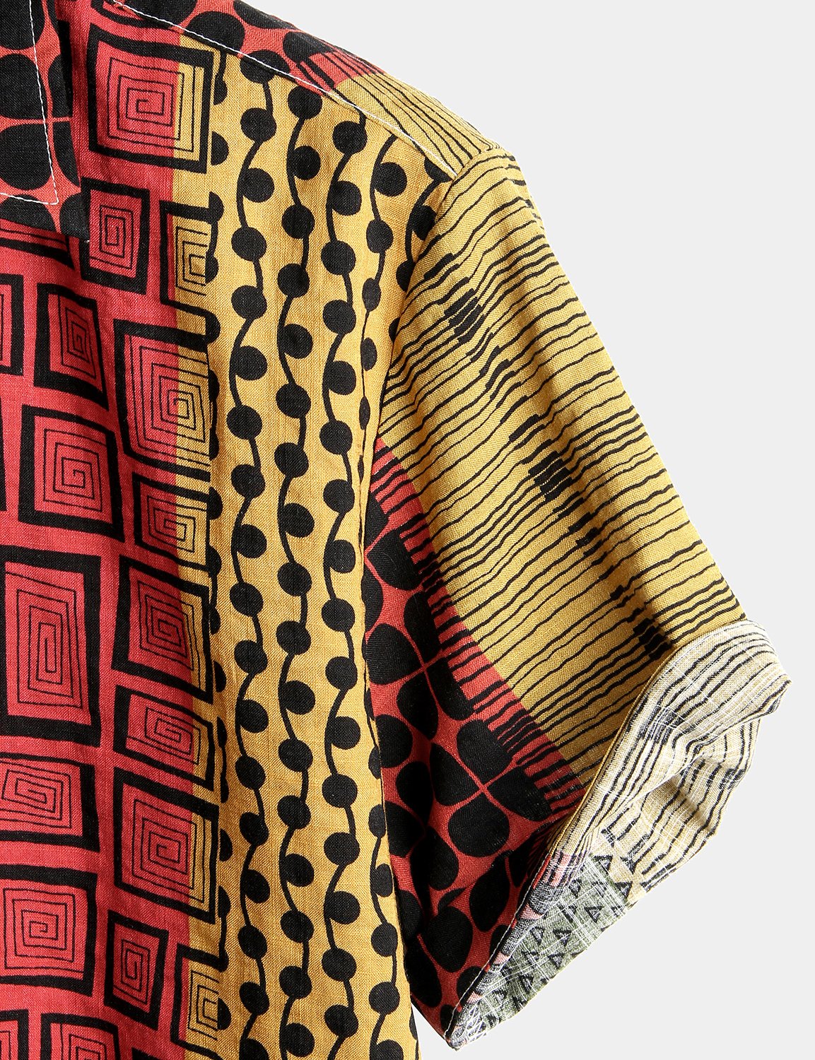 Chemise en coton à manches courtes imprimée patchwork pour homme