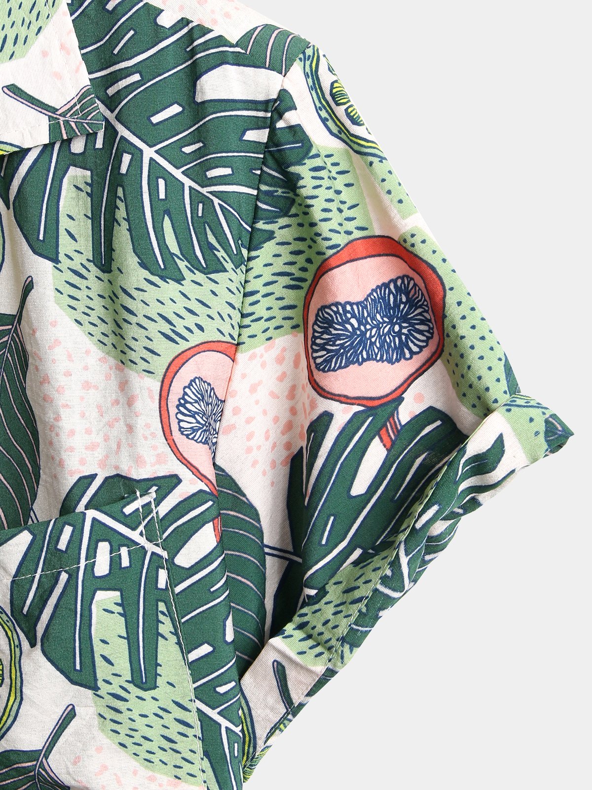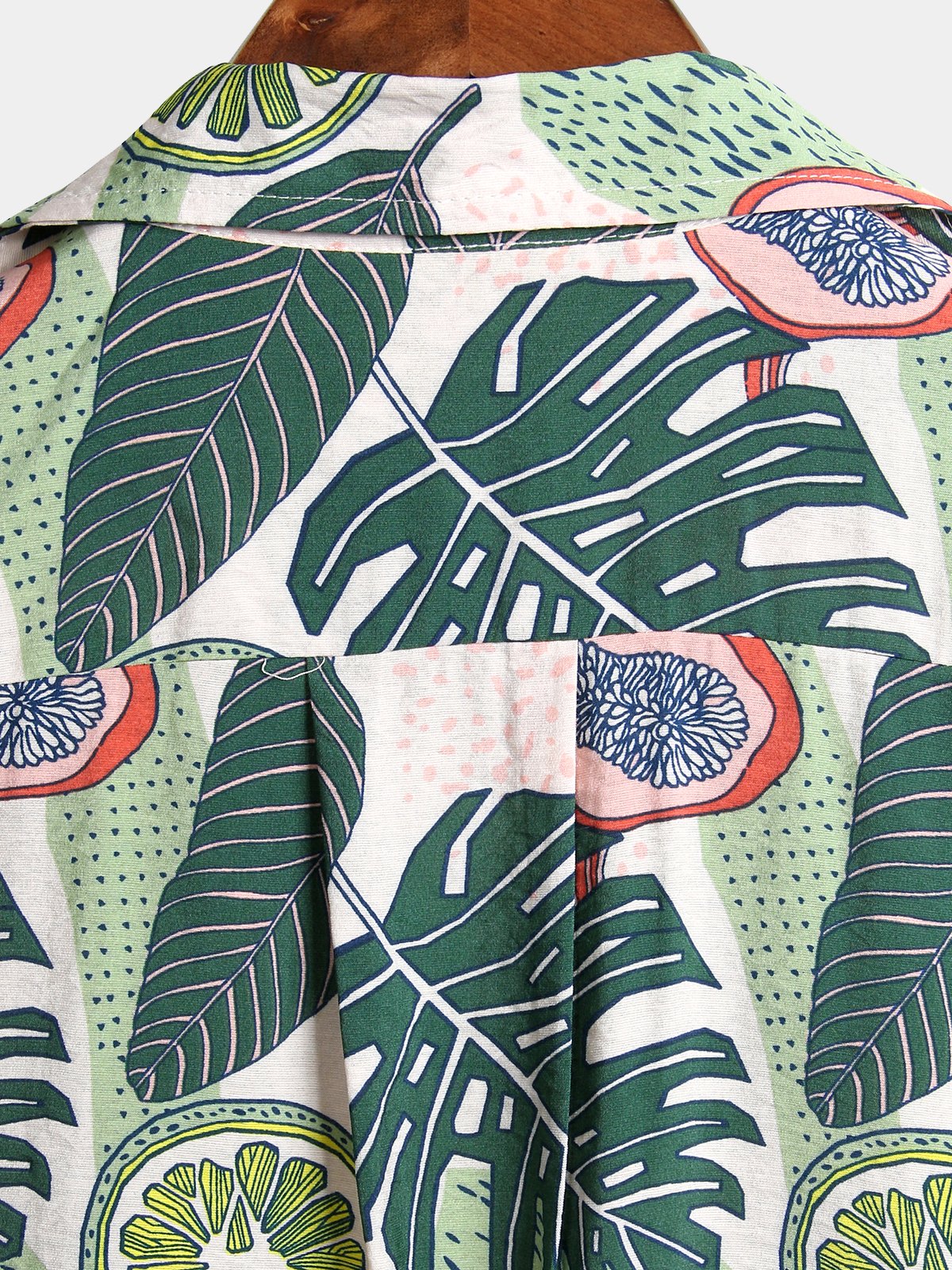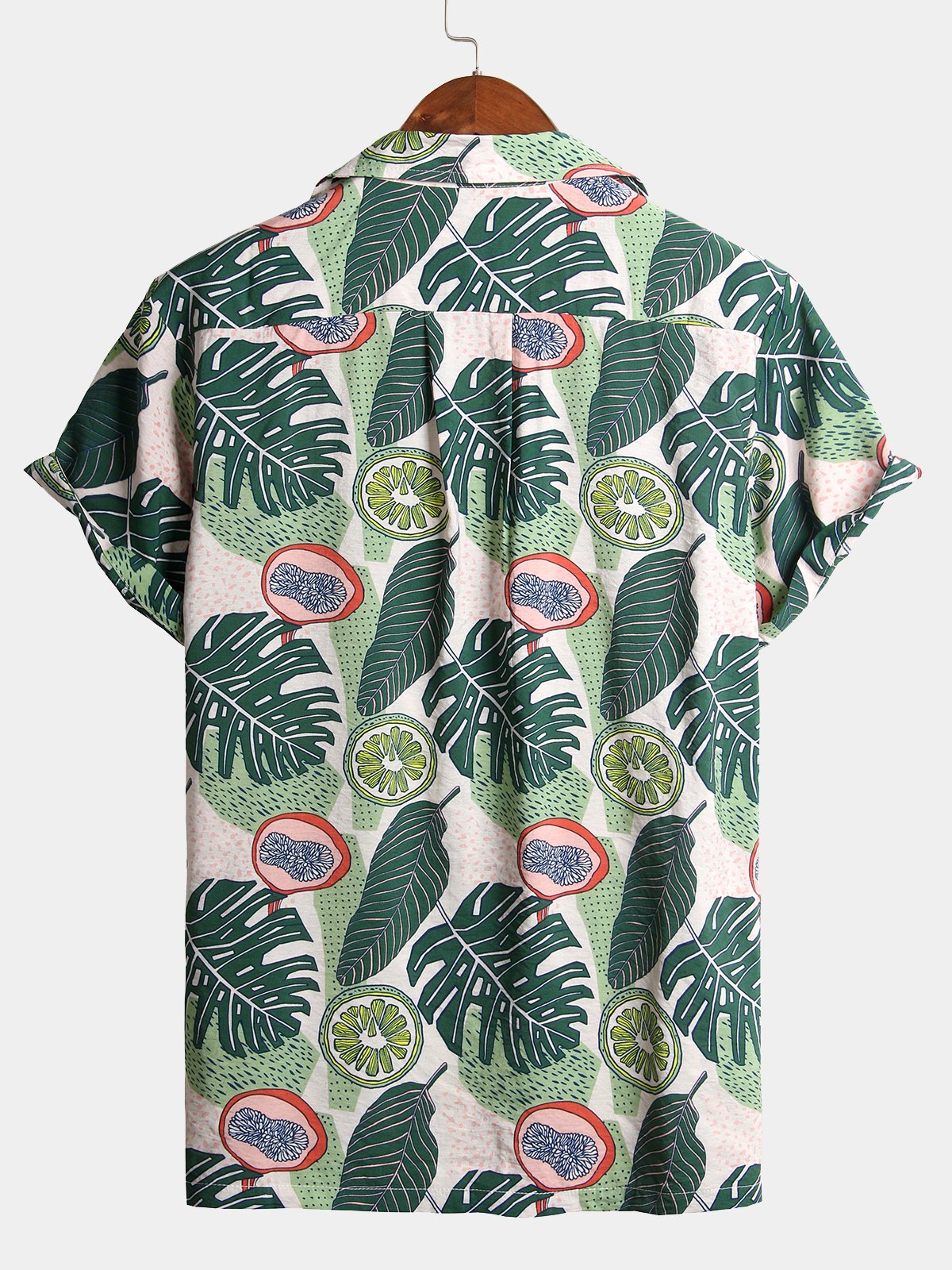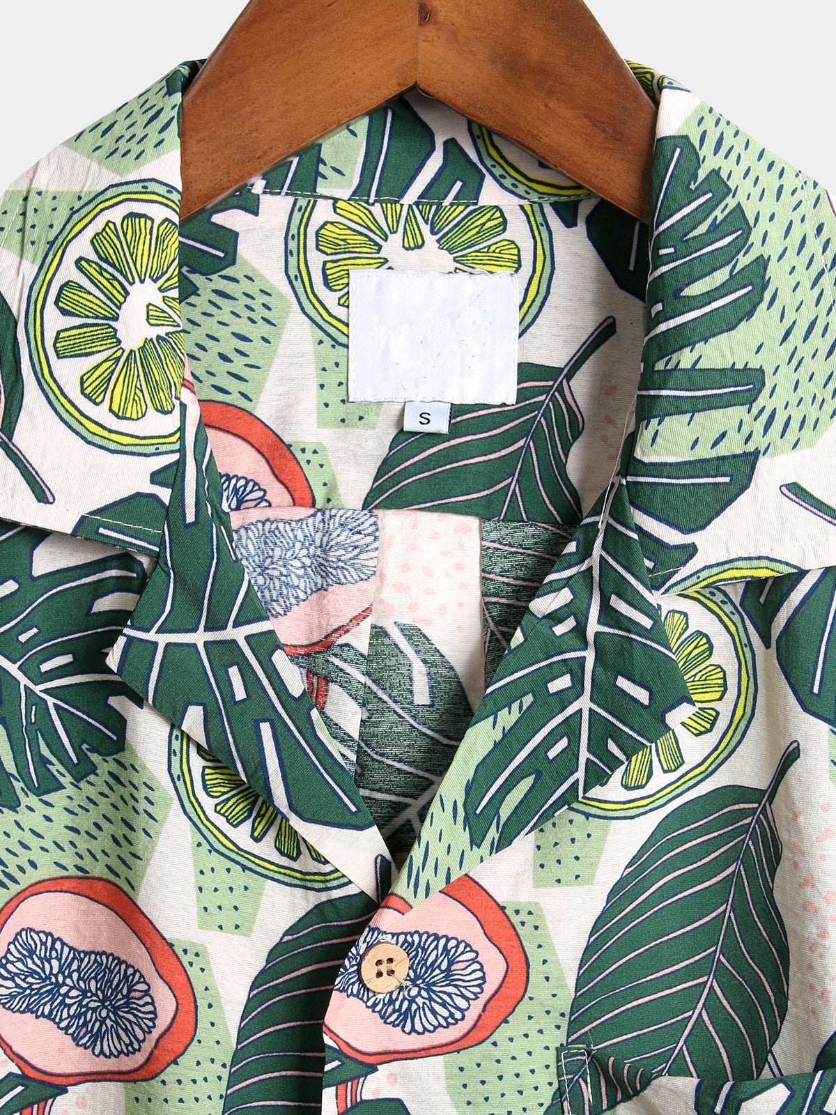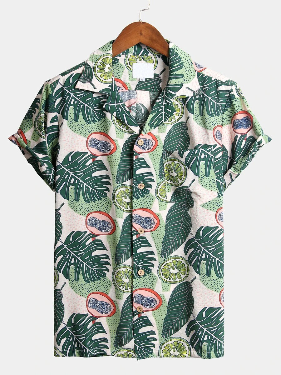 chemise d'homme en pur coton à imprimé style de vacances hawaïennes