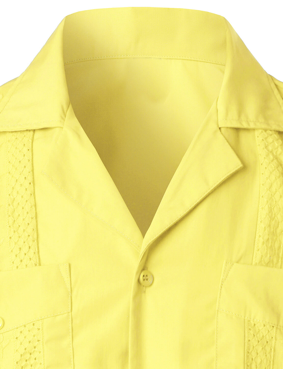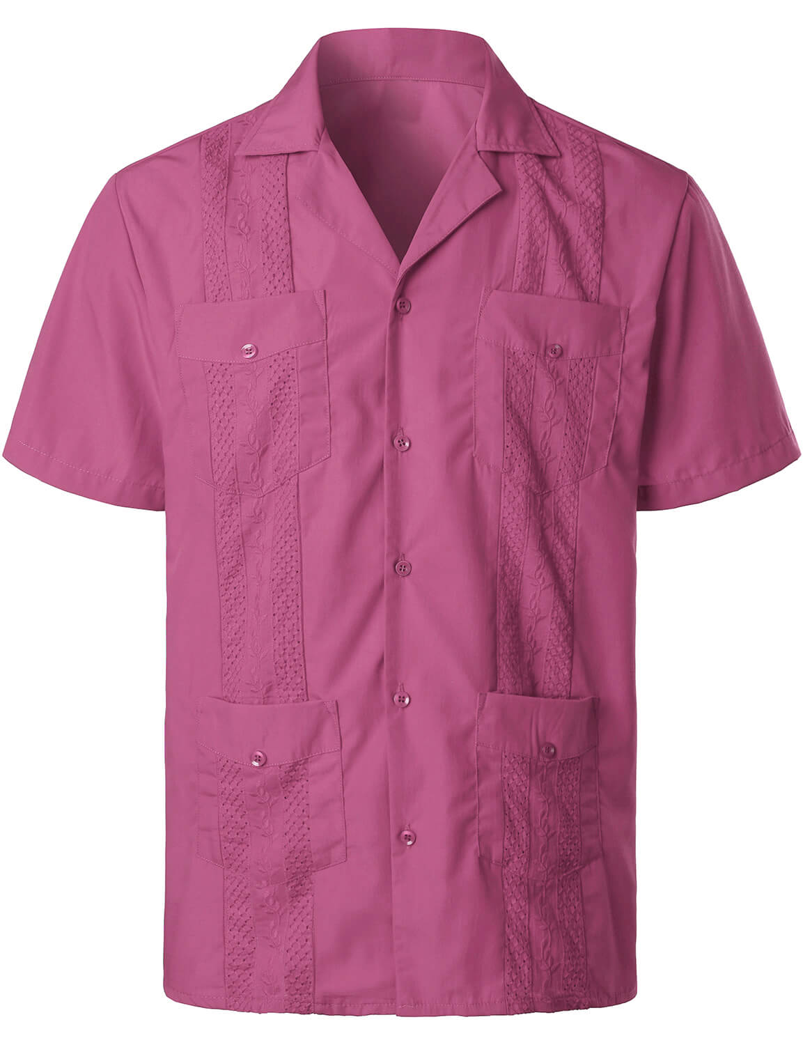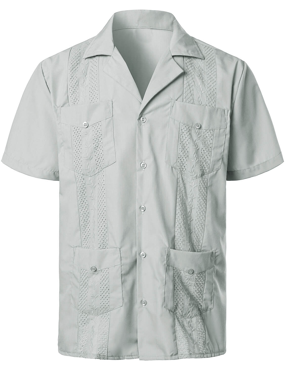 Broderie pour hommes Cuban Guayabera Summer Cool Manches courtes Button Up Shirt