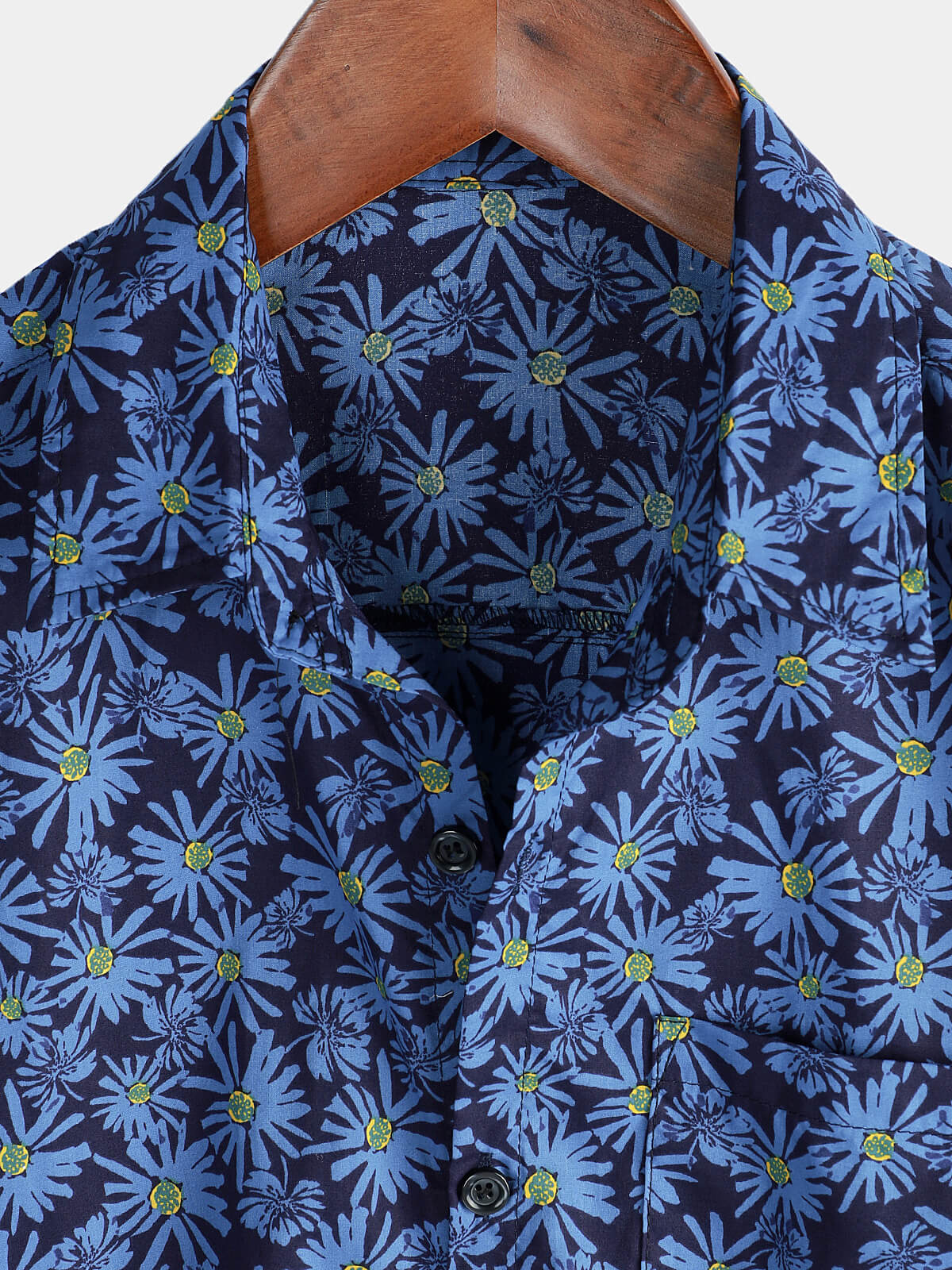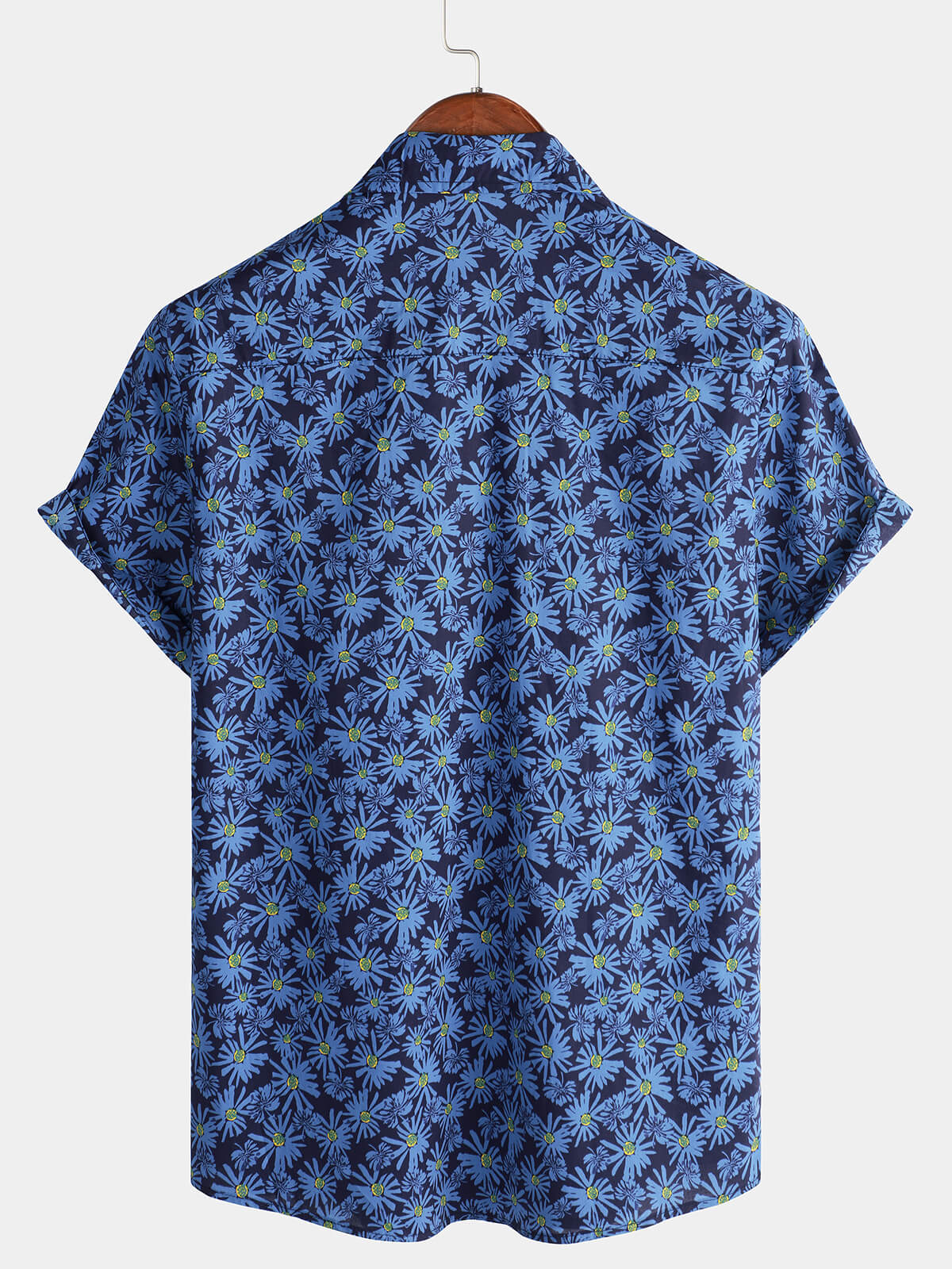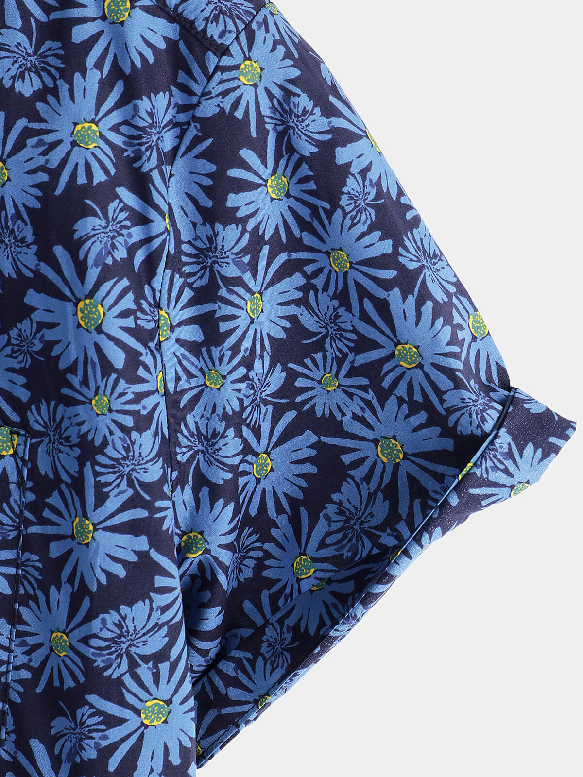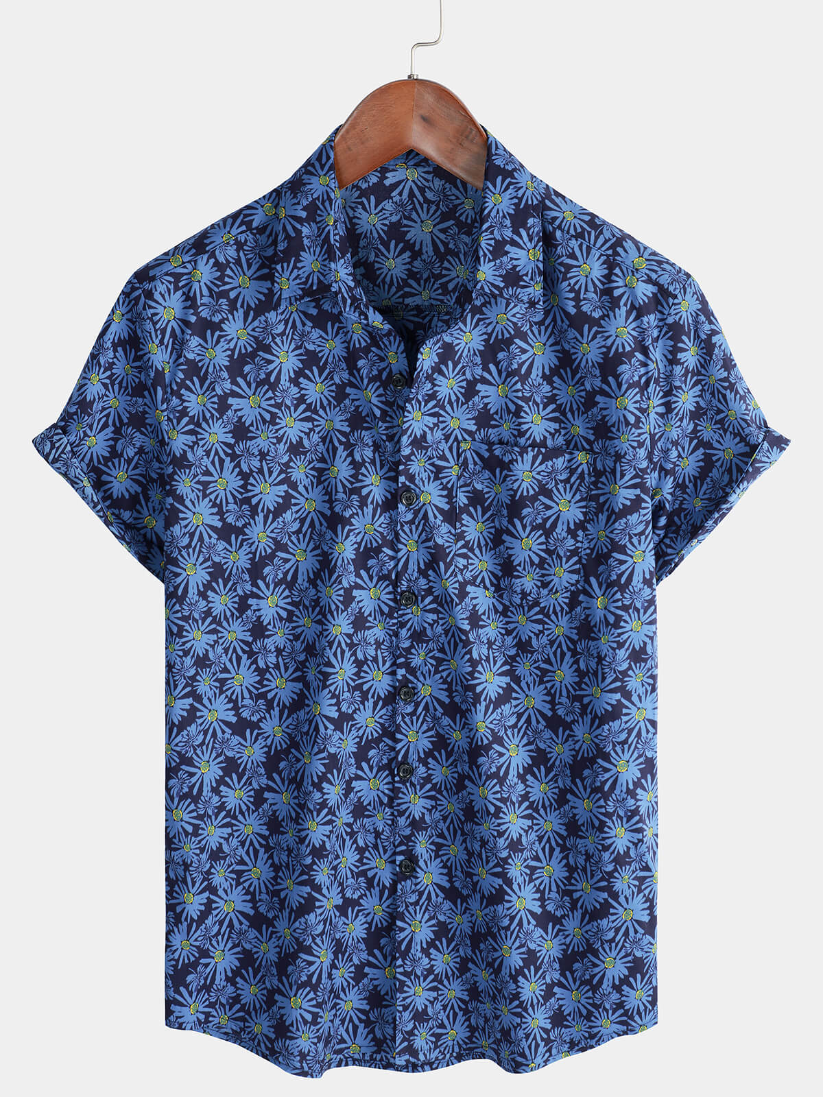 Chemise de plage boutonnée en coton à manches courtes et avec poche en forme de marguerite pour hommes
