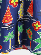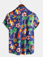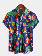 Chemises boutonnées à manches courtes pour hommes 100 % coton motif tropical d'été et de plage