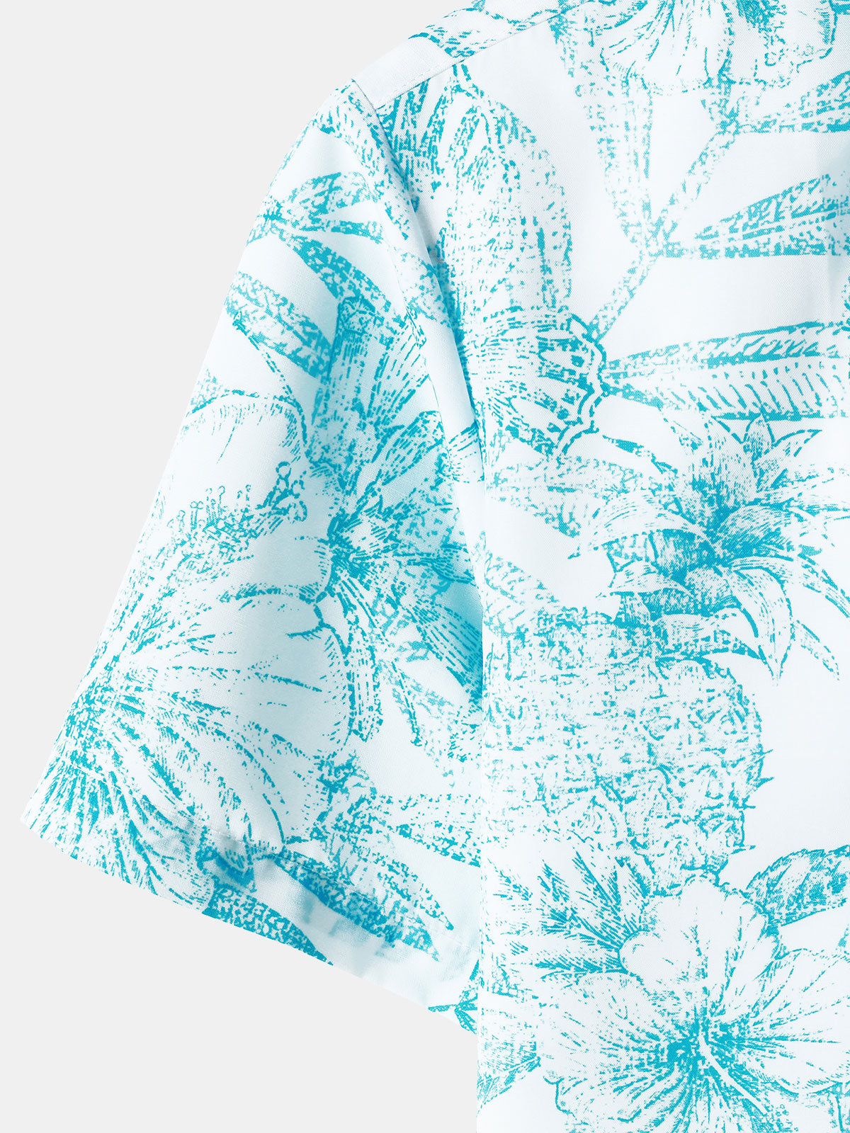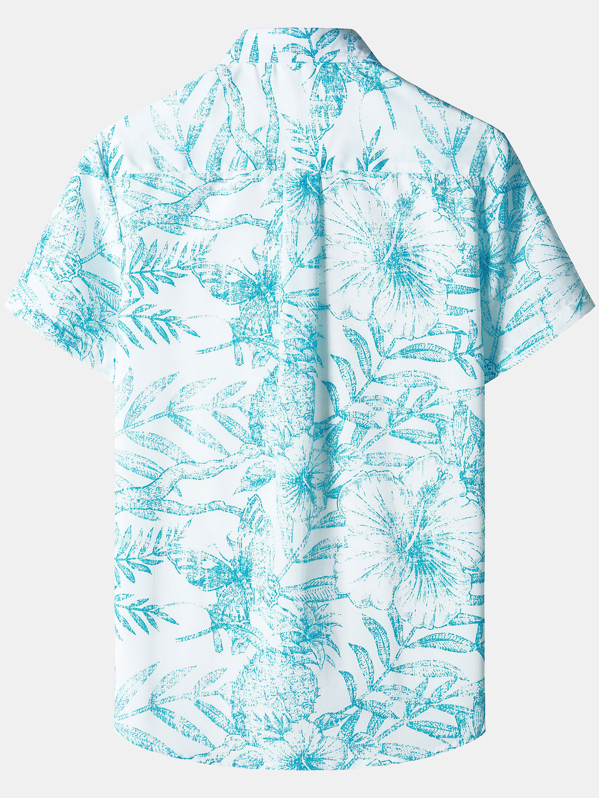 Chemise hawaïenne décontractée Aloha bleue à imprimé tropical pour homme