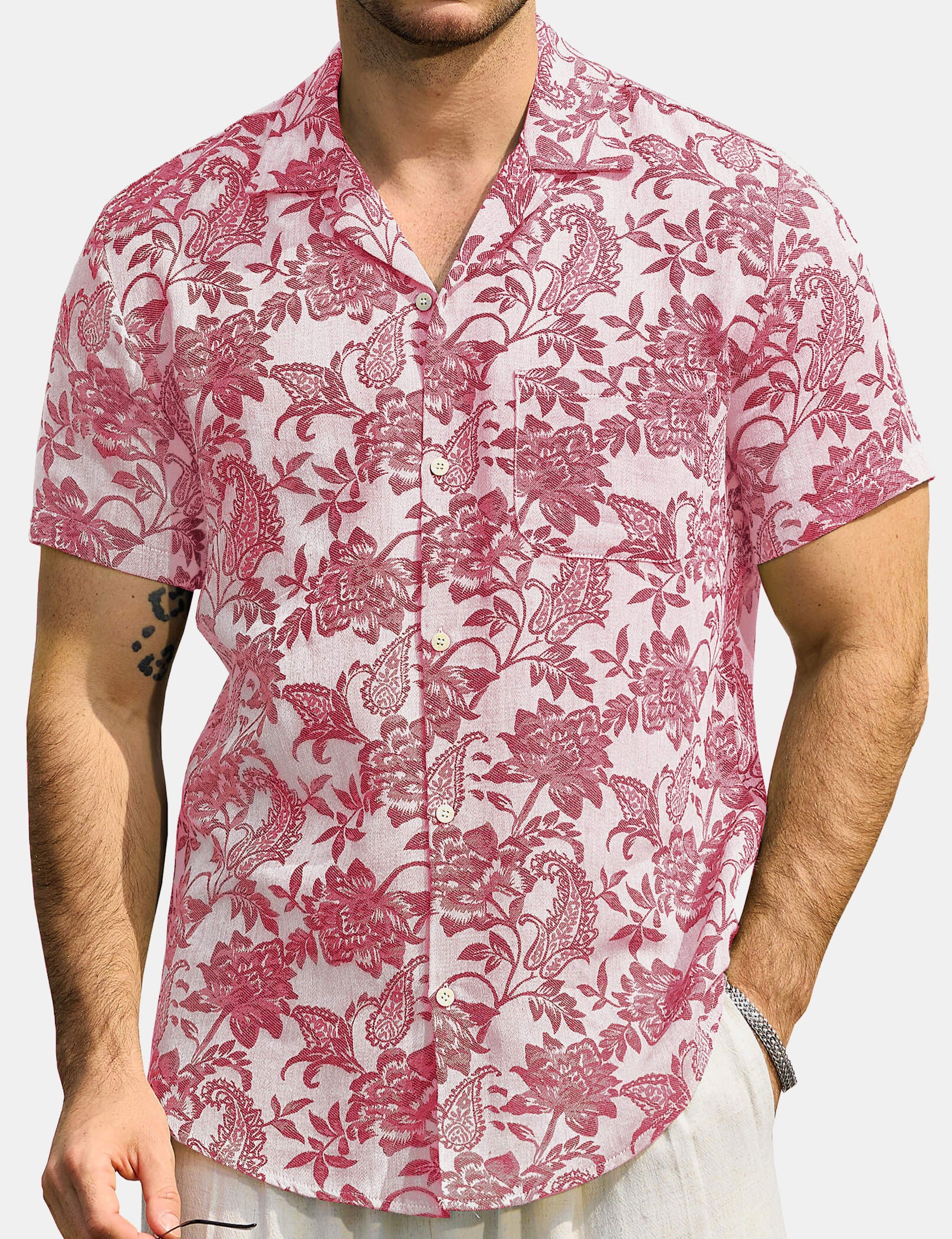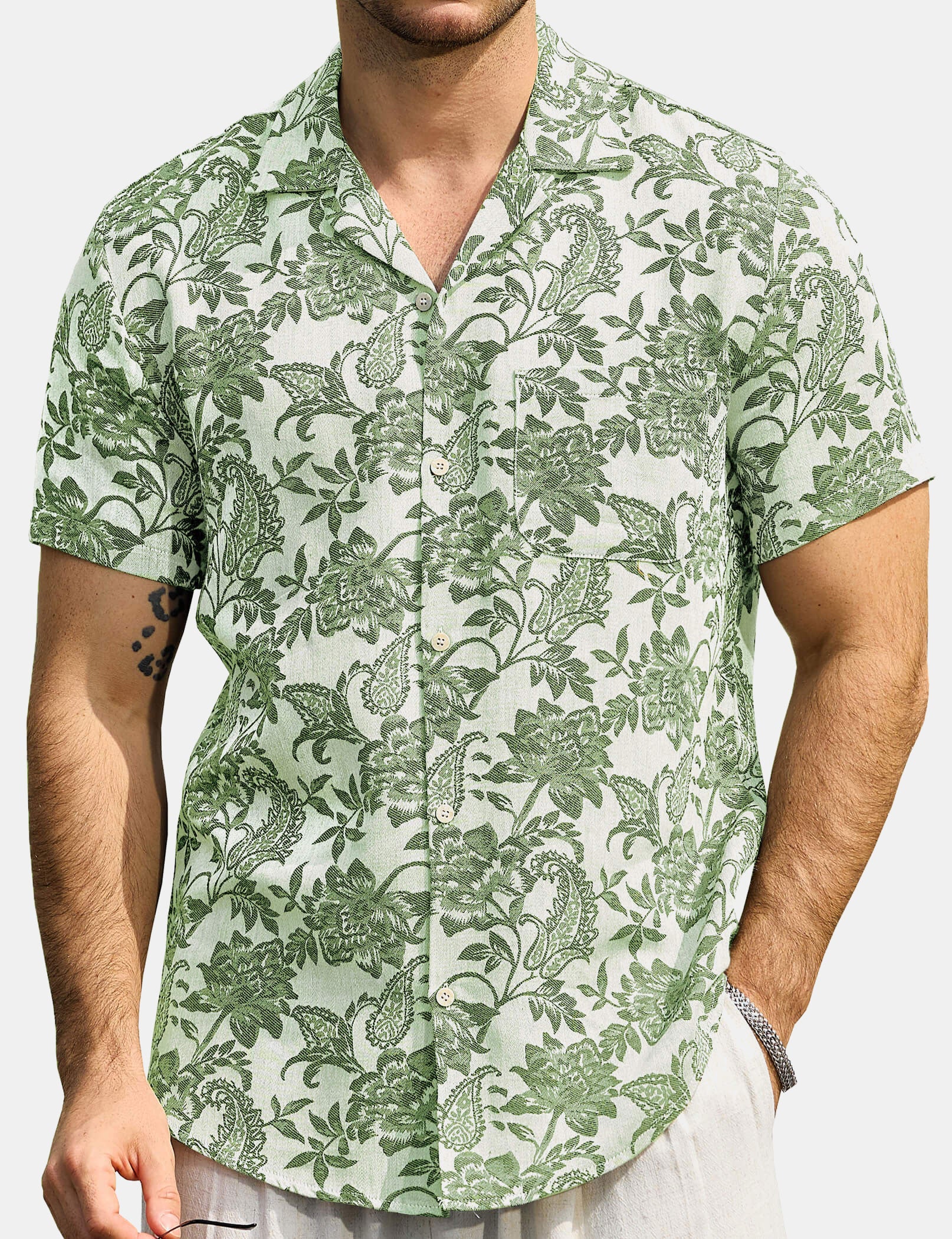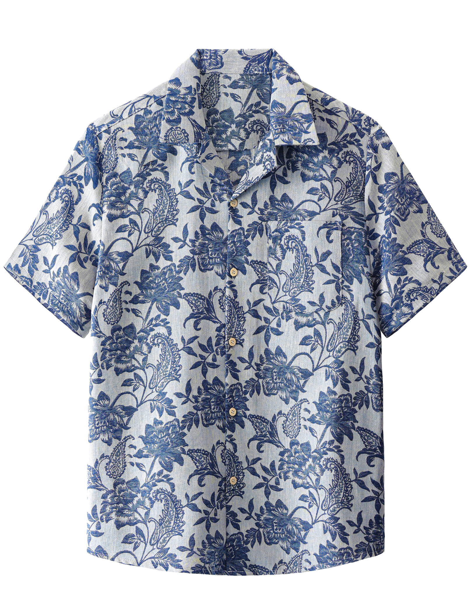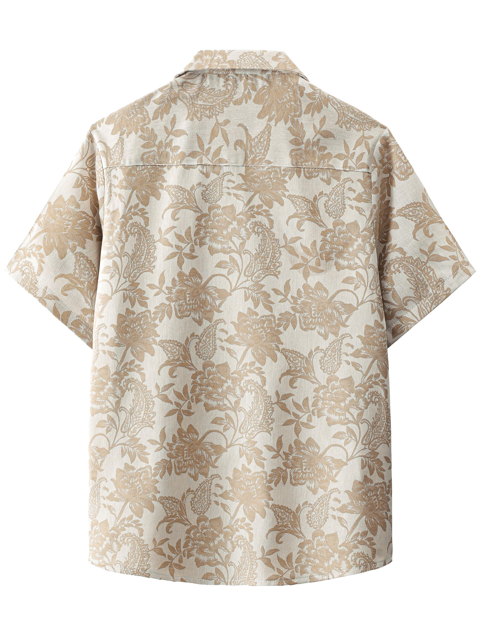 Chemise hawaïenne à manches courtes en jacquard pour homme, décontractée, à imprimé floral tropical, pour l'été et la plage