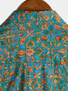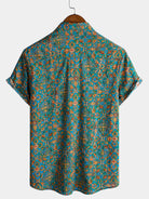 Chemise boutonnée à manches courtes et poches pour homme, style rétro, abstrait