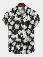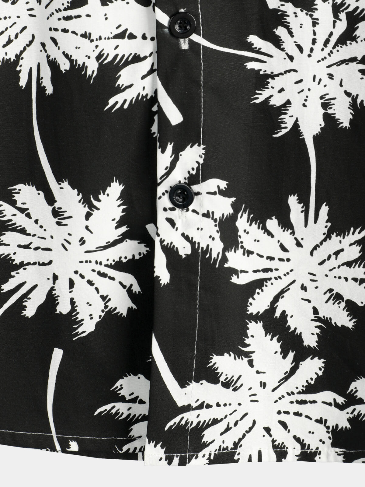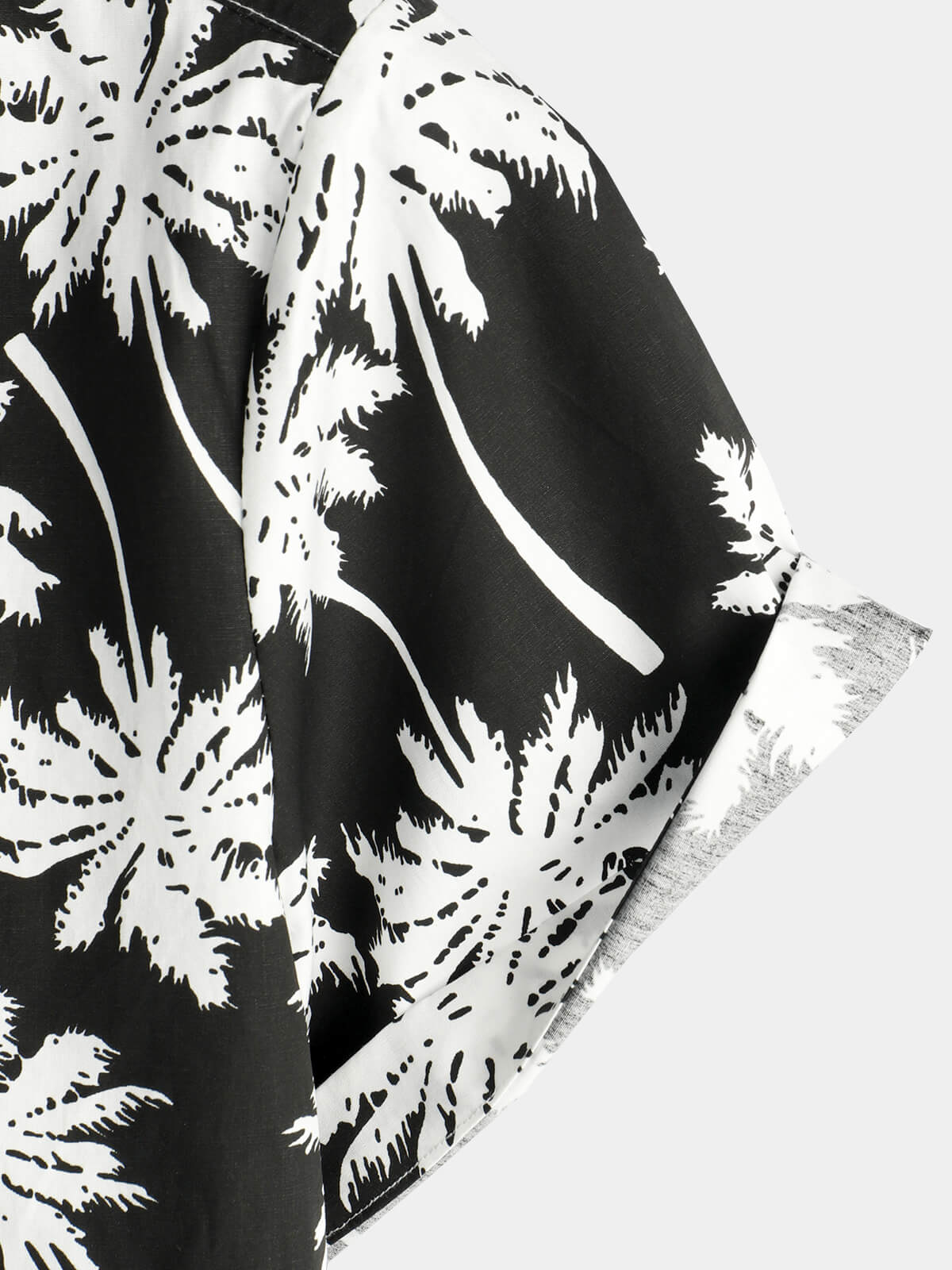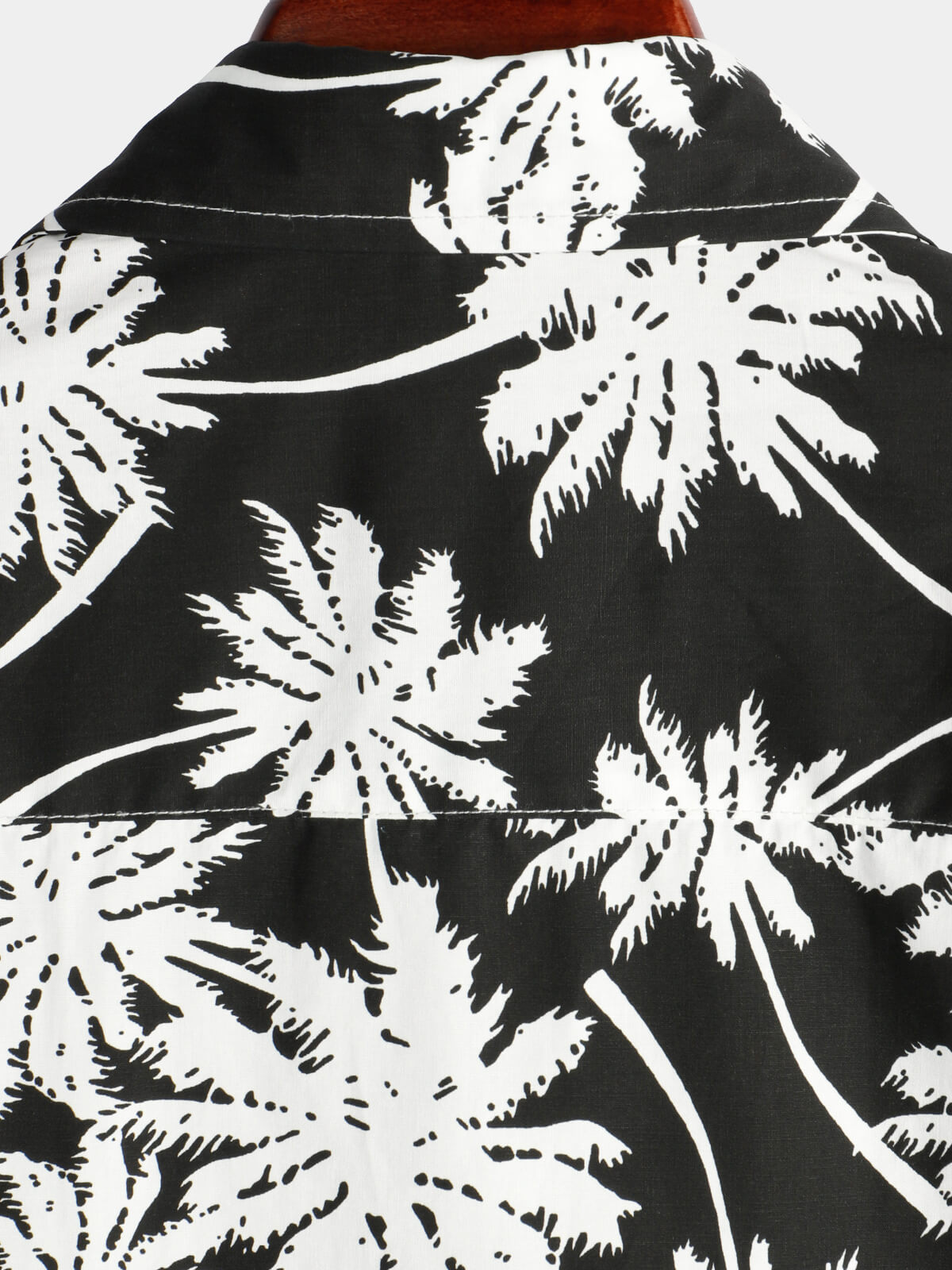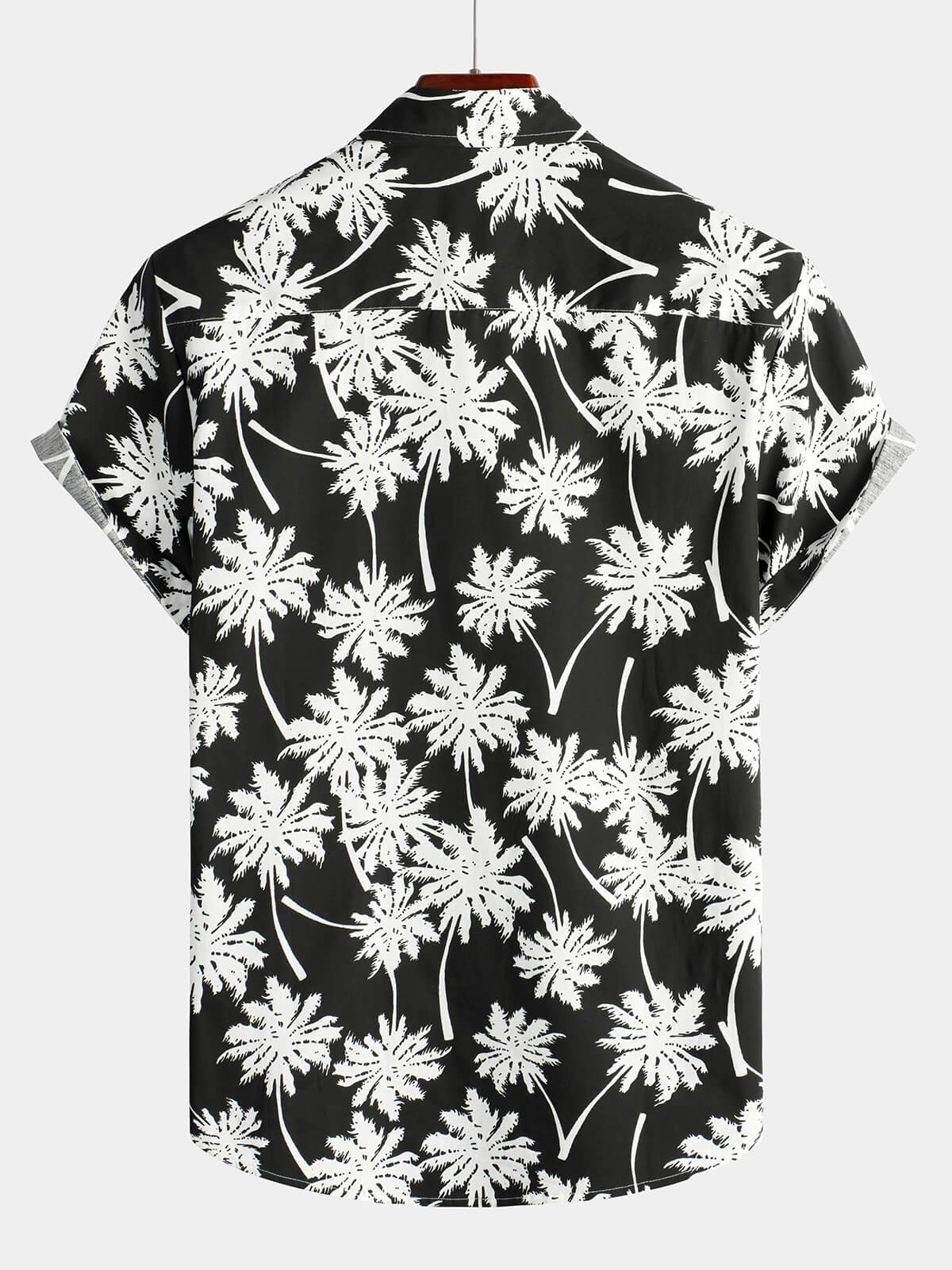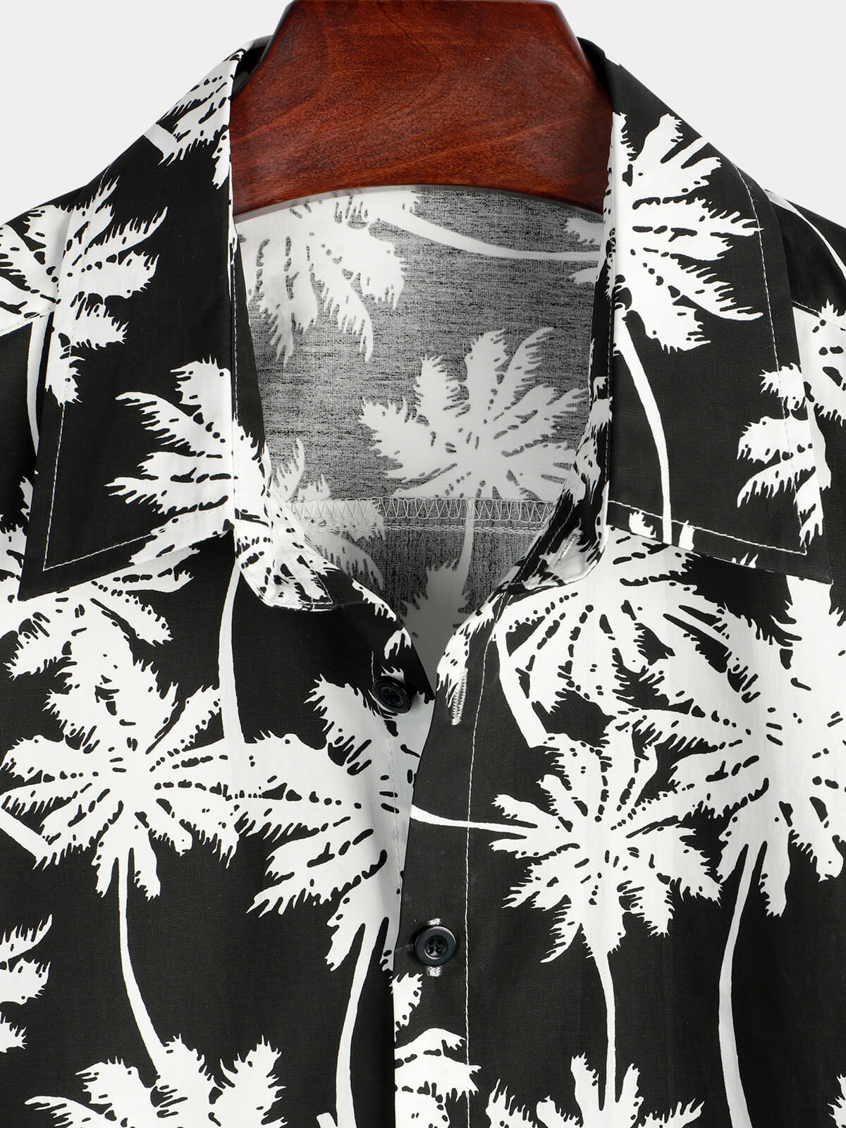 Chemise d'été à manches courtes pour homme avec motif tropical noir style hawaïen de vacances boutonnée