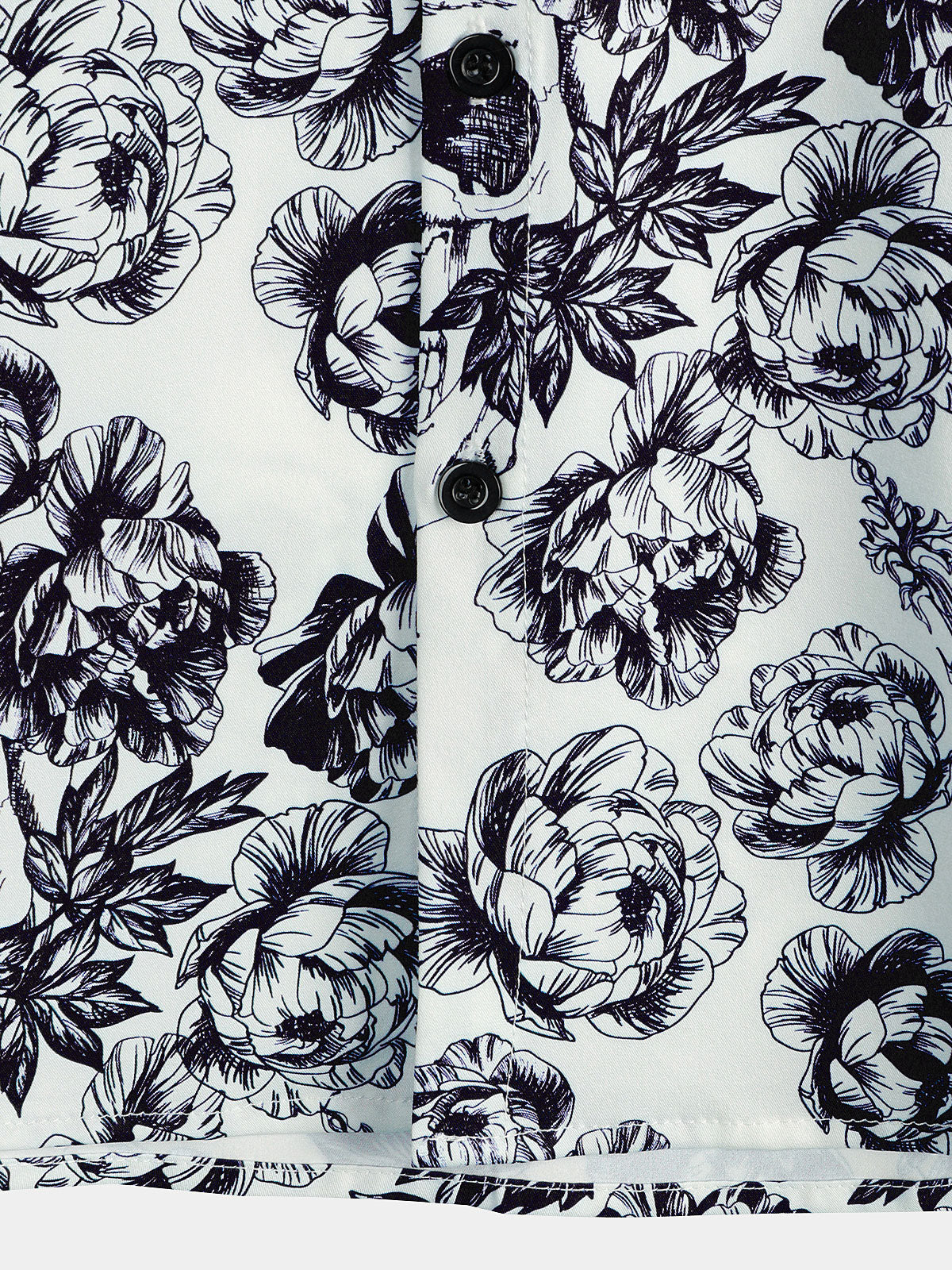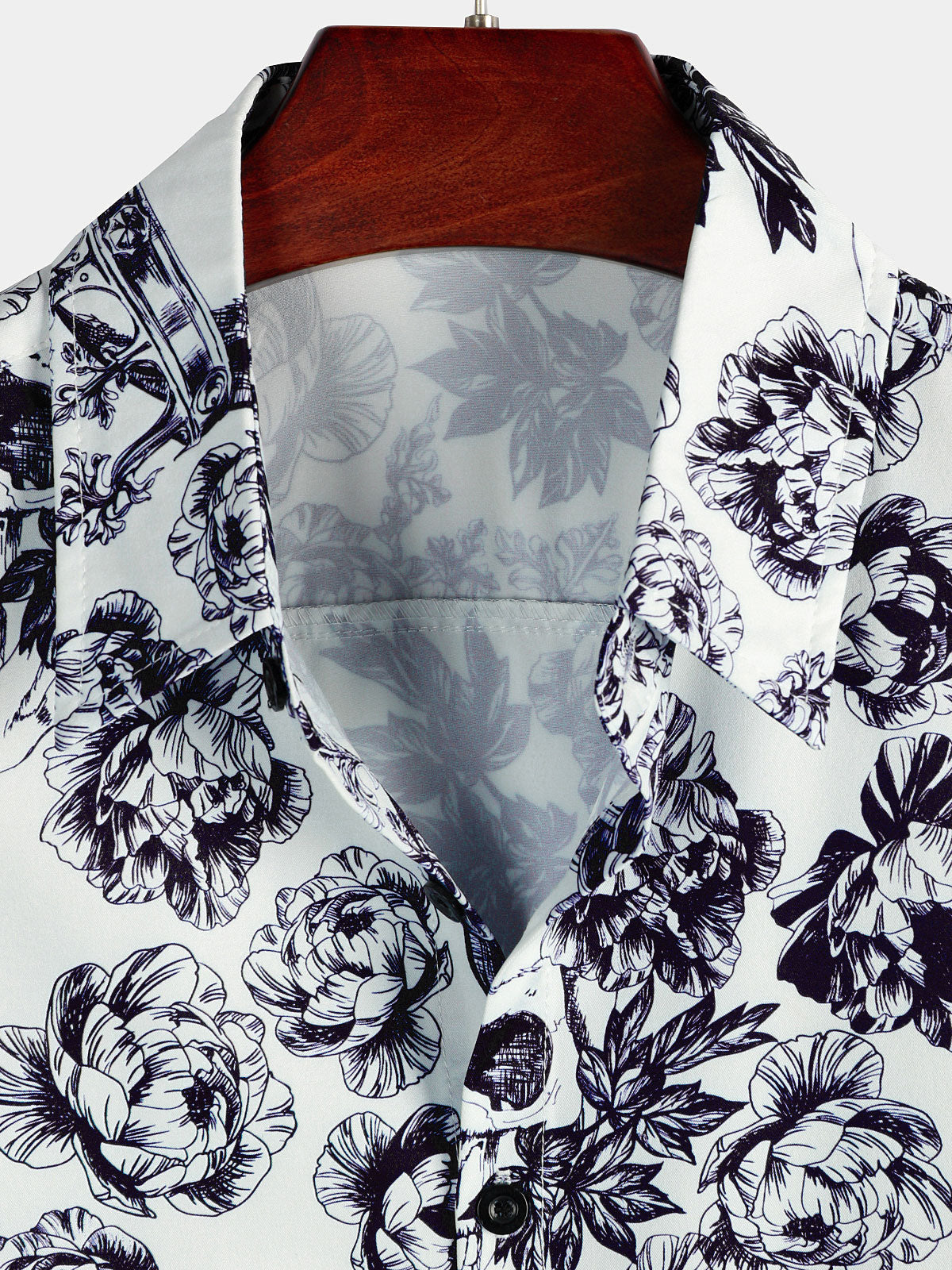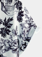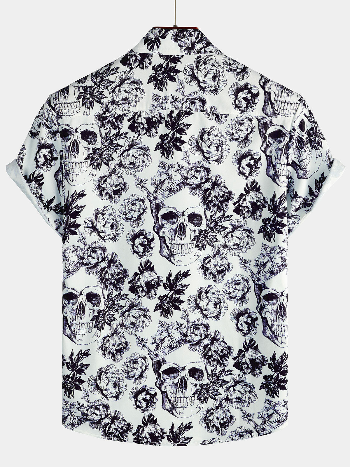 Chemise noire à manches courtes pour hommes, imprimé tête de mort florale, couronne Punk Rock