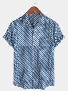 Chemise boutonnée bleue à manches courtes pour hommes, vacances décontractées, été