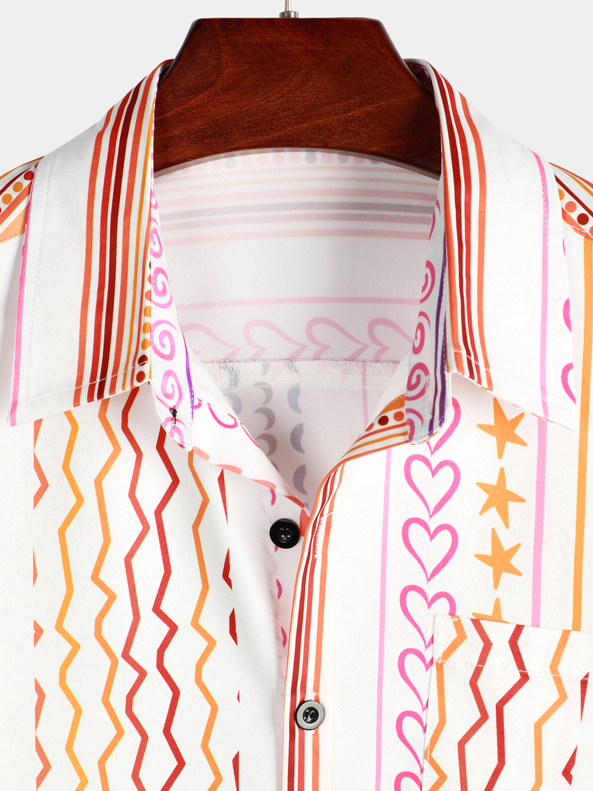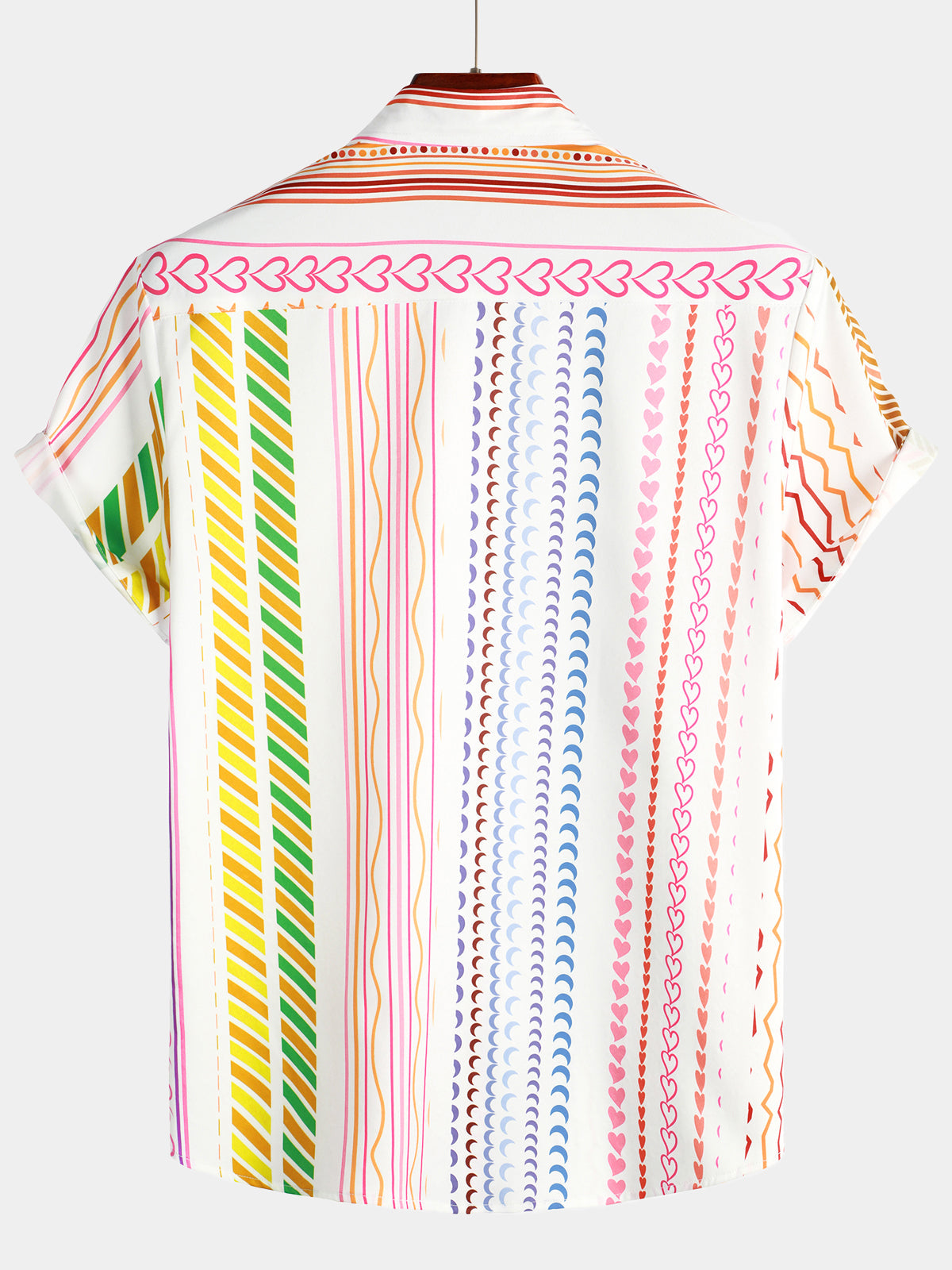 Chemise d'été à manches courtes pour hommes, décontractée, imprimée à rayures, poche rétro boutonnée
