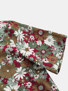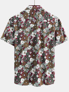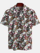 Chemise hawaïenne à manches courtes en coton décontracté à fleurs pour hommes kaki