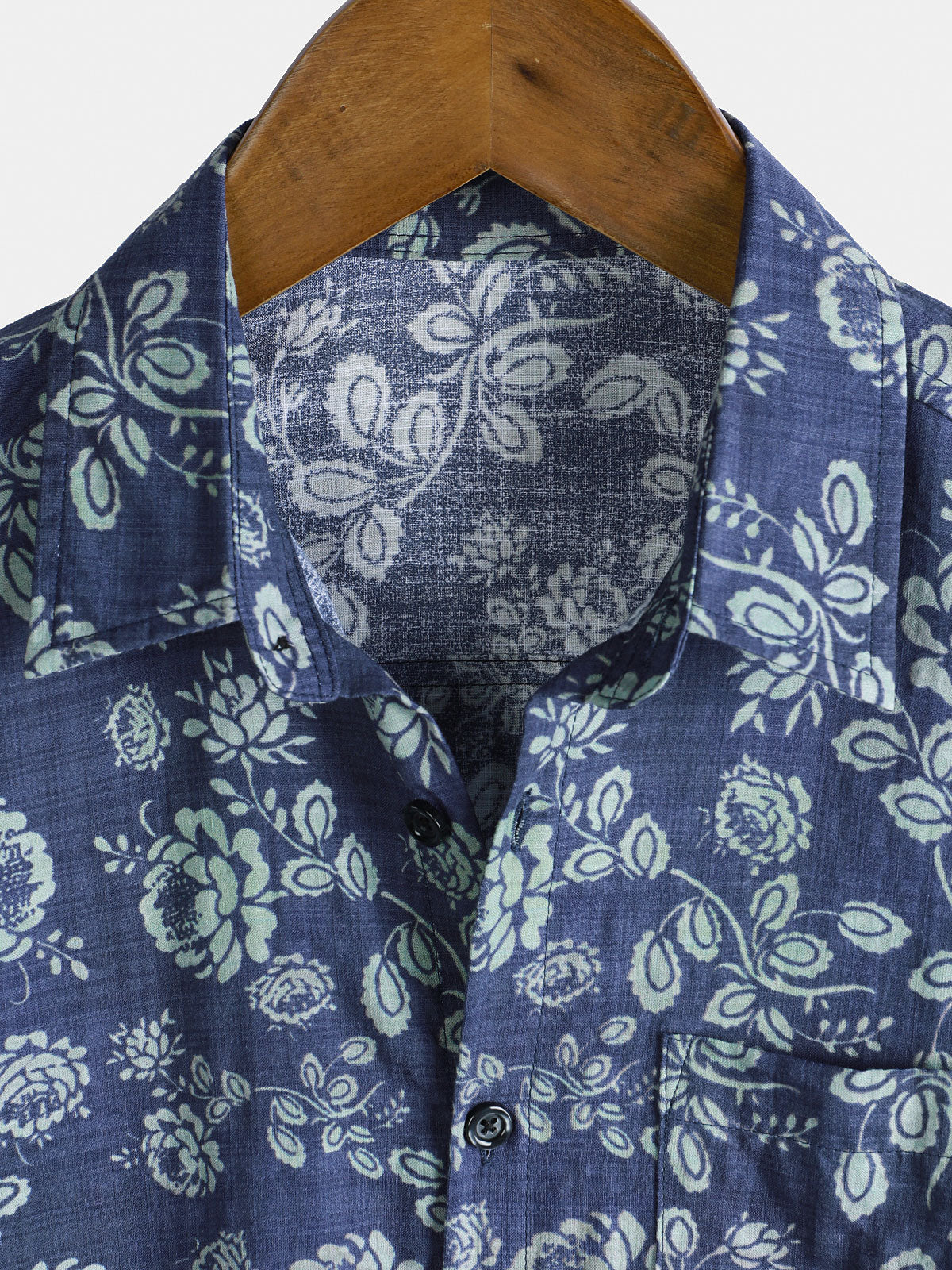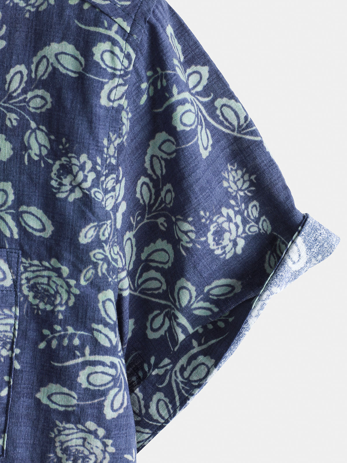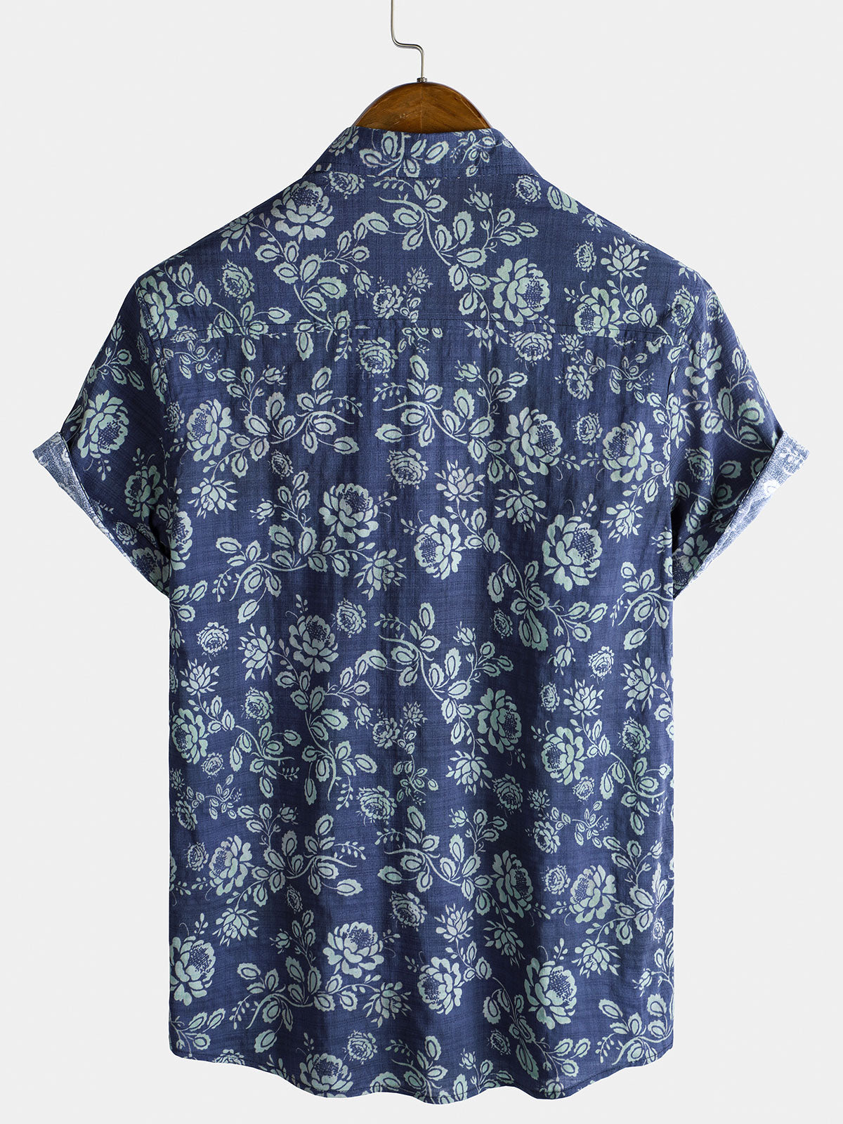 Chemise boutonnée à manches courtes et imprimé floral pour homme