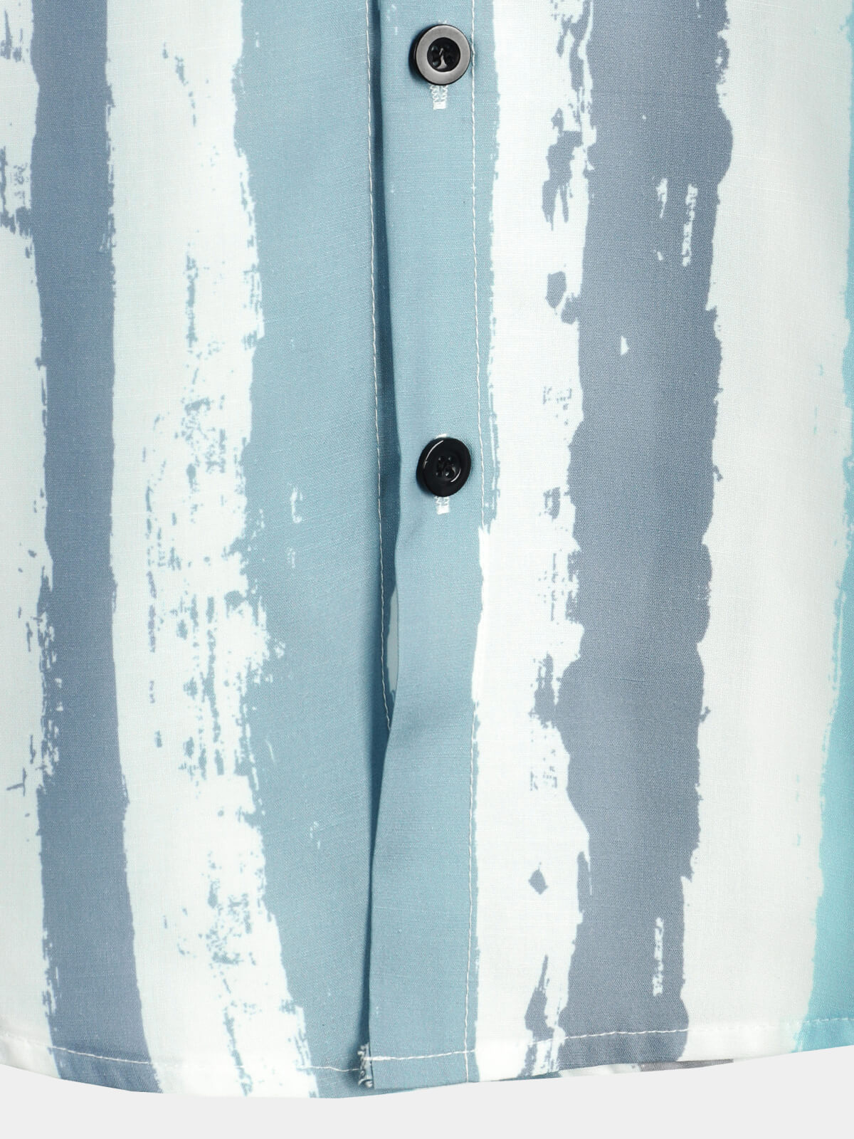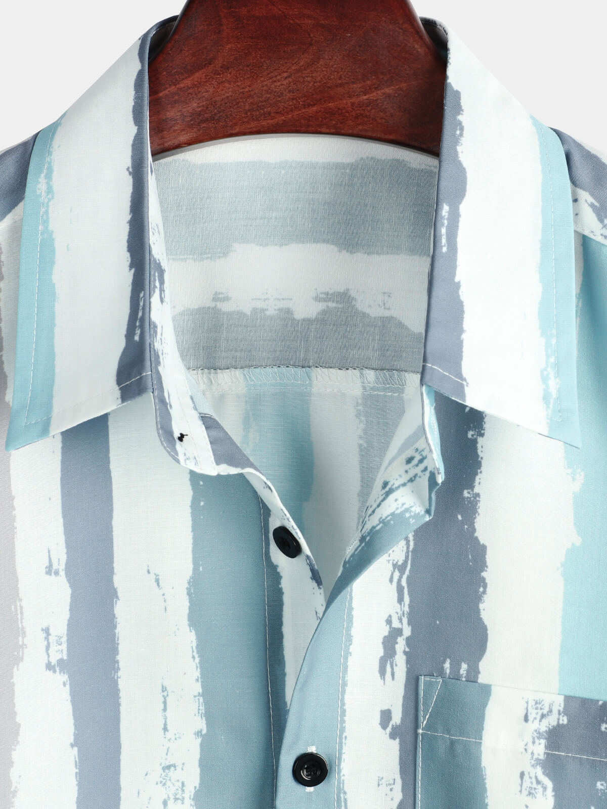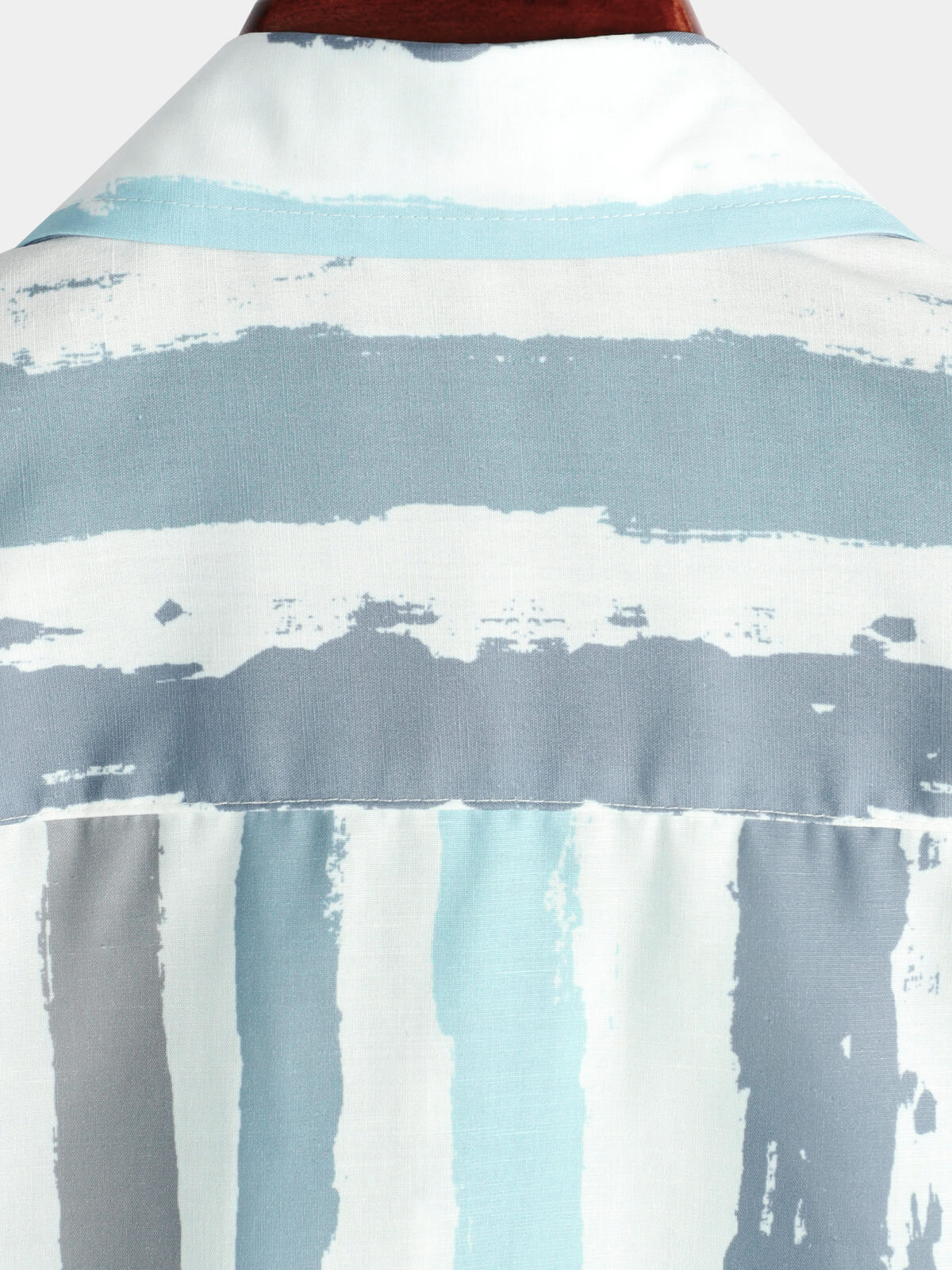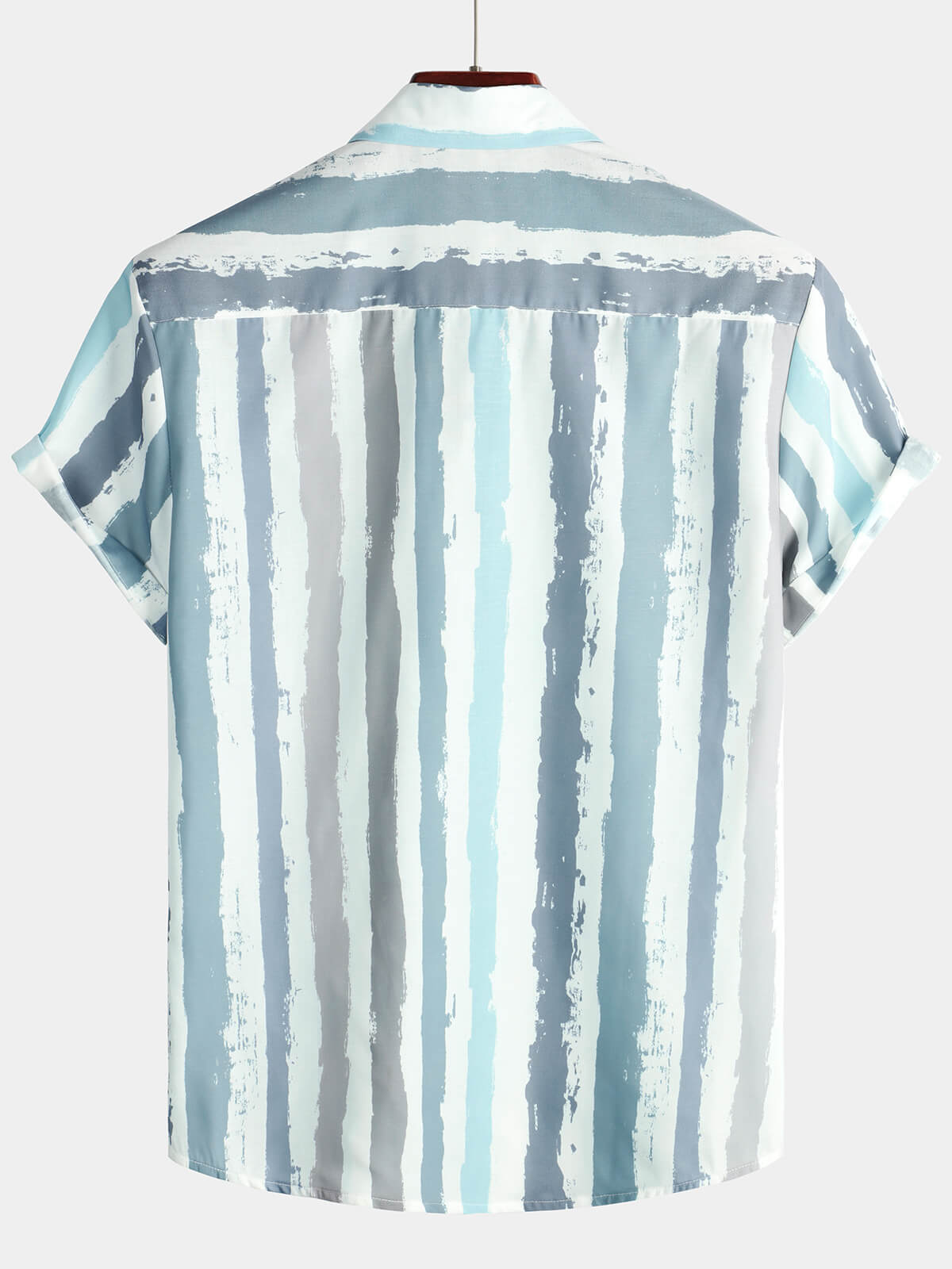 Chemise À Manches Courtes Homme Grise Rayée Décontractée Poche Art Button Holiday