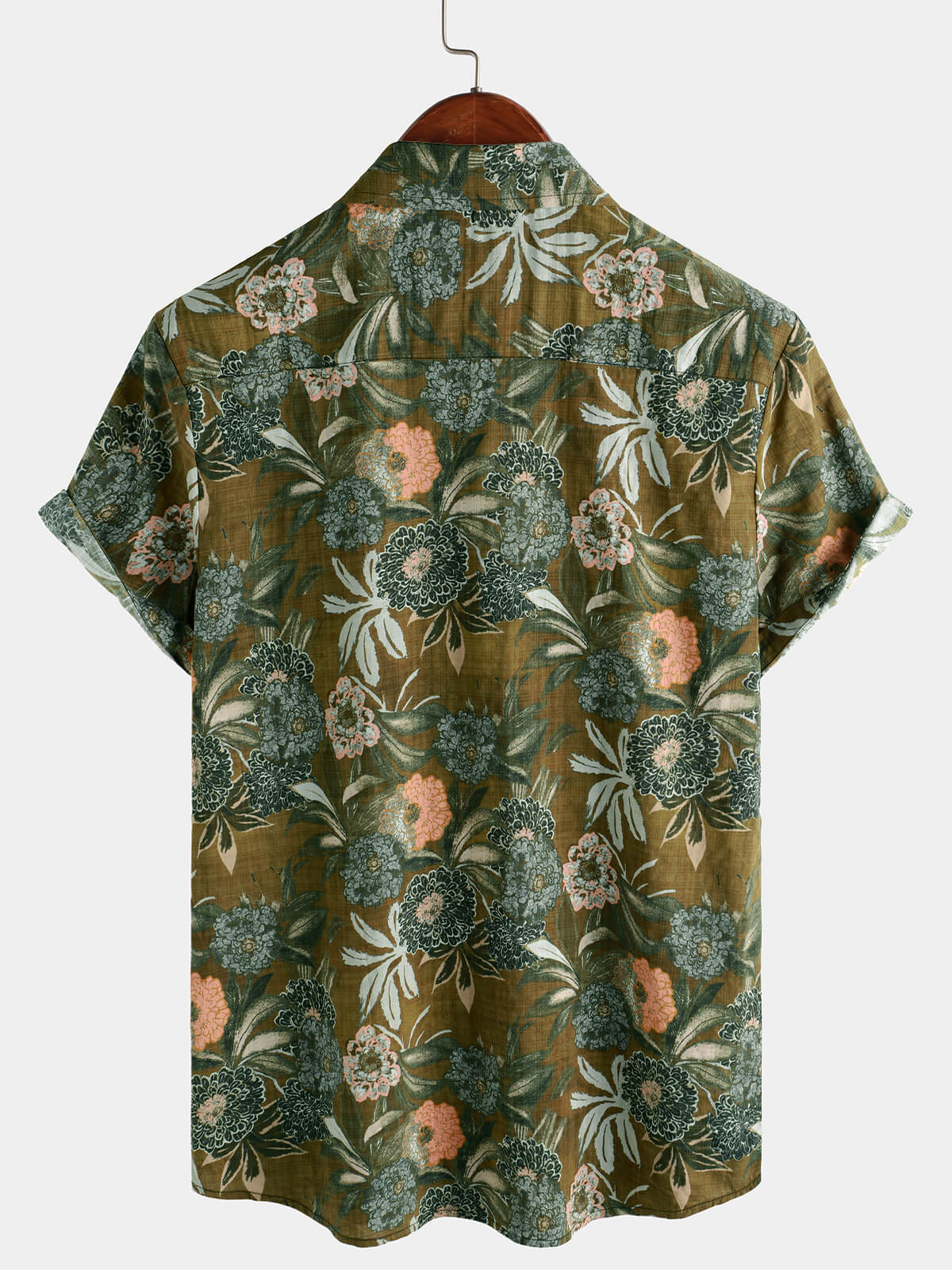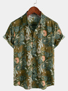 Chemise boutonnée à manches courtes et motif floral rétro pour homme