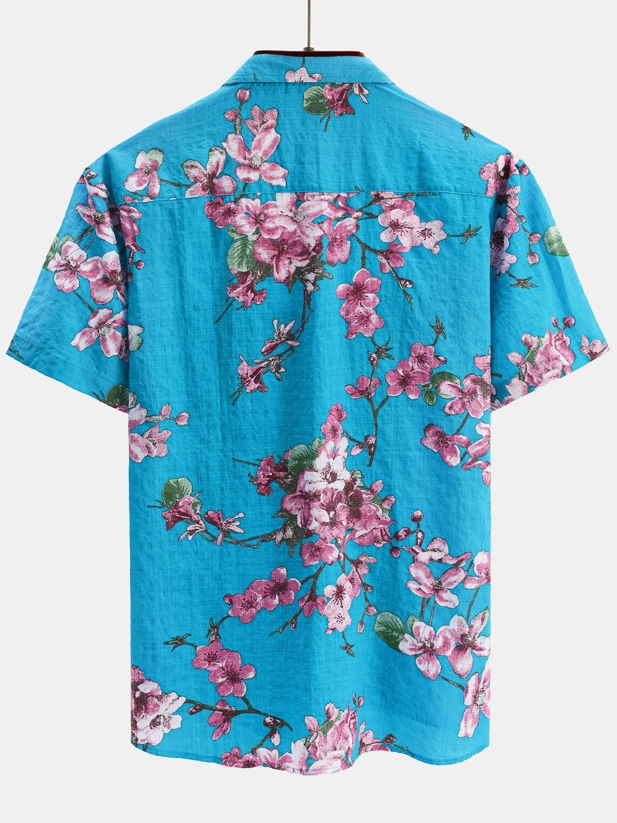 Chemise hawaïenne à manches courtes pour hommes, en coton respirant, à fleurs, pour les vacances, été