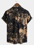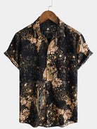 Chemise boutonnée à manches courtes pour homme avec imprimé végétal rétro