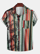 Chemise d'été à manches courtes pour hommes, imprimé Tropical, poche rayée, plage hawaïenne