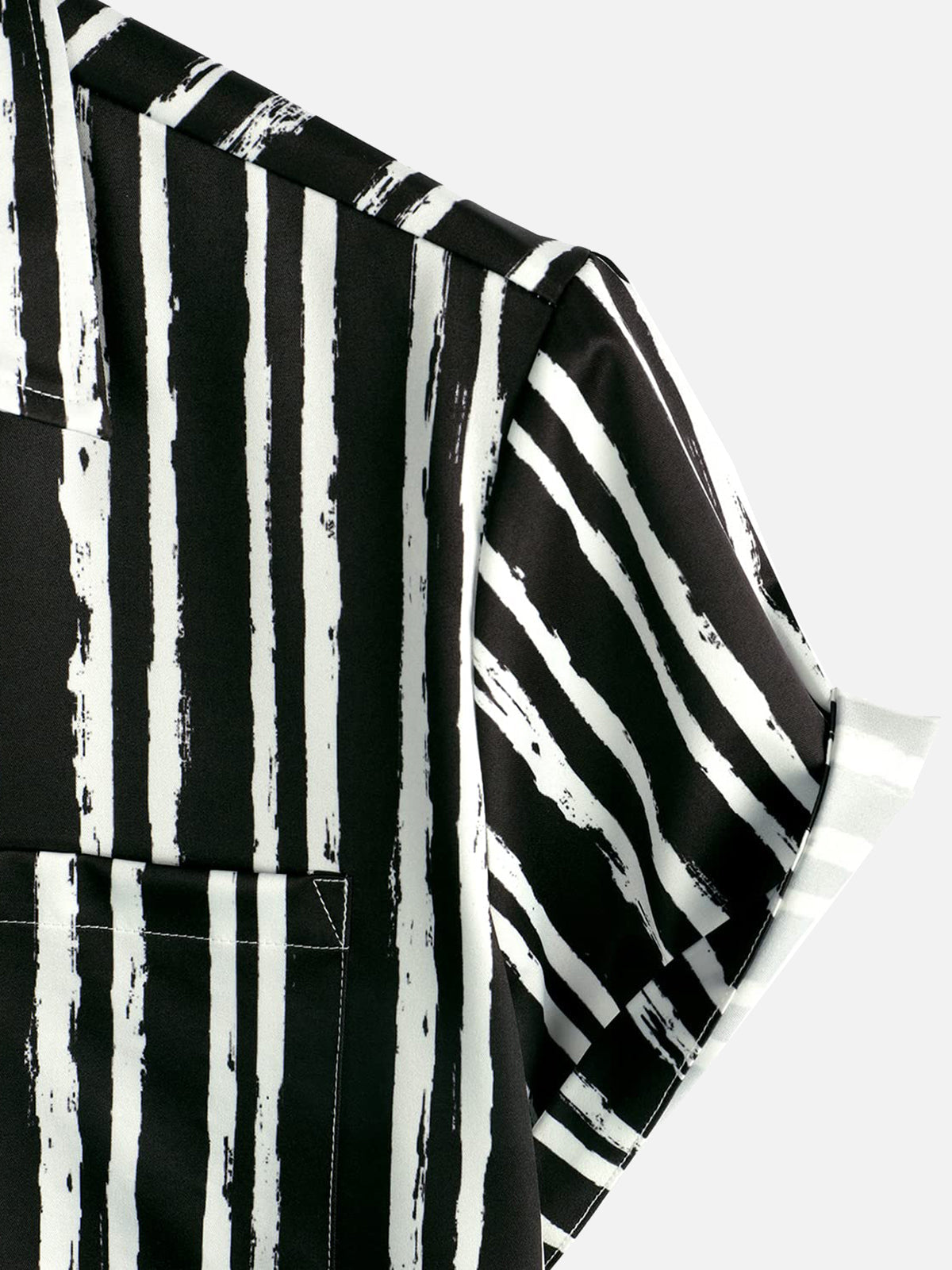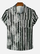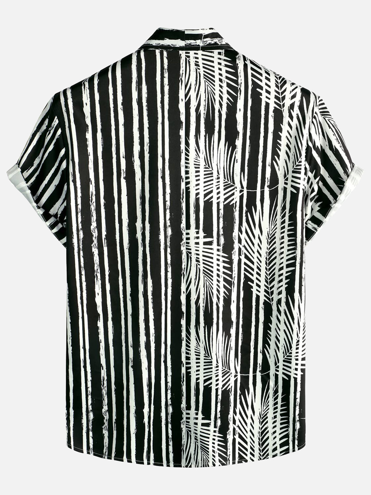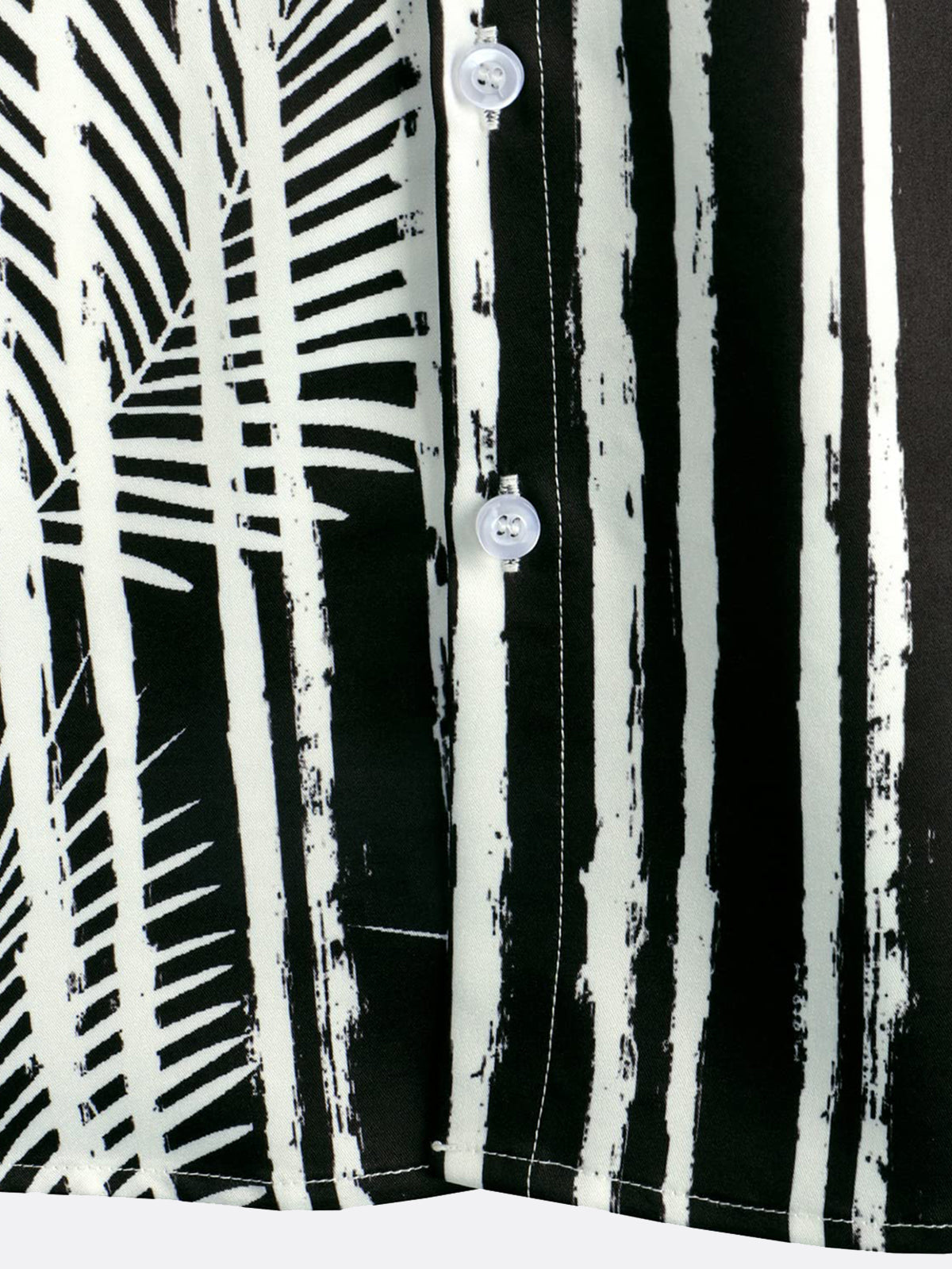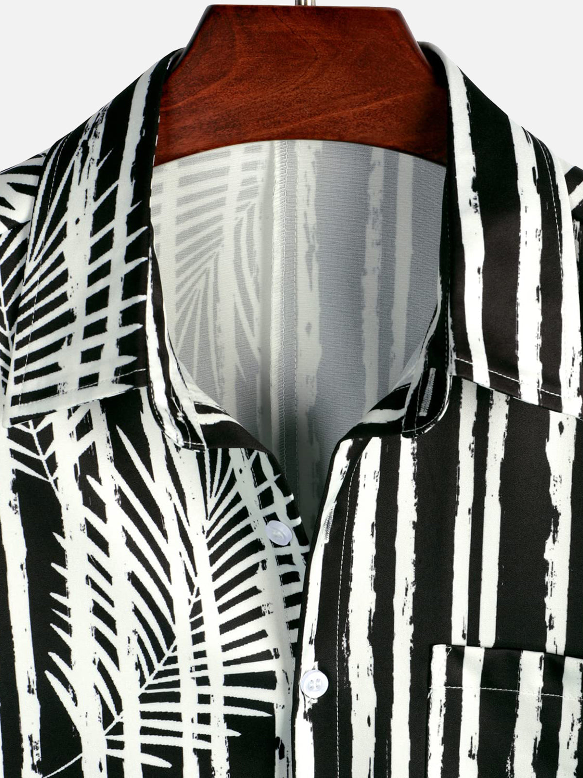 Chemise hawaïenne noire à manches courtes avec poche imprimée de plantes tropicales pour hommes