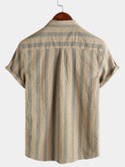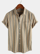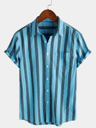 Chemise à manches courtes boutonnée pour hommes en coton rayé avec poche décontractée pour vacances hawaïennes
