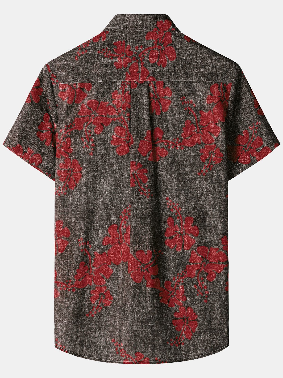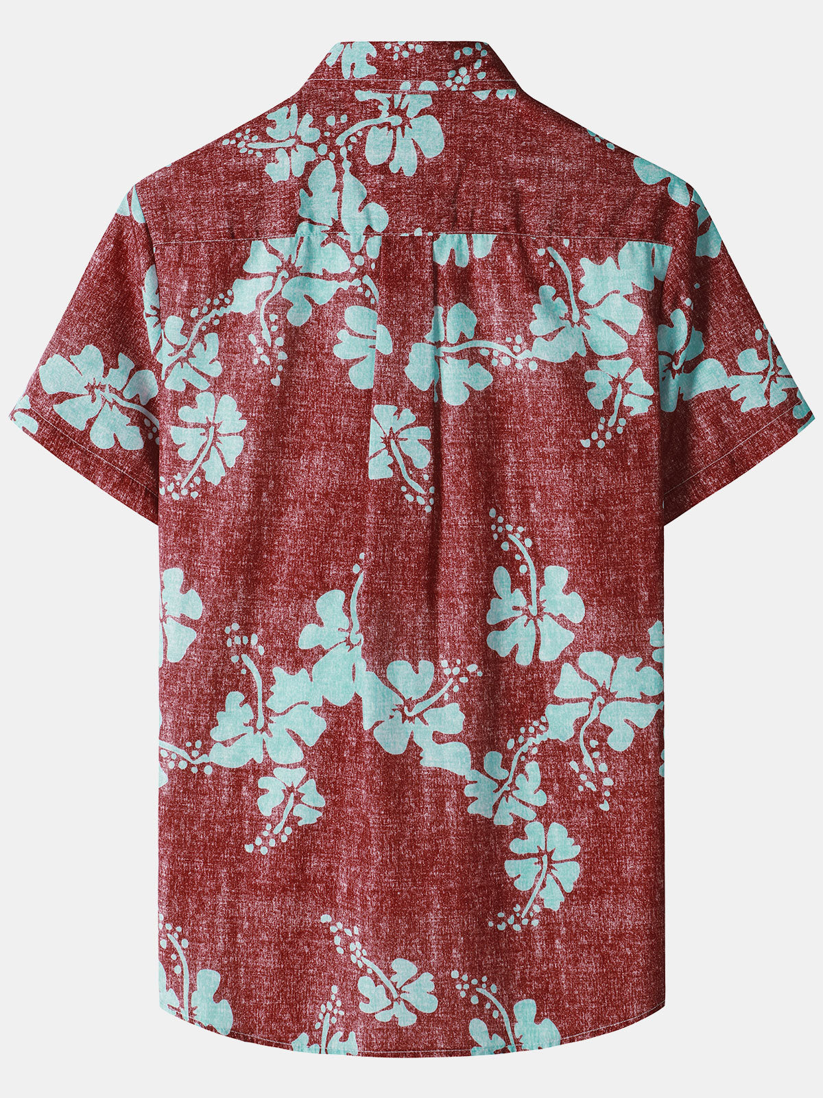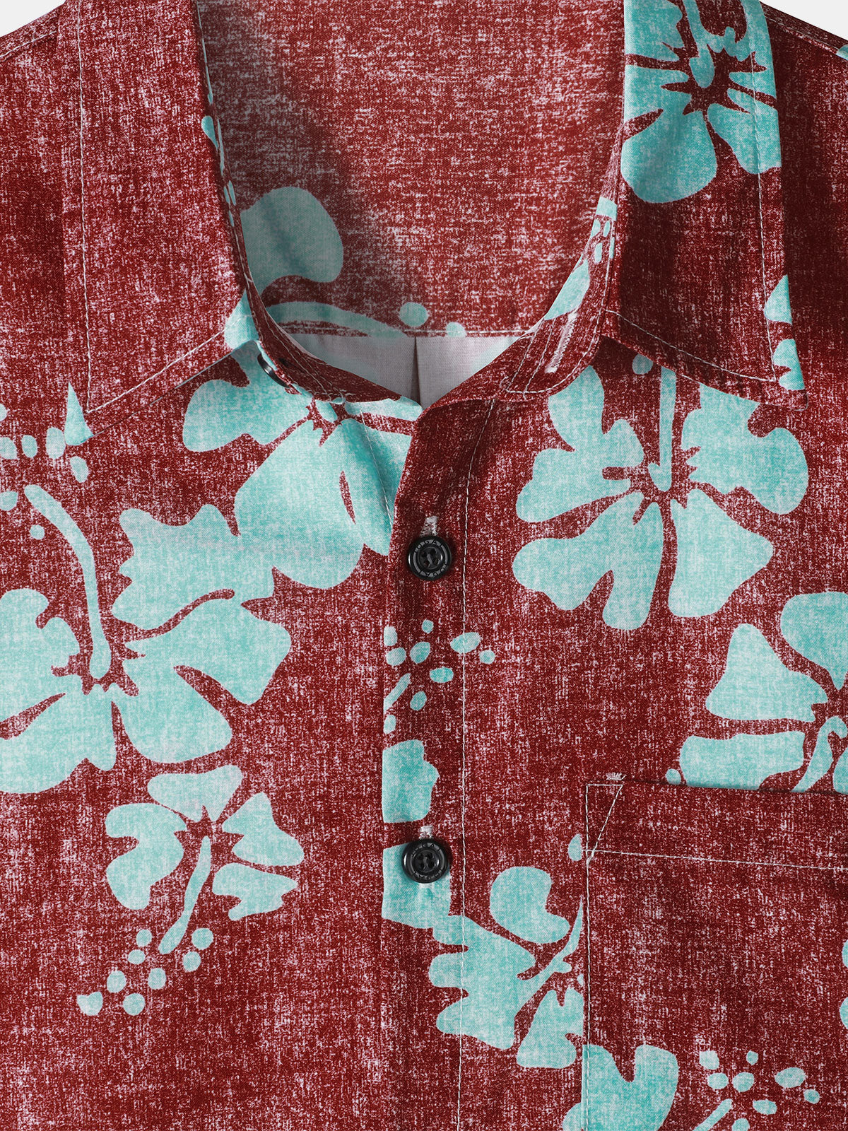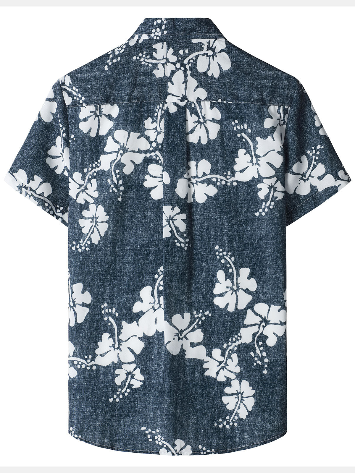 Chemises hawaïennes décontractées à imprimé floral pour hommes avec poche