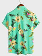 Chemise à manches courtes décontractée à imprimé floral tropical vert clair pour hommes