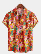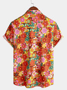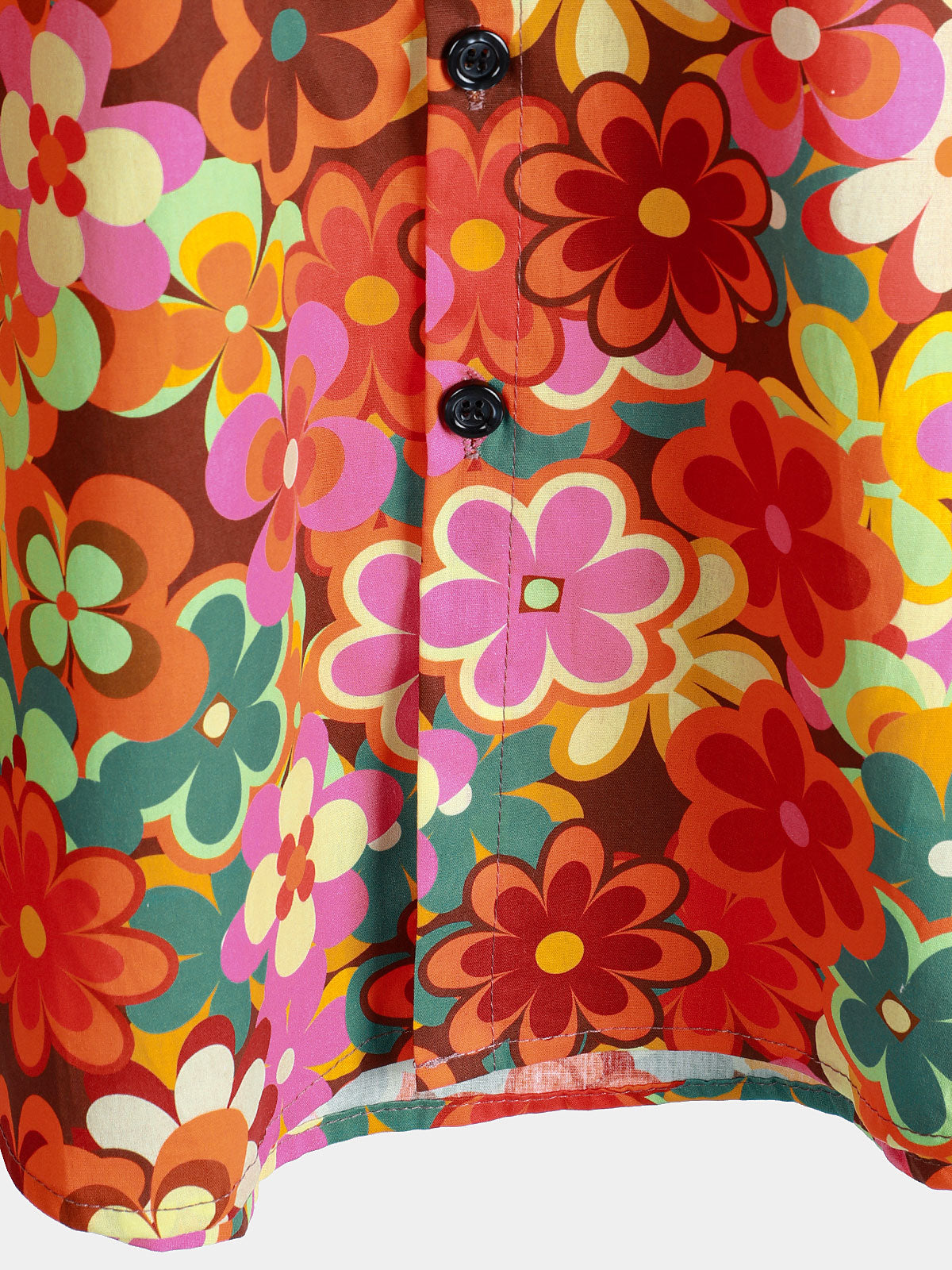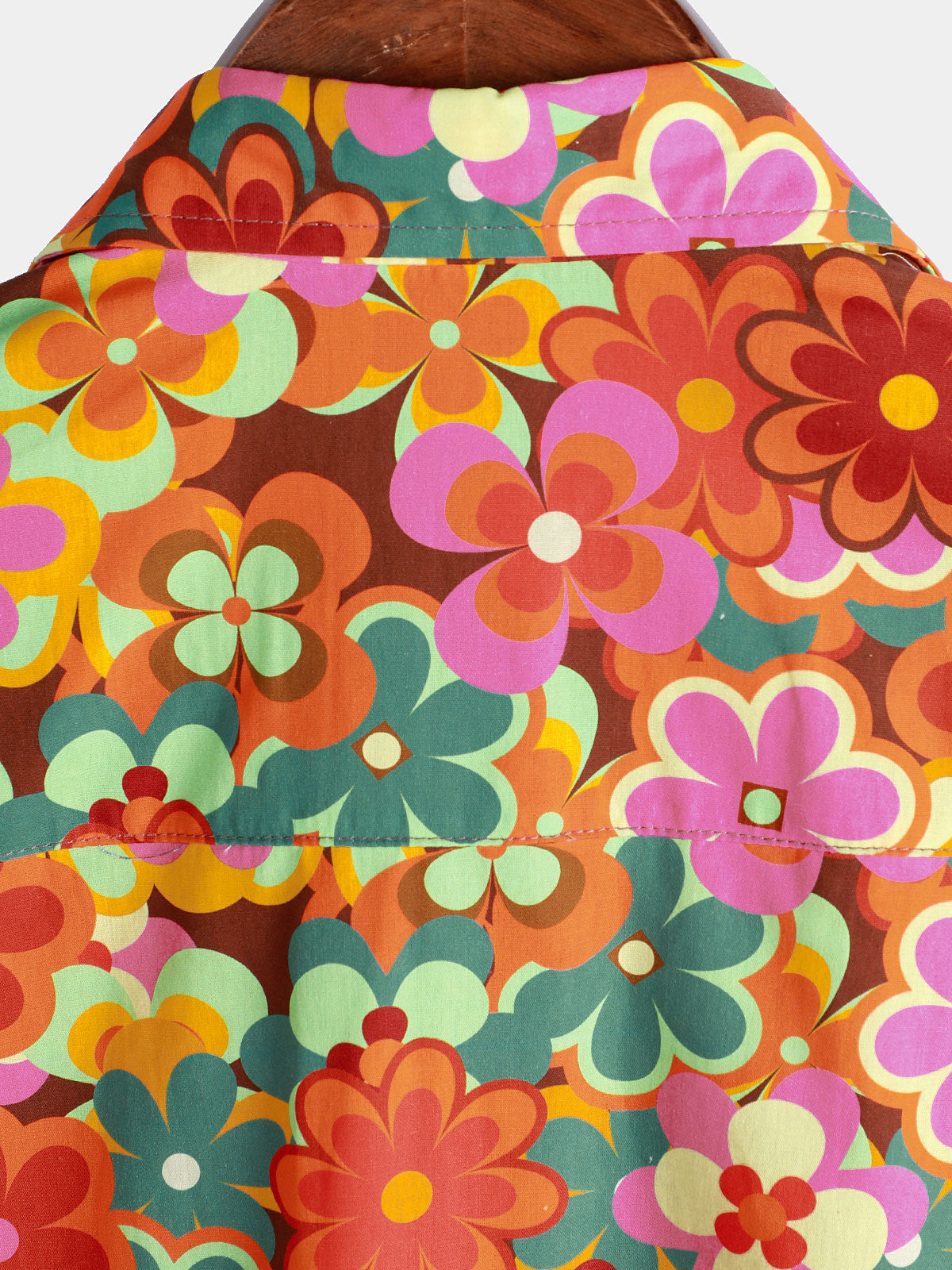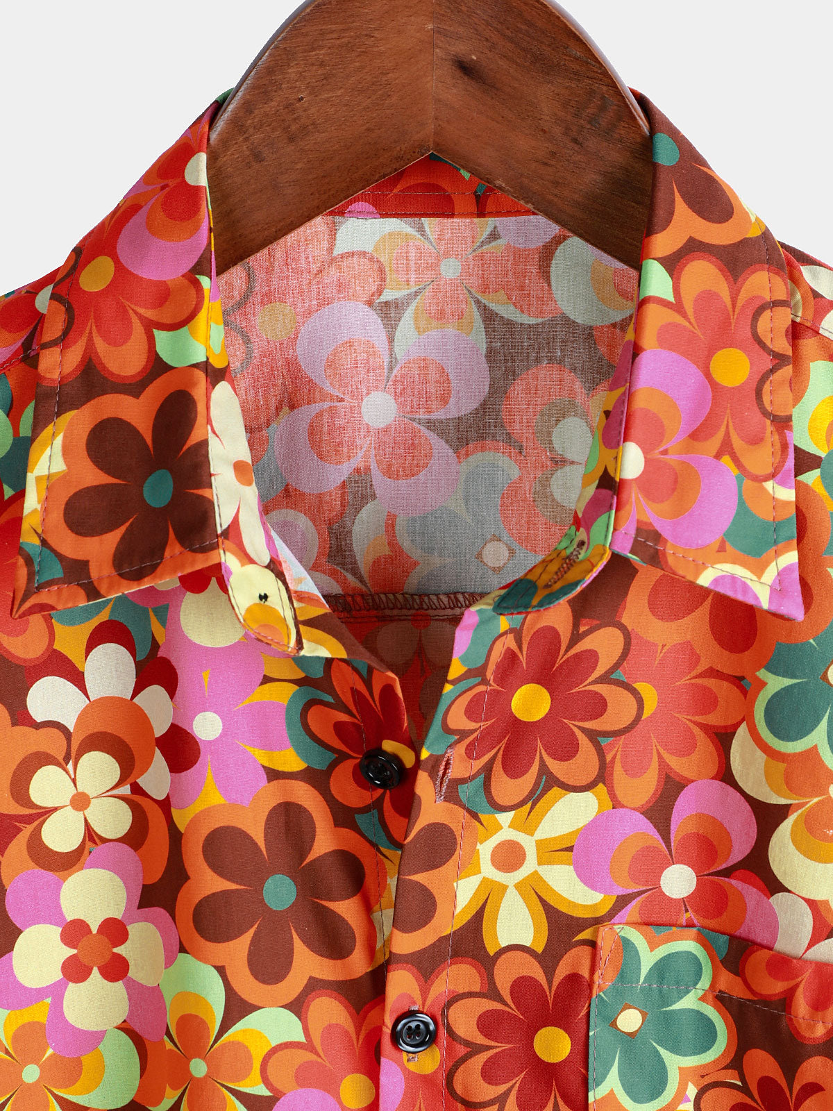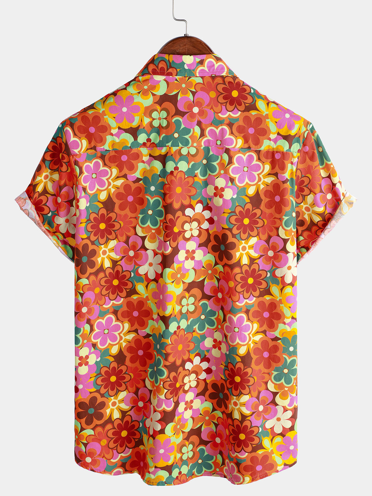 Chemise à manches courtes en coton respirant à imprimé floral style années 70 pour homme