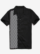 Chemise à manches courtes avec drapeau à damier noir et blanc Camp 50's Cotton Pocket Bowling pour homme