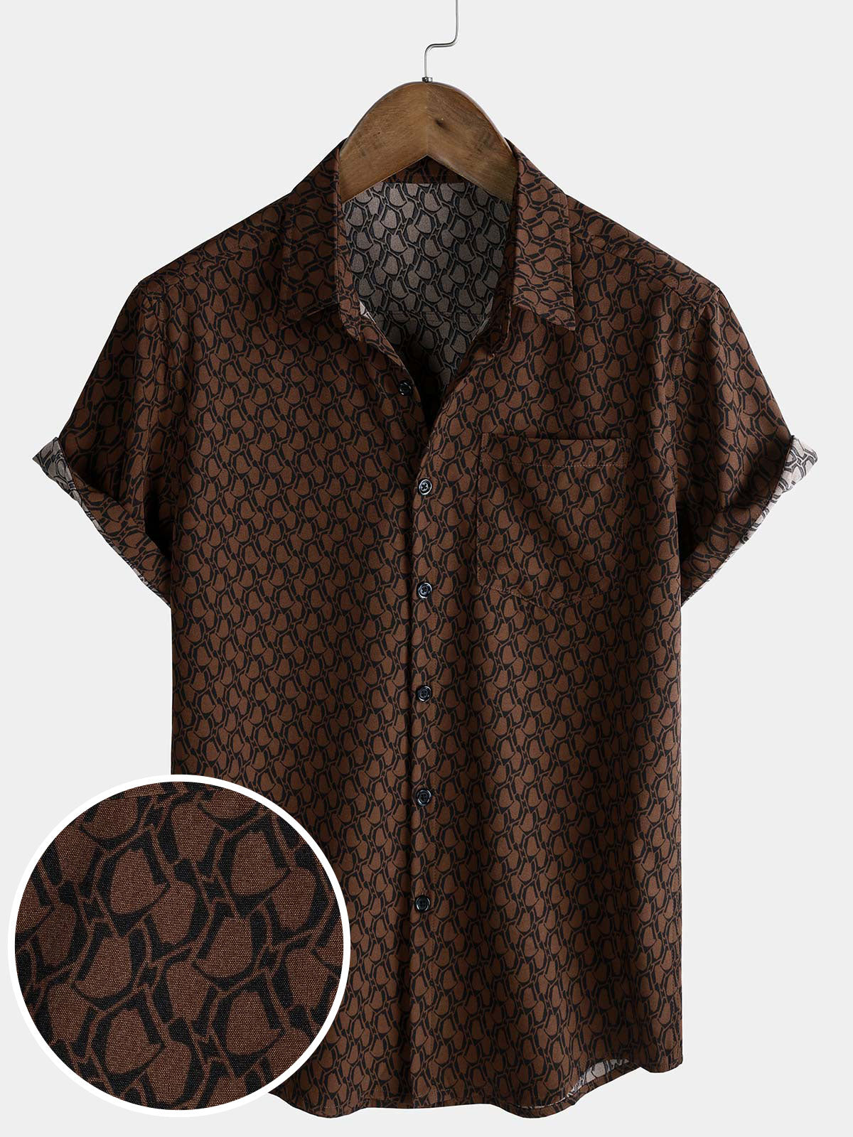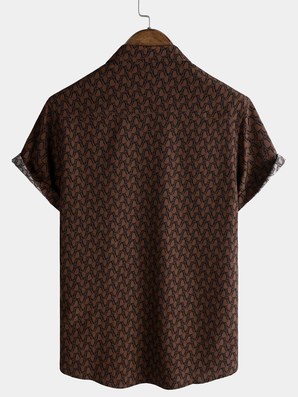 Chemise boutonnée marron décontractée à manches courtes pour homme